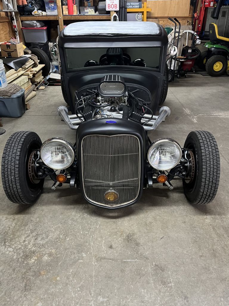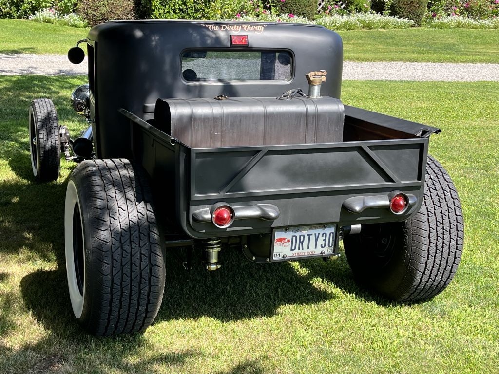 Body chopped, 350 crate-roller engine, 700R-2 overdrive trans w/ shift kit, Corvette servo, Flotek aluminum heads, stainless steel pushrods, small cam, MSD distributor, Edelbrock 600 CFM carb, 14" cooling fan, Yukon 3.23 gears and Posi-Trac differential.