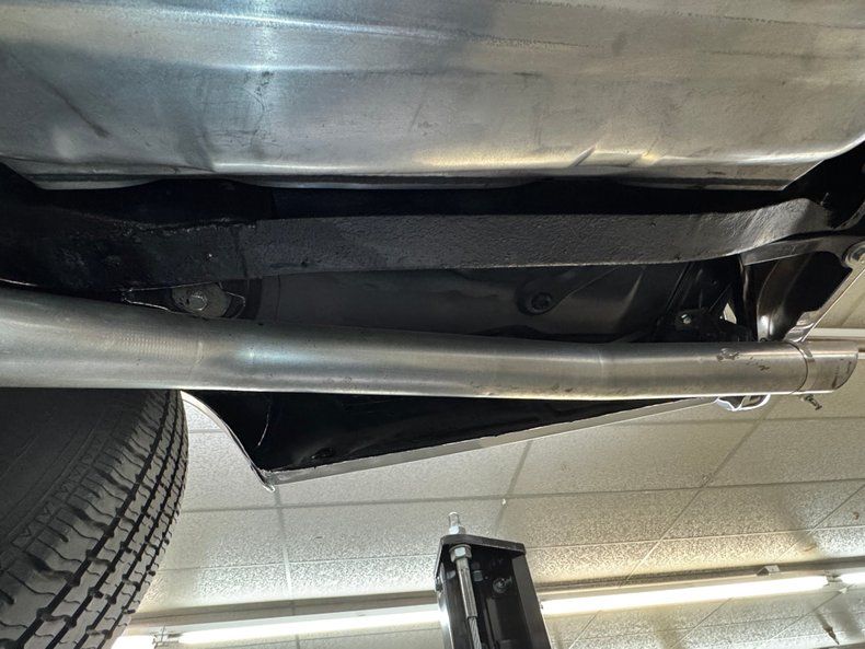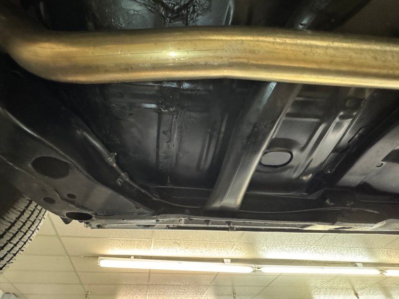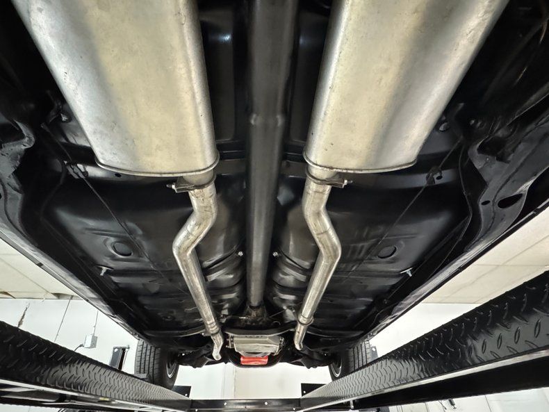 With fingers crossed, we raised this car onto the lift in hopes of a trifecta of show quality cleanliness, and our hopes were rewarded! Here, you'll find dual exhaust travelling through stock style mufflers on their way to the back. Power drum brakes are on all four wheels and coil springs are at both ends with a 4 link in back. And it's all remarkably clean.