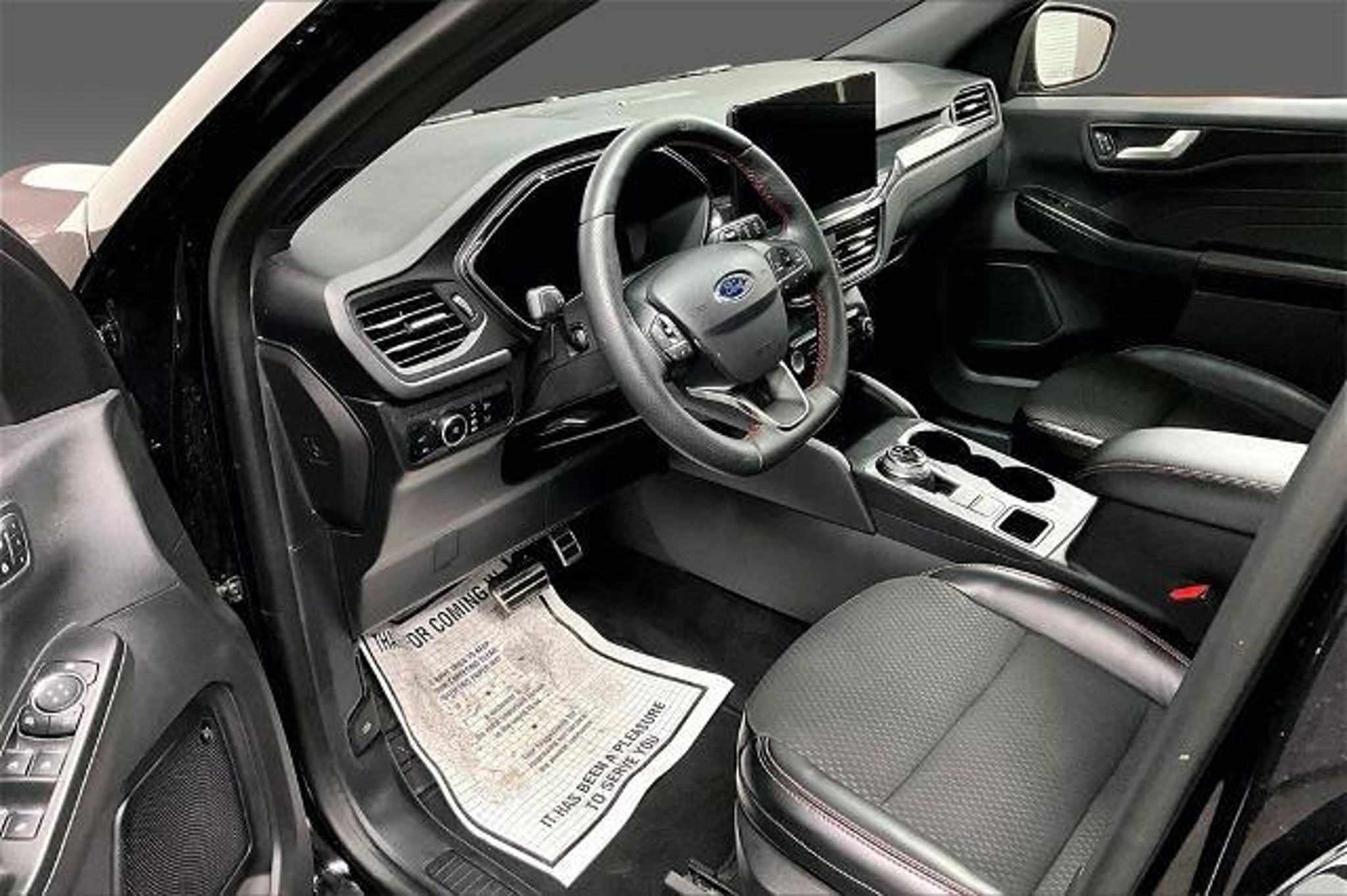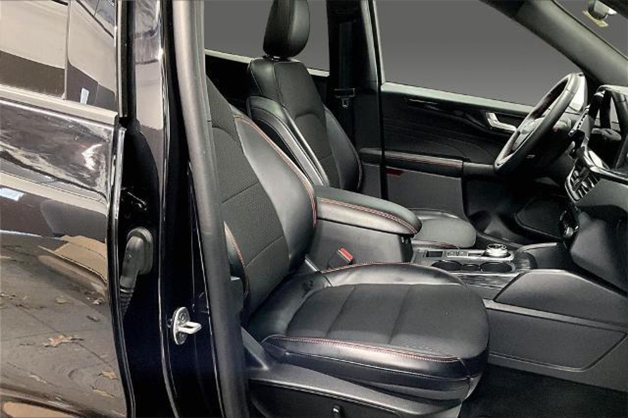 2024 Ford Escape ST-Line Select AWD â Panoramic Vista Roof â Tech Package â Sport Styling This 2024 Ford Escape ST-Line Select AWD combines sporty design, advanced technology, and all-weather confidence in a compact SUV thatâs perfect for daily driving and weekend adventures. Equipped with Equipment Group 401A, a Panoramic Vista Roof, Tech Package, Class II Trailer Tow Package, 19-inch Machined Ebony Aluminum Wheels, 360-Degree Camera with Split View, Intelligent Adaptive Cruise Control, and Lane Centering Assist, this Escape delivers standout value and premium features. Itâs finished in Agate Black Metallic with an Ebony interior featuring red ST-Line accents, giving it a bold, athletic look inside and out. Under the hood, the Escape ST-Line Select is powered by a 2.0L EcoBoost engine with Auto Start-Stop, paired with an 8-speed automatic transmission for smooth, responsive performance. The Intelligent All-Wheel Drive system enhances traction and control in changing road conditions, while a sport-tuned suspension delivers confident handling. With an EPA-estimated 26 MPG combined, this Escape balances performance and efficiency with ease. Inside, the cabin is designed for comfort and driver focus. Highlights include ST-Line sport bucket seats, a flat-bottom steering wheel with red stitching, dual-zone automatic climate control, and power-adjustable front seats. The panoramic Vista Roof floods the interior with natural light, while thoughtful storage and flexible seating make it easy to handle passengers, cargo, or both. Technology is front and center with SYNC infotainment, wireless Apple CarPlay and Android Autoâ, FordPassâ Connect, wireless charging pad, and built-in navigation with a 1-year trial. The 360-degree camera, rear parking sensors, and remote start system add everyday convenience, while intuitive controls keep everything within easy reach. Safety is a key strength of the 2024 Escape, which earned a 5-Star Overall Safety Rating. Driver-assist features include Pre-Collision Assist with Automatic Emergency Braking, Blind Spot Information System (BLISÂ), Lane-Keeping System, Evasive Steering Assist, Rear Cross-Traffic Alert, Rearview Camera, and Tire Pressure Monitoring, helping protect you and your passengers on every drive. The exterior styling reflects the ST-Lineâs sporty personality with black mesh grille, LED headlamps and taillamps, black roof rack side rails, unique rear spoiler, privacy glass, and distinctive ST-Line badging. Subtle performance-inspired detai