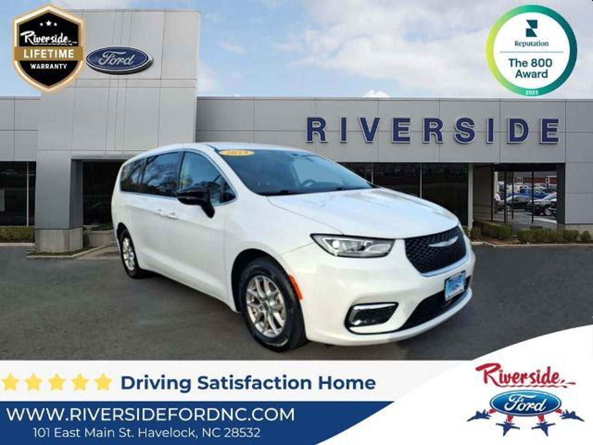 Clean CARFAX. 2024 Chrysler Pacifica Touring L ALL ROUTINE MAINTENANCE UP TO DATE, BLUETOOTH, BACKUP CAMERA, LEATHER SEATS, THIRD ROW SEATING, PUSH BUTTON START, APPLE CAR PLAY / ANDROID AUTO, HANDS FREE CALLING, POWER WINDOWS, POWER LOCKS, RIVERSIDE ADVANTAGE --- Home of the FREE limited lifetime warranty! See Dealer for details..., Quick Order Package 27L. Home of the Lifetime Warranty on most of our pre-owned vehicles! As part of the Riverside Automotive Group, Riverside Ford will not be undersold on any similar pre-owned vehicle. We have vehicles with the lowest prices, lowest miles and best selection which is why customers from Jacksonville, Morehead City, Wilmington, Greenville and Raleigh buy from us. But our unmatched service before, during and after the sale is what makes us the best place to purchase your next pre-owned vehicle. Come, see for yourself today! 19/28 City/Highway MPG