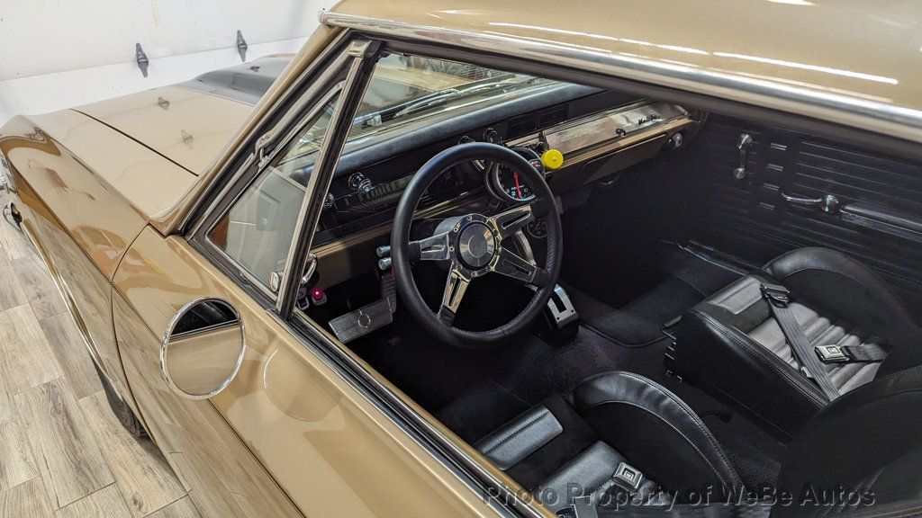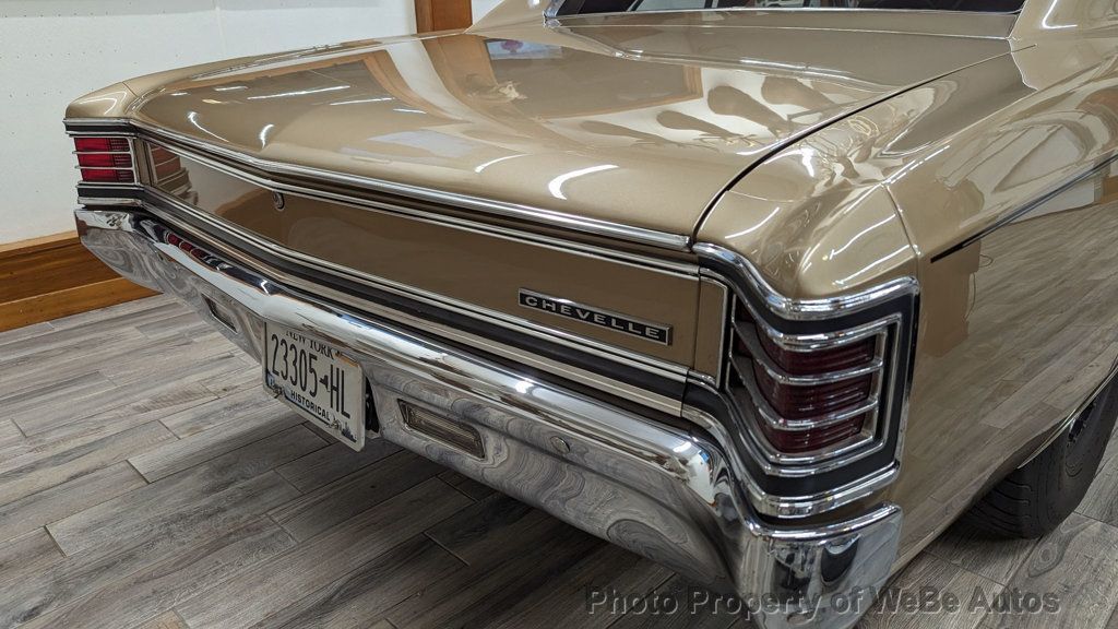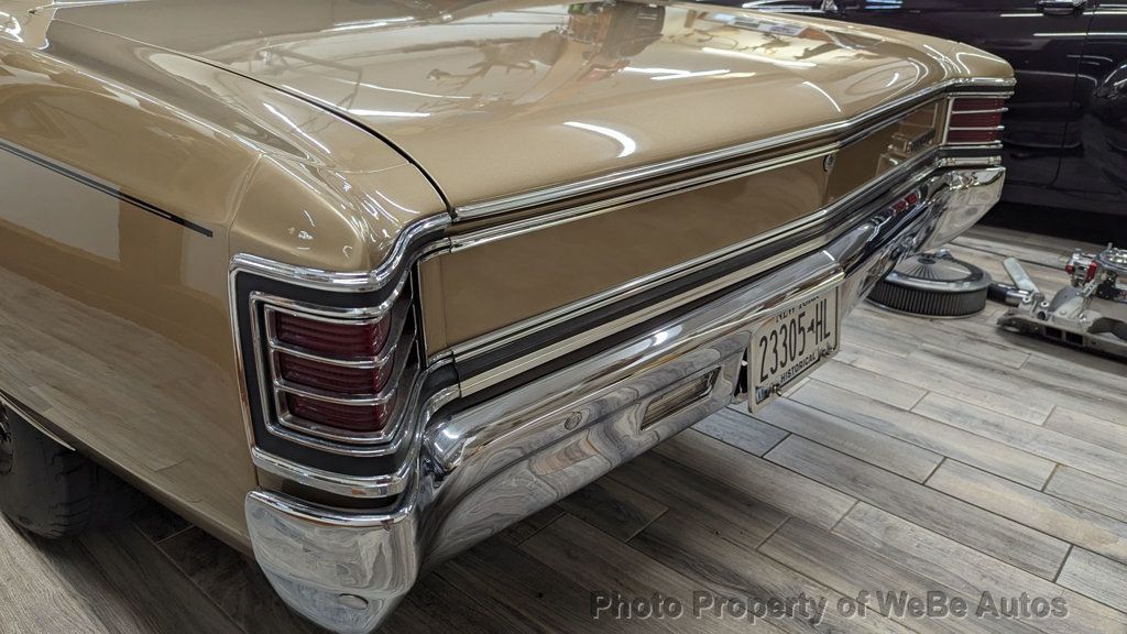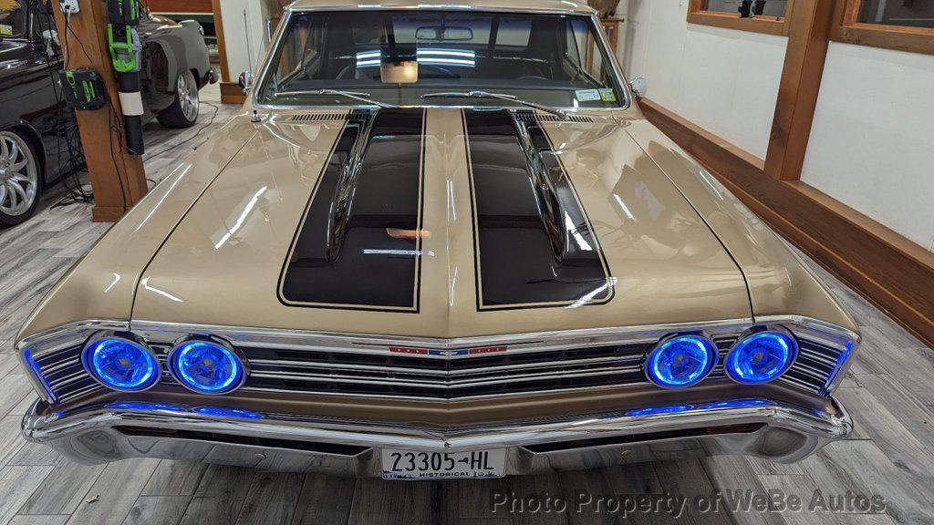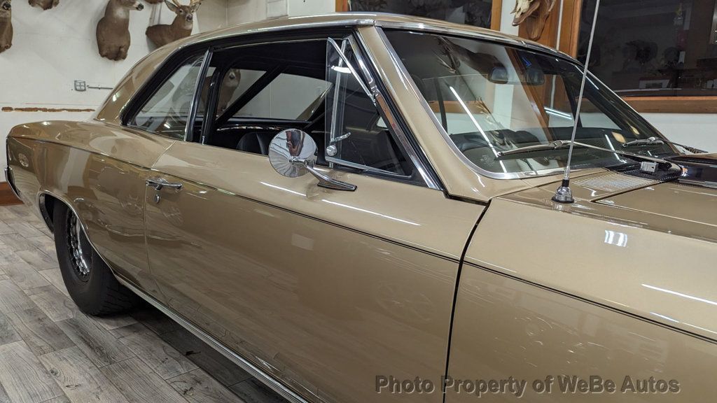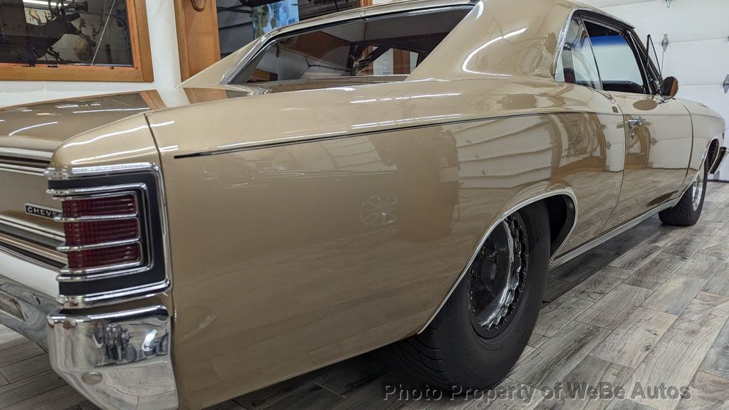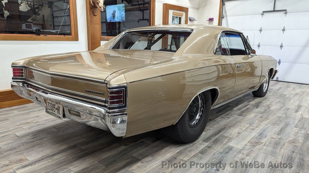 1967 Chevrolet Chevelle Pro Street For Sale 11,500 Original Miles Finished in the Original Color Granda Gold and Painted in 2012 Fuel Injected Scott Shafiroff Ultra Street 582 Big Dawg Motor Dynoed at 640hp(Lost about 100hp Vs Dominator Carb that's included) Edelbrock FI System with Pro-Flow XT Rails and Custom Intake Be Cool Radiator with Dual Electric Fans and Custom Shroud Built ATI Turbo 400 Trans with 3,300 Stall and Hurst Quarter Stick Shifter with Reverse Lockout MSD Ignition, Distributer and Wires Chrome Alternator Polished Mini A/C Compressor High-End March Serpentine Belt System Cowl Hood with Eddie Motorsports Hood Hinges(Have Original) Vintage Air Conditioning & Heat(Hidden Lines & Hoses) Power Steering with AGR Short Ratio Steering Box Power Wilwood Disc Brakes with Matching Chrome Booster Headman Headers Leading to Stainless Steel Exhaust with Electronic Dumps(Sounds Fantastic) Billet Specialties Street Lite Wheels with Bead Locks on the Rear Back Halved by S&W with a Monster Micky Thompson 31x18.5 Tire Old School Ford 9 Rear, 3:73 Gears, Moser 35 Spline Axles and Adjustable Coil-Overs QA1 Tubular Upper and Lower A-Arms with Coil- Overs Hotchkis Sway Bar High Intensity Headlights with Blue LED Halos Beautiful Interior with Lofty Bench Seat, Currently has New Buckets I-Did-It Tilt Wheel with Custom Leather Wrapped Steering Wheel Street Comp Gauges(Monster Tach, Oil, Water) Billet Door Sills, Pedals and Arm Rests 6 Point Roll Bar with Fire Extinguisher 18 Gallon Fuel Cell with Holly High Volume Fuel Pump and Braided Lines Two Bottles of NOS Attached to Twin Purge Lines on the Cowl with Purple LEDs(Never Used) Tons of Receipts and Some Spare Parts that are Included Gorgeous Chevelle with Incredible Attention to Detail, Super Straight Body, Perfect Lines, Braided Lines, APR Bolts and High-End Hardware...Everything Works, Including the Parking Brake, Absolutely No Disappointments. Follow this Link to About 425 HD Photos: https://photos.app.goo.gl/3tLyCvTF1jAk HNyV9 Take a Look at the HD Video: https://youtu.be/ziUKjREVco0 For Sale By Owner and Located in St. Augustine, FL 32080 WeBe Autos Specializes in Marketing and Advertising Muscle, Classic, Vintage and Specialty Cars. We offer Professional Photography, HD Movies, and Staging that Sells Cars. Let us showcase and sell your specialty car. Please visit our website for more details. Keep in Touch, Michael Runnalls Specialty Car Marketing & Media WeBe Autos Ltd. Long Island, NY 11780 Michael@WeBeAutos.com www.WeBeAutos.com (O)631-339-0399 (C)516-729-2003 Skype: webeautos (F)631-389-2605 - - Premium Sound System - Contact Michael Runnalls at 631-339-0399 or Michael@WeBeAutos.com for more information. -