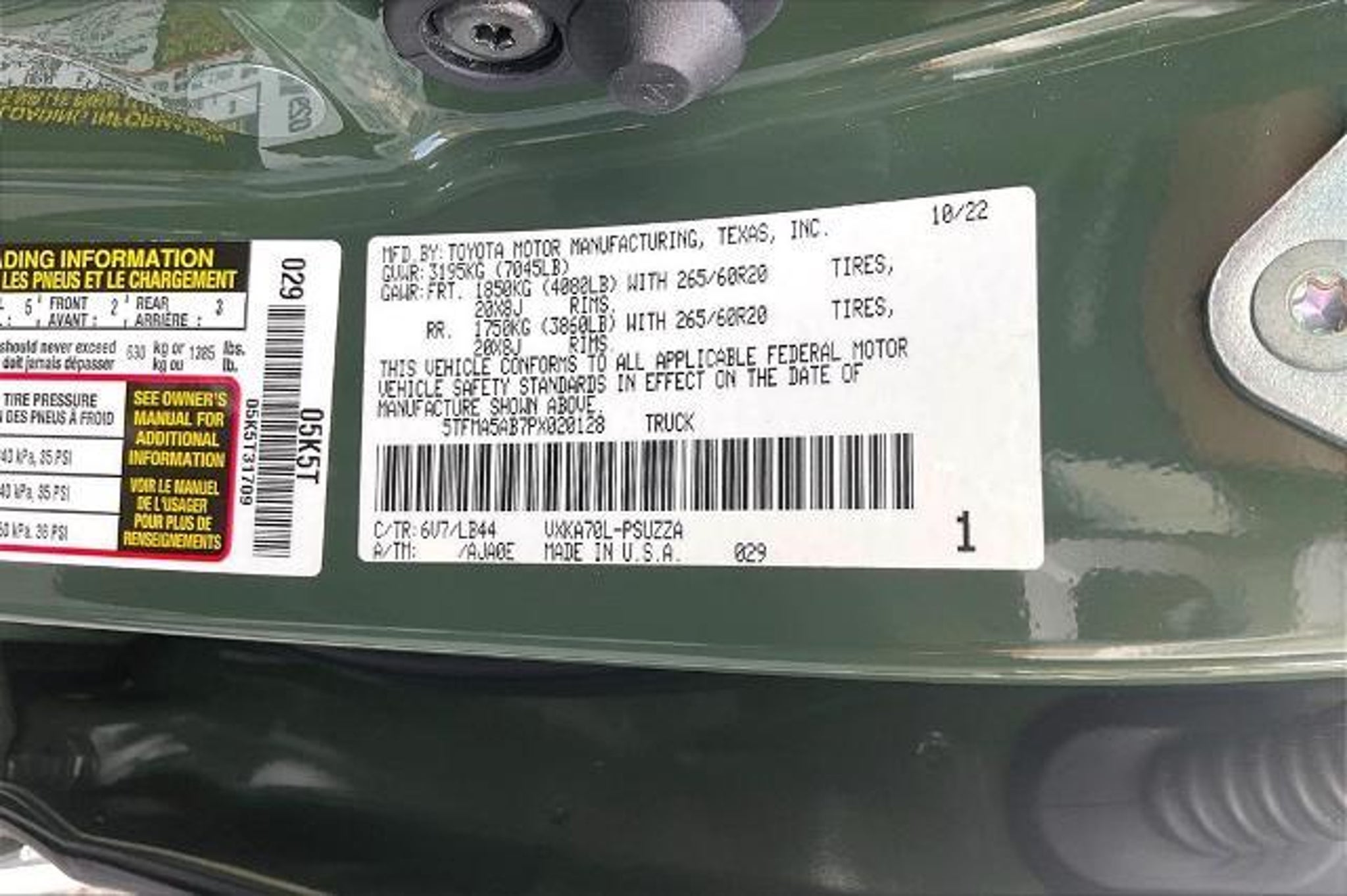 **SIGNATURE CERTIFIED BY ALLSTATE - 179 points inspection backed by our exclusive 3 YEAR/100K TOTAL MILES LIMITED POWERTRAIN WARRANTY AT NO COST TO YOU** This 2023 Toyota Tundra 1794 is a true standout in the full-size truck segment. With its impressive 3.4L V6 engine, 10-speed automatic transmission, and rear-wheel drive, this Tundra delivers a powerful and efficient driving experience. Boasting an exceptional 18 MPG in the city and 23 MPG on the highway, this truck strikes the perfect balance between performance and fuel economy. - New Tires - 1794 Grade Package - Navigation System - 12 JBL Speakers - AM/FM radio: SiriusXM - Front dual zone A/C - Rear window defroster - Memory seat - Steering wheel mounted audio controls - Power moonroof - Electronic Stability Control - Fully automatic headlights - Chrome Exhaust Tail Pipe & Diffuser - Apple CarPlay/Android Auto - Front Bucket Seats - Heated front seats - Heated rear seats - 3.31 Axle Ratio Step inside this stunning Tundra and you'll be greeted by a wealth of premium features that elevate the driving experience. The 1794 Grade Package offers a host of luxurious amenities, including a power moonroof, heated and ventilated front seats, and a state-of-the-art infotainment system with navigation and a premium JBL sound system. The exterior of this Tundra is equally impressive, with a bold and distinctive Green color that commands attention on the road. The 20-inch machined-finish alloy wheels and chrome accents add a touch of sophistication, while the new tires ensure a smooth and confident ride. Safety is also a top priority in this Tundra, with a comprehensive suite of advanced driver-assistance technologies, including Electronic Stability Control, Automatic High-Beam Headlights, and a Rear-View Camera with Dynamic Gridlines. Whether you're hauling heavy loads, navigating the great outdoors, or simply enjoying the daily commute, this 2023 Toyota Tundra 1794 is the perfect companion. With its exceptional performance, premium features, and uncompromising quality, this truck is a must-see for any discerning buyer. Don't miss your chance to experience the power and refinement of this remarkable Tundra. Visit our showroom today and let us demonstrate why this vehicle is the perfect fit for your lifestyle.