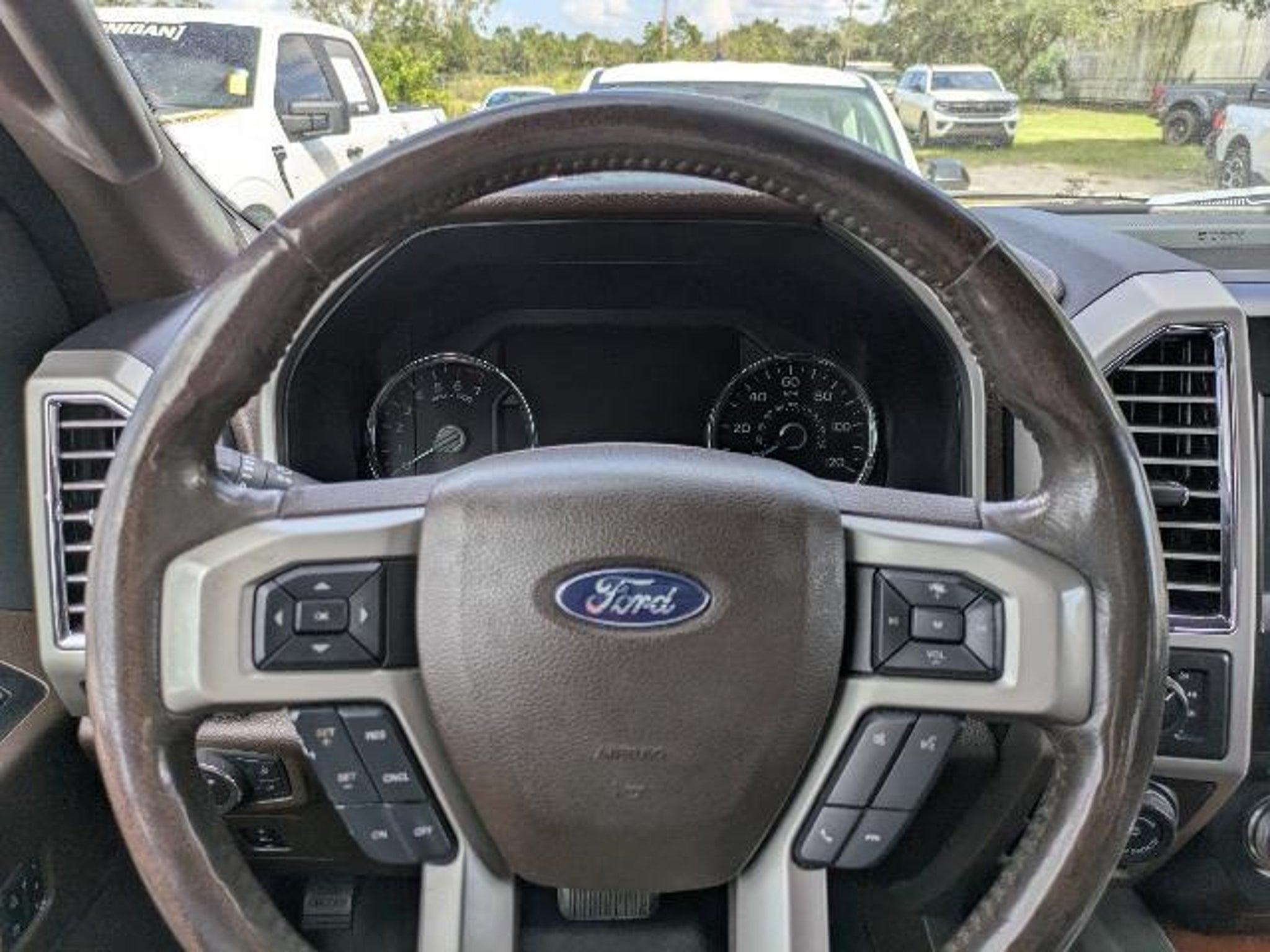 Wheels: 18' Machined-Aluminum -inc: silver painted pockets and Caribou wheel ornaments w/King Ranch logo, Voice-Activated Navigation -inc: SiriusXM Traffic and Travel Link w/5 years of service in the 48 Contiguous United States and D.C, Note: Subscriptions to all SiriusXM services are sold by SiriusXM after trial expires, Subscriptions are governed by SiriusXM Customer Agreement see www.siriusxm.com, Voice Activated Dual Zone Front Automatic Air Conditioning, Variable Intermittent Wipers, Trip Computer, Transmission: Electronic 6-Speed Automatic -inc: tow/haul mode, Transmission w/Driver Selectable Mode, SelectShift Sequential Shift Control and Oil Cooler, Trailer Wiring Harness, Tires: P275/65R18 OWL A/T, Tire Specific Low Tire Pressure Warning. This Ford F-150 has a powerful Ecoboost 3.5L V6 engine powering this Automatic transmission. These Packages Will Make Your Ford F-150 King Ranch The Envy of Your Friends Tailgate/Rear Door Lock Included w/Power Door Locks, Tailgate Rear Cargo Access, SYNC 3 -inc: Enhanced voice recognition communications and entertainment system w/911 Assist and Applink, 8' LCD touchscreen in center stack w/swiping and pinch-to-zoom capabilities, 8' productivity screen in instrument cluster, 2 smart charging USB ports, compass and clock display, Streaming Audio, Steel Spare Wheel, Solid Axle Rear Suspension w/Leaf Springs, Single Stainless Steel Exhaust w/Chrome Tailpipe Finisher, Side Impact Beams, Securilock Anti-Theft Ignition (pats) Immobilizer, Safety Canopy System Curtain 1st And 2nd Row Airbags, Running Boards, Remote Keyless Entry w/Integrated Key Transmitter, Illuminated Entry and Panic Button, Regular Box Style, Redundant Digital Speedometer, Rear Parking Sensors, Rear Cupholder, Rear Child Safety Locks, Radio: Sony Single CD w/HD SiriusXM Satellite -inc: 10 speakers and subwoofer, Radio w/MP3 Player, Clock, Steering Wheel Controls, Voice Activation and SYNC 3 External Memory Control, Proximity Key For Doors And Push Button Start. Visit Us Today For a must-own Ford F-150 come see us at LaBelle Ford, 851 S Main St, La Belle, FL 33935. Just minutes away!