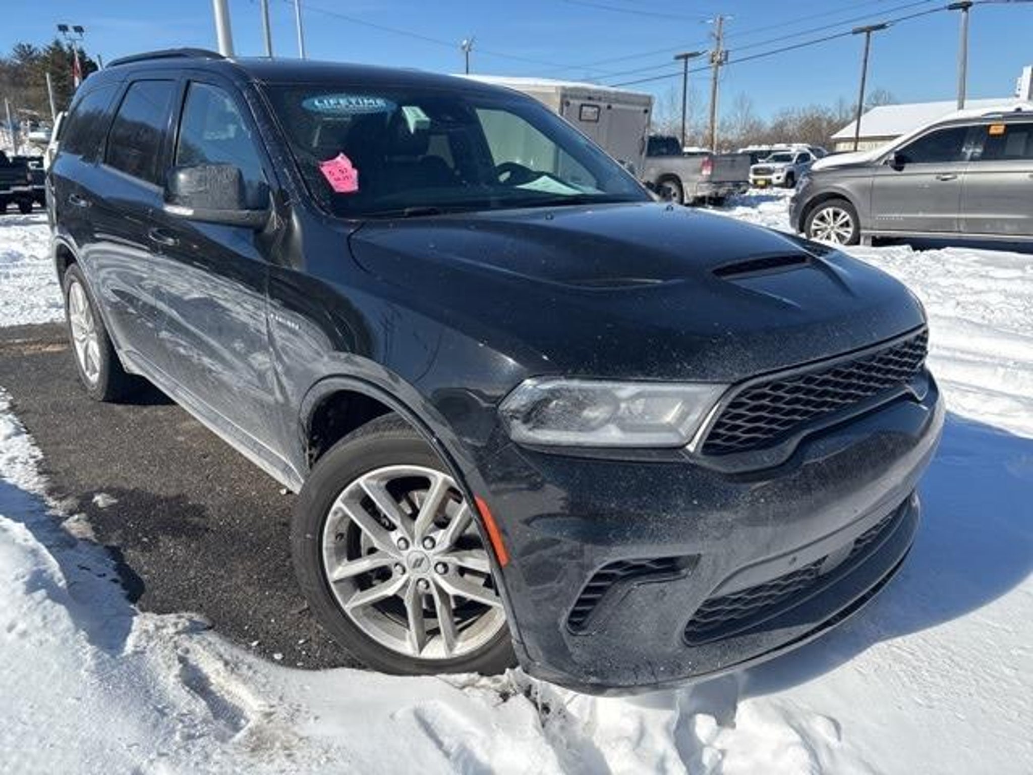 DB Black Crystal Clearcoat 2024 Dodge Durango R/T Plus AWD HEMI 5.7L V8 Multi Displacement VVT 8-Speed Automatic 115V Auxiliary Power Outlet, 7 & 4 Pin Wiring Harness, 9 Speakers, Adaptive Cruise Control w/Stop, Air Conditioning, AM/FM radio: SiriusXM w/360L, Apple CarPlay/Android Auto, Auto High-beam Headlights, Auto-Dimming Exterior Driver Mirror, Auto-dimming Rear-View mirror, Automatic temperature control, Black Roof Rails, Blind Spot w/Trailer Detection, Bumpers: body-color, Class IV Receiver Hitch, Cloth Bucket Seats w/Shift Insert, Compass, Delay-off headlights, Driver door bin, Driver vanity mirror, Dual Remote USB Port - Charge Only, Exterior Mirrors w/Heating Element, Exterior Mirrors w/Memory, Exterior Mirrors w/Supplemental Signals, Floor Console w/Leather Armrest, Front dual zone A/C, Front License Plate Bracket, Front reading lights, Full Speed Forward Collision Warning Plus, Fully automatic headlights, Garage door transmitter, Gloss Black Exterior Mirrors, Heated door mirrors, Heated Second Row Seats, Heated steering wheel, Illuminated entry, Integrated Roof Rail Crossbars, Leather steering wheel, Leather Trimmed Bucket Seats, Leather Wrapped Door Panels, LED Auxiliary Low Beam & Turn Signal, Navigation system: TomTom, Outside temperature display, Overhead console, Panic alarm, Passenger vanity mirror, Power 6x9 Multi-Function Foldaway Mirrors, Power 8-Way Driver Memory 8-Way Passenger Seats, Power door mirrors, Power driver seat, Power Driver/Passenger 4-Way Lumbar Adjust, Power steering, Power Sunroof, Power Tilt & Telescopic Steering Column, Power windows, Quick Order Package 22T R/T Plus, Radio data system, Radio: Uconnect 5 Nav w/10.1 Display, Radio/Driver Seat/Mirrors Memory, Rear air conditioning, Rear reading lights, Rear seat center armrest, Rear window defroster, Red Accent Stitching, Remote keyless entry, Security system, Speed control, Spoiler, Sport steering wheel, Steering wheel mounted audio controls, Tachometer, Telescoping steering wheel, Tilt steering wheel, Trailer Brake Control, Trip computer, Ventilated Front Seats. Schedule a test drive today call (740) 439-7767 or email leads@motosnap24.com. Come Experience the Dunning Difference where you will be put First. Our Pre Owned Inventory is PRICED BELOW MARKET VALUE. Dunning Ford Gets it Done!!! With a Guaranteed Credit Approval.... Visit www.Dunningford.com.