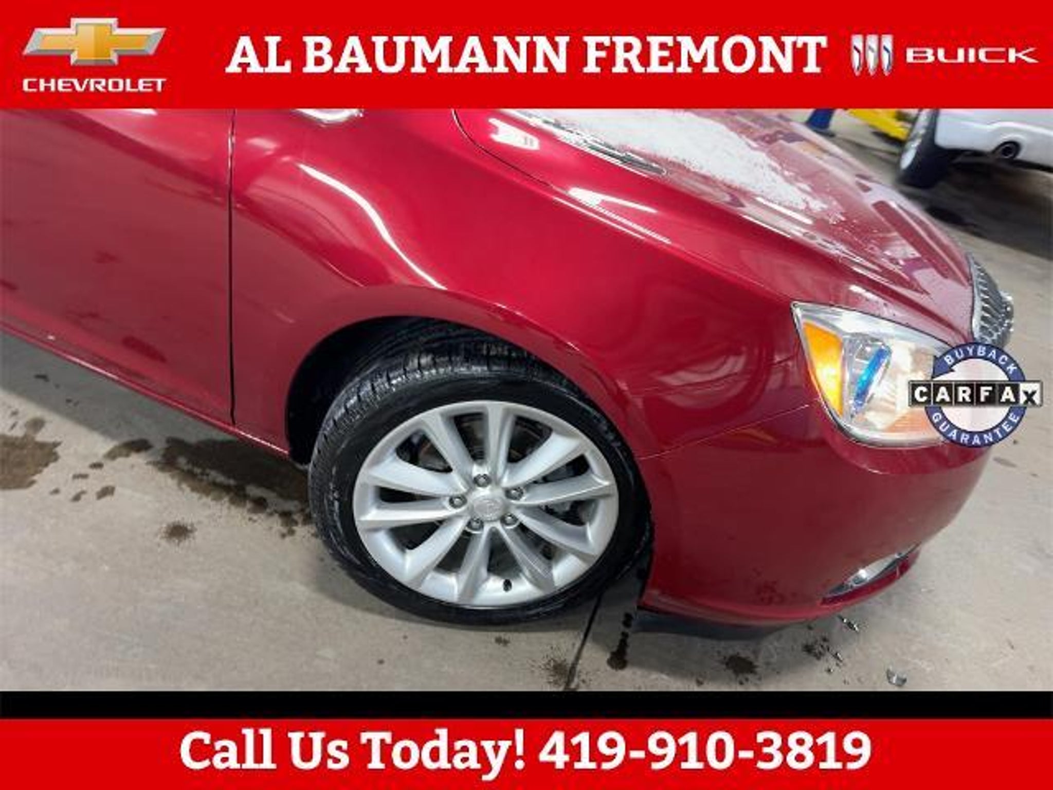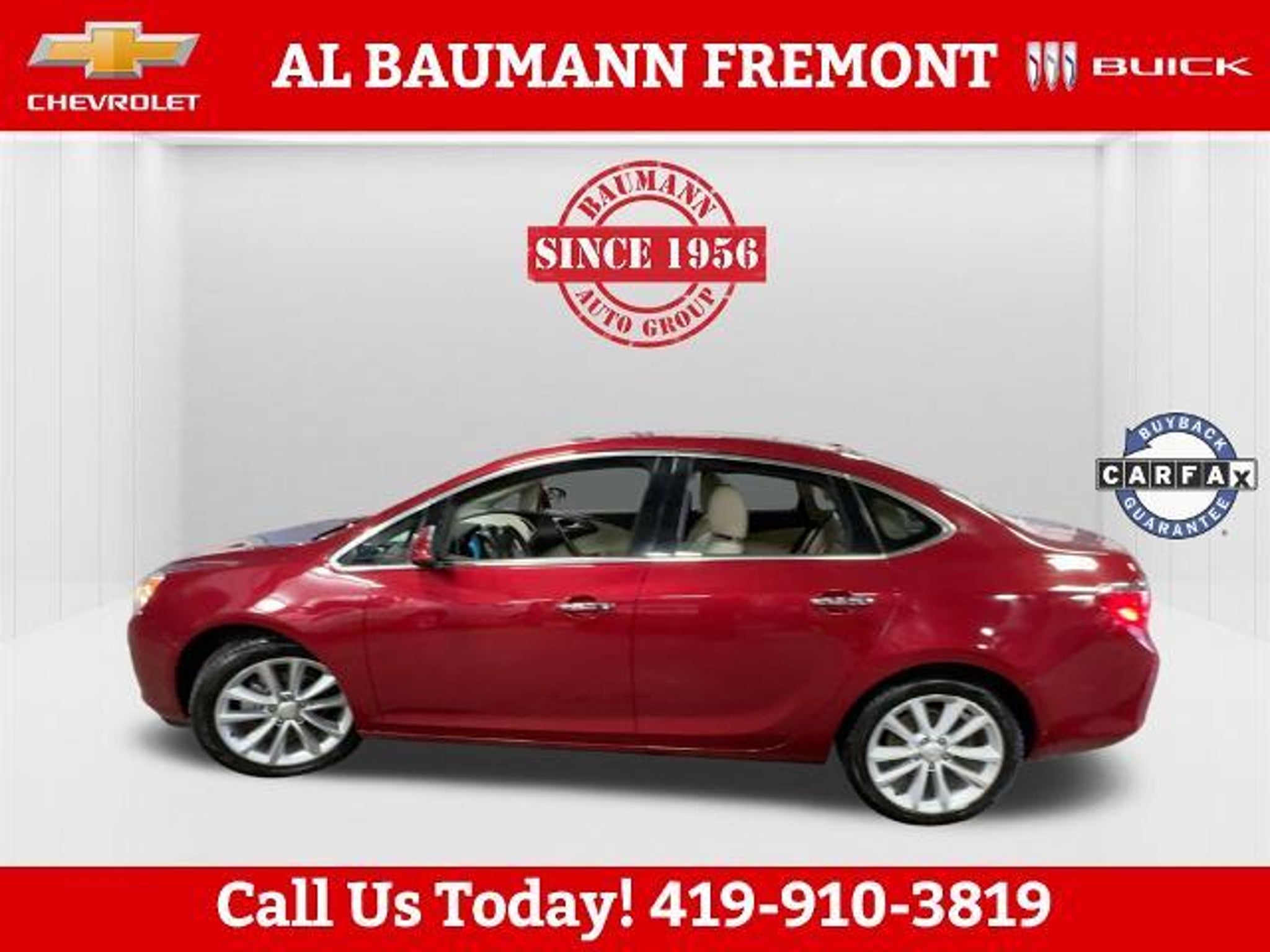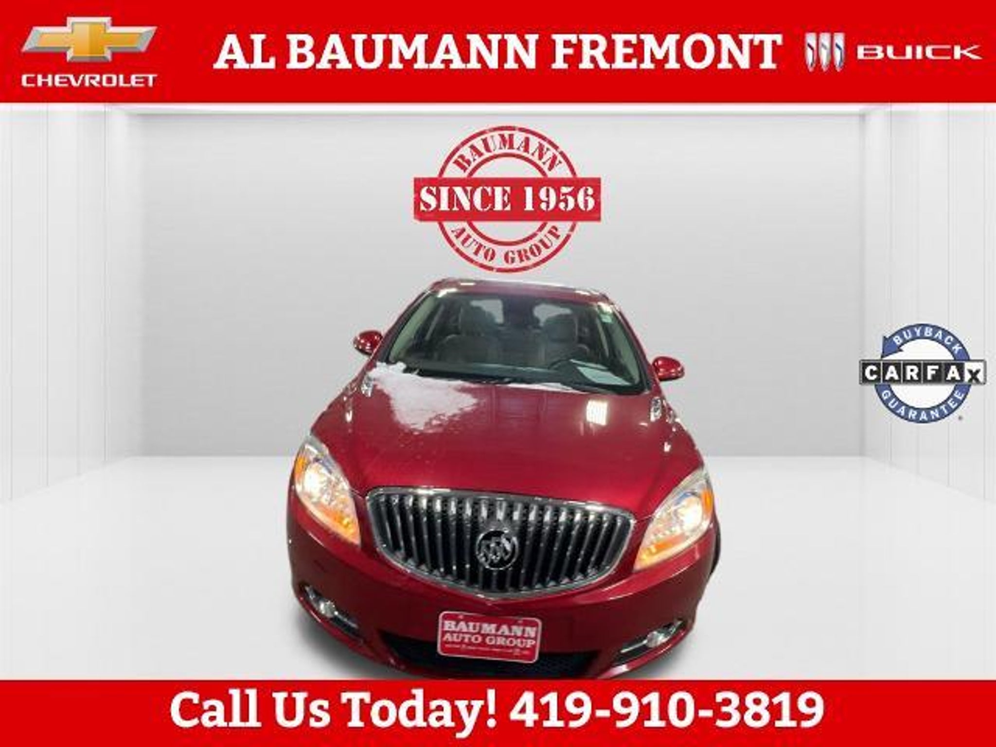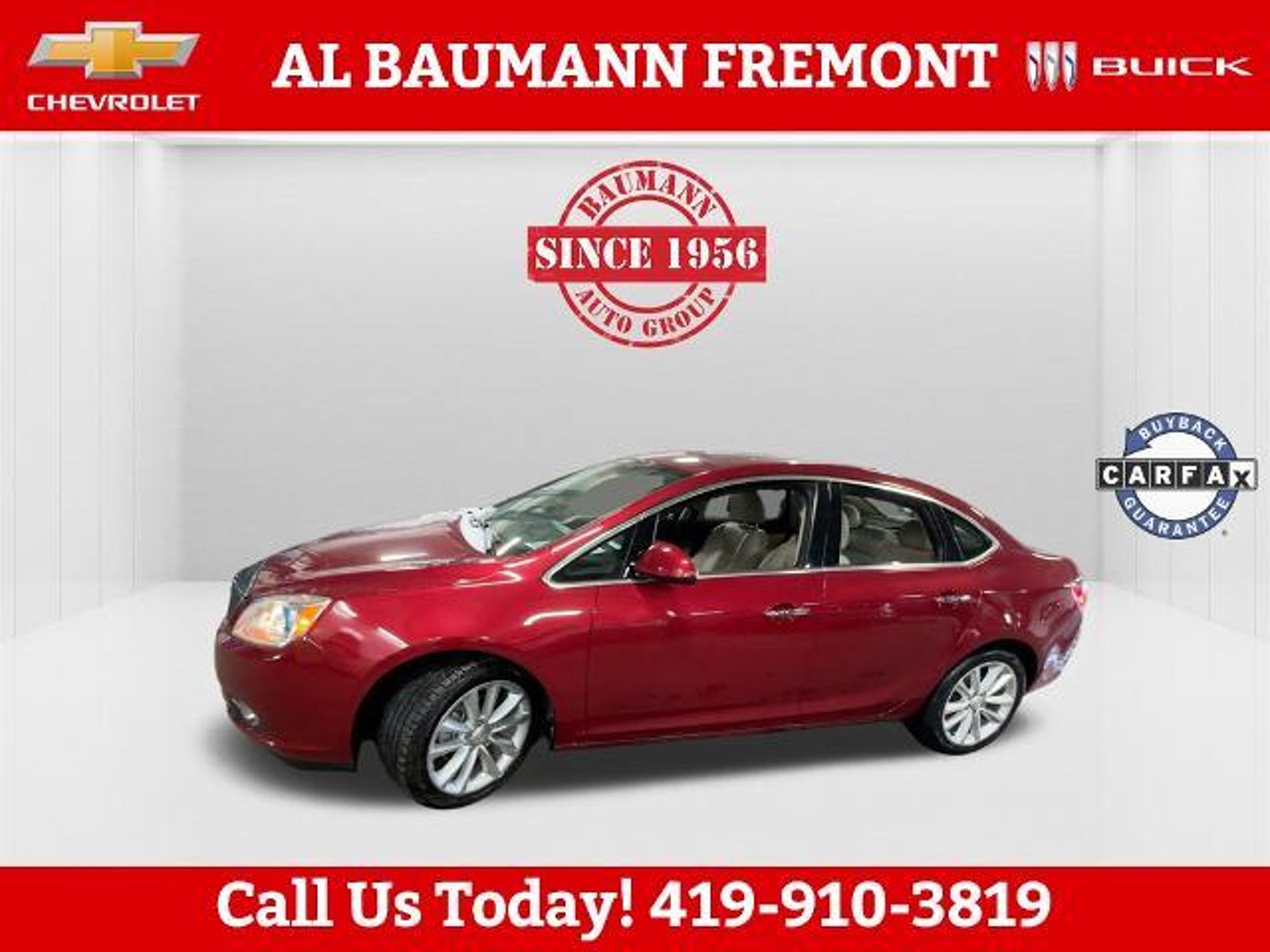 New Price! Odometer is 73014 miles below market average! Crystal Red Tintcoat 2013 Buick Verano 4D Sedan ECOTEC 2.4L I4 SIDI DOHC VVT 6-Speed Automatic Electronic with Overdrive FWD ONLY TWO OWNERS. Car shopping is sometimes inconvenient and stressful, and we want to take the hassle out of this all-too-common experience. If you?re interested in more convenience, less frustration and a process that works efficiently to meet your needs as a customer. Al BAUMANN AUTO GROUP. The Best Price Up Front Cash Offers For Any Trade-In Multiple Financing Quotes In Minutes A Team Of Dedicated Salespeople. CALL,419-332-8236 or {1-866-330-3601}, Preferred Equipment Group 1SD, 18 x 8 Multi-Spoke Machined Alloy Wheels, 4-Wheel Disc Brakes, 6 Speakers, ABS brakes, Air Conditioning, Alloy wheels, AM/FM radio: SiriusXM, Automatic temperature control, Brake assist, Bumpers: body-color, CD player, Compass, Delay-off headlights, Driver door bin, Driver vanity mirror, Dual front impact airbags, Dual front side impact airbags, Electronic Stability Control, Emergency communication system: OnStar Directions & Connections, Exterior Parking Camera Rear, Four wheel independent suspension, Front anti-roll bar, Front Bucket Seats, Front Center Armrest, Front dual zone A/C, Front fog lights, Front reading lights, Fully automatic headlights, Illuminated entry, Knee airbag, License Plate Front Mounting Package, Low tire pressure warning, Occupant sensing airbag, Outside temperature display, Overhead airbag, Overhead console, Panic alarm, Passenger door bin, Passenger vanity mirror, Power door mirrors, Power steering, Power windows, Premium audio system: IntelliLink, Premium Ribbon Fabric Seat Trim, Radio data system, Radio: AM/FM/SiriusXM Stereo w/MP3 CD Player, Rear anti-roll bar, Rear reading lights, Rear seat center armrest, Rear side impact airbag, Rear window defroster, Remote keyless entry, Security system, SiriusXM Satellite Radio, Speed control, Split folding rear seat, Steering wheel mounted audio controls, Tachometer, Telescoping steering wheel, Tilt steering wheel, Traction control, Trip computer, Variably intermittent wipers, Voltmeter, Wheels: 18 x 8 Split Multi-Spoke Alloy, Preferred Equipment Group 1SD.