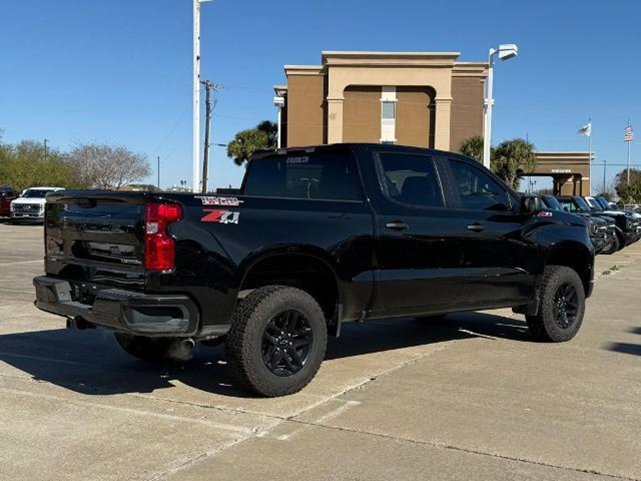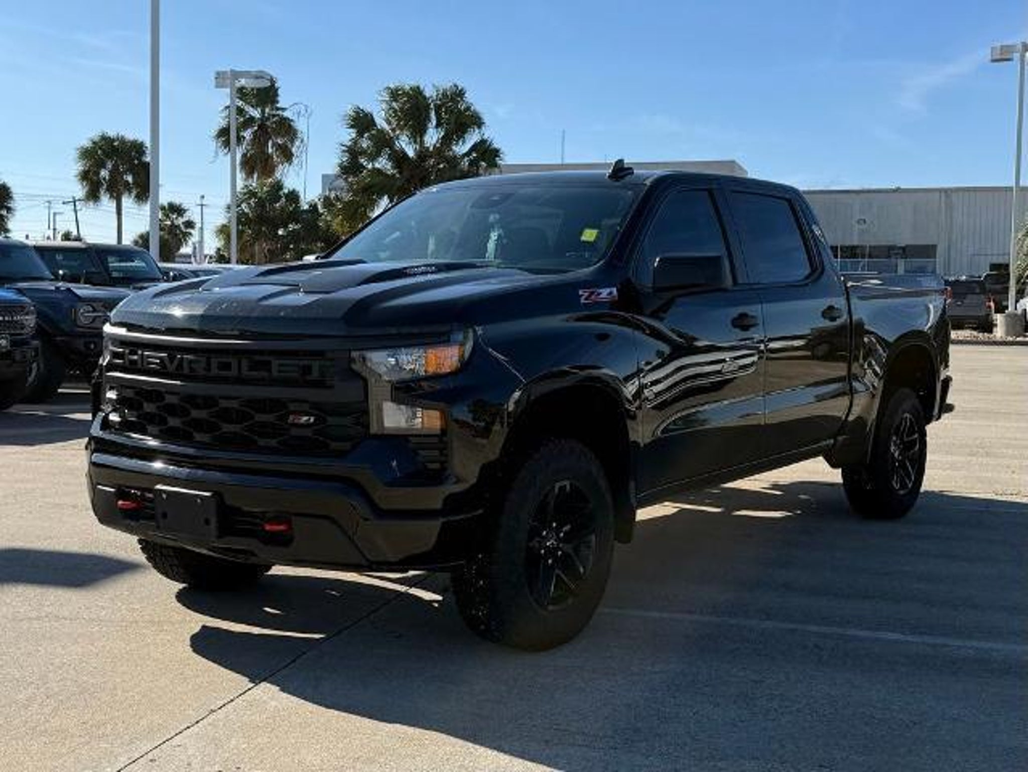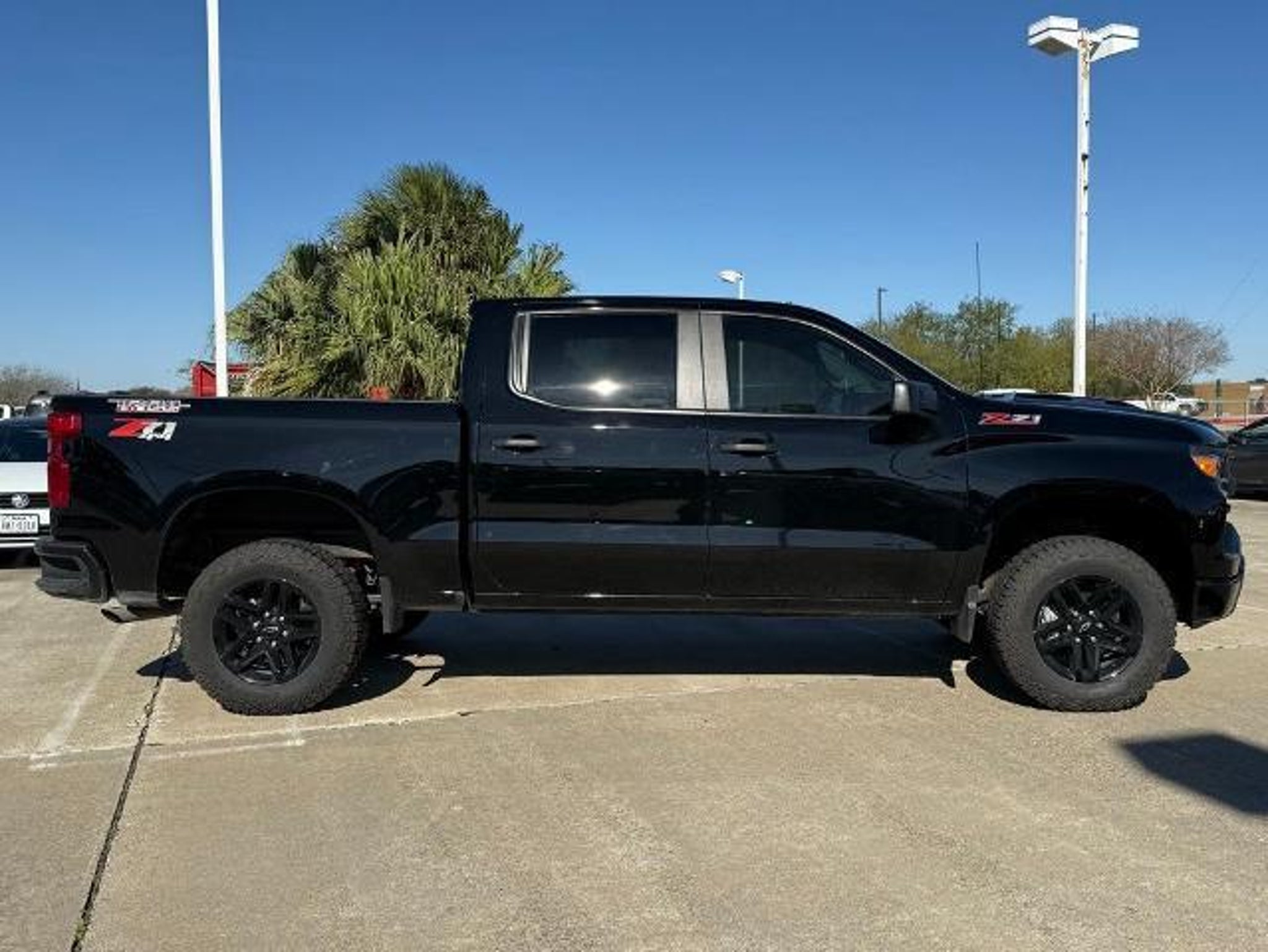 Black 2025 Chevrolet Silverado 1500 Custom Trail Boss 4WD 8-Speed Automatic 2.7L I4 Turbocharged DOHC 16V LEV3-SULEV30 310hp 8-Speed Automatic, 4WD, Black Cloth. This vehicle comes equipped with the following features and options: Custom Convenience Package (Electric Rear-Window Defogger, EZ Lift Power Lock & Release Tailgate, LED Cargo Area Lighting, Remote Vehicle Starter System, and Theft Deterrent System (Unauthorized Entry)), Preferred Equipment Group 2CX (10-Way Power Driver Seat w/Lumbar, 120-Volt Bed Mounted Power Outlet, 120-Volt Interior Power Outlet, 3.5 Monochromatic Display Driver Info Center, Auto-Locking Rear Differential, Bluetooth For Phone, Color-Keyed Carpeting Floor Covering, Deep-Tinted Glass, Dual Rear USB Ports (Charge Only), Electronic Cruise Control, Front Rubberized Vinyl Floor Mats, HD Rear Vision Camera, Manual Tilt Wheel Steering Column, OnStar Services Capable, Performance Red Recovery Hooks, Power Front Windows w/Driver Express Up/Down, Power Front Windows w/Passenger Express Down, Power Rear Windows w/Express Down, Rear 60/40 Folding Bench Seat (Folds Up), Rear Rubberized-Vinyl Floor Mats, Remote Keyless Entry, SiriusXM Trial Subscription, Standard Tailgate, Teen Driver, Tire Pressure Monitoring System, and Wi-Fi Hot Spot Capable), Suspension Package (Heavy-Duty Air Filter and Hill Descent Control), Trailering Package (Hitch Guidance), 8-Speed Automatic, 4WD, Black Cloth, 220 Amp Alternator, 3.42 Rear Axle Ratio, 4-Wheel Disc Brakes, 40/20/40 Front Split-Bench Seat, 6 Speakers, 6-Speaker Audio System, ABS brakes, Air Conditioning, Alloy wheels, AM/FM radio: SiriusXM, Apple CarPlay/Android Auto, Auto High-beam Headlights, Automatic Emergency Braking, Brake assist, Cloth Seat Trim, Compass, Delay-off headlights, Driver door bin, Driver vanity mirror, Dual front impact airbags, Dual front side impact airbags, Electronic Stability Control, Emergency communication system: OnStar, Following Distance Indicator, Forward Collision Alert, Front anti-roll bar, Front Center Armrest w/Storage, Front License Plate Kit, Front Pedestrian Braking, Front reading lights, Front wheel independent suspension, Fully automatic headlights, Heated door mirrors, Illuminated entry, IntelliBeam Automatic High Beam On/Off, Lane Keep Assist w/Lane Departure Warning, Low tire pressure warning, Occupant sensing airbag, Outside temperature display, Overhead airbag, Overhead console, Panic alarm, Passenger door bin, Passenger vanity mirror, Power door mirrors, Power driver seat, Power steering, Power wind