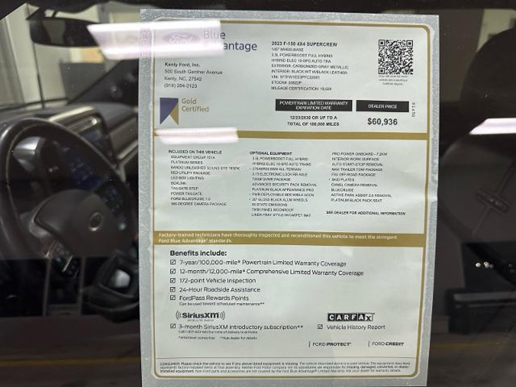 ** Please call, text, or visit JOE HUSICK at x227 or mobile (919) 795-9577 up to 9PM *** ONE OWNER with clean CARFAX. Ford GOLD Certified with extra Ford backed warranty and benefits included. Features Black Appearance, FX4 Off-Road, and Max Trailer Tow packages, Pro Power Onboard 7.2KW, interior work surface, twin-panel sun/moon roof, 3.73 ratio electronic locking rear axle, power tailgate, 360-degree cameras, LED box lighting, FORDPASS CONNECT, and much more ....................................................................................................................................................... ............................................................................................................................ *** With over twenty-one years experience here at Kenly Ford I assure you the highest level of integrity and professionalism. Extra effort has been made to provide accurate and reliable details and multiple photos showing the actual vehicle in natural light when possible. Ad space is limited but my time is not so please ask for me by name when calling or visiting. Thank you! Joe Husick***
