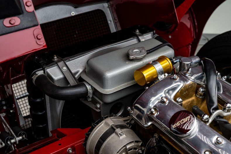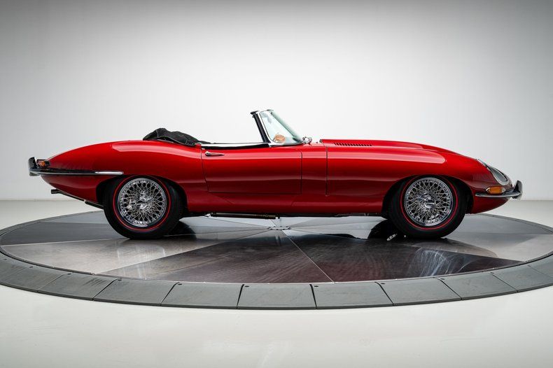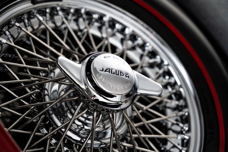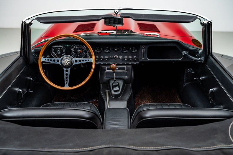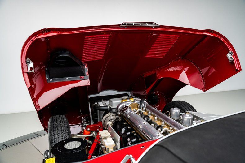 Finished in striking Carmen Red over a black leather interior, this 1966 E-Type Roadster was meticulously restored by marque specialists at Catz Automotive in Youngstown, Ohio, with a clear emphasis on authenticity, craftsmanship, and long-term quality. The body was stripped to bare metal and mounted on a rotisserie, then finished using traditional metal work to achieve straight panels that remain faithful to original factory contours. One of the defining features of the Series I design, the iconic covered headlights remain in place, giving the E-Type its famously smooth, uninterrupted lines and visual elegance that later generations never quite replicated. Exterior details are completed by quality brightwork that was triple-plated for proper depth and luster, while chrome wire wheels fitted with Coker redline tires provide a period-correct touch that complements the car's classic character.