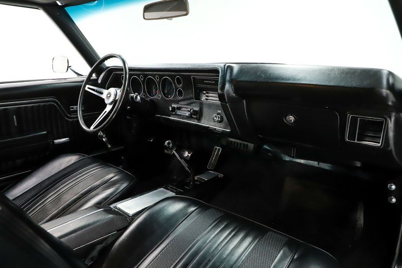 INTERIOR: From carpet to headliner it's practically a new 1970 Chevelle. Down on the floor it has reproduction mats and a center console with the Hurst 4-speed sticking out of it. The bucket seats have been recushioned and reupholstered. The back seat was reupholstered, the side panels and headliner have been replaced. The dash area looks great too. The deluxe wheel is on a tilt wheel.
