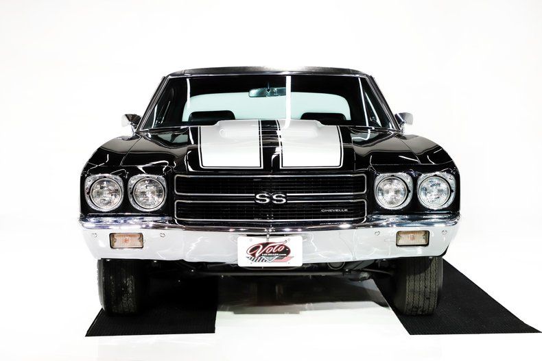 EXTERIOR: This the best looking skunk I've ever seen! Stunning factory tuxedo black with the white SS stripes. The body is laser beam straight and smooth all the way down to the rockers. The gaps fit exceptionally well and the paint is polished to a very smooth high gloss finish. It looks like all of the trim has been replaced including the moldings, door handles, emblems, bumpers etc. The vinyl top and weatherstrips were replaced. All of the glass was even replaced! Brought back exactly to 1970 specs with T3 headlights and Firestone Wide Oval tires!
