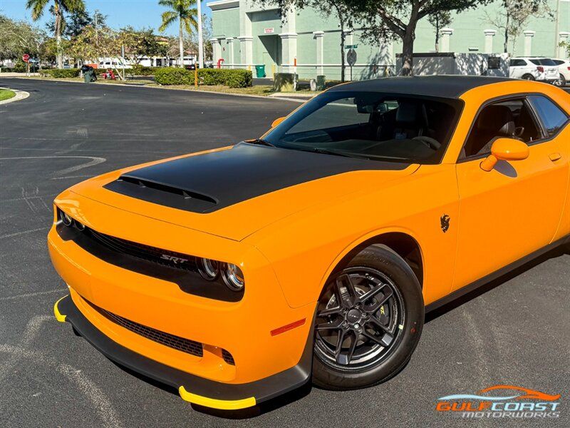 "2023 Dodge Challenger SRT Demon 170 Special Kevin Hart 1 of 1 Spec. Cream Sickle Exterior Paint with Black Alcantara/ Laguna 170 interior. Features include: 1,025 Horsepower 6.2L Supercharged HEMI V8 engine, 8 speed automatic transmission, Carbon Fiber 2"Piece Wheels " Front 8x8"" Rear 17x11"", Brembo 4-Piston Breaks With Yellow Logo, SRT Rear Widebody, 220MPH Primary Speedometer, Air Grabber Hood, High Insert Discharge Headlamps, Satin Black ""Dodge"" Tail Lamp Badge, SRT® Performance Spoiler, 170 Satin Black Hood / Roof / Decklid Graphic, Competition Suspension, Dual Scoop Hood, Conical Cold Air Intake, After"Run Chiller, Active Exhaust, SRT® Configurable Drive Modes, SRT® Performance Pages, Rear camera, Keyless access & ignition, Harman Kardon premium sound system, Uconnect w/navigation, SRT® Alcantara® Steering Wheel, Real Carbon Fiber Interior Accents, Demonic Red Seat Belts, Leather"Wrapped Shift Knob, Remote"Start System, 170 Alcantara Leather Seats, Ventilated Front Seats, Suede Door Trim Panel with Map Pocket, Suede Headliner,Premium"Stitched Dash Panel, Trunk Mounted Subwoofer, Uconnect® 4C NAV with 8.4"Inch Touch Screen Display, Dual automatic climate control. Priced at only $399,995. Financing available. We ship worldwide. We pay top dollar for lightly used sports cars! Call or text our Product Specialists today at 239-522-2262 or email us at sales@gcmworks.com. Fees and Taxes: 1199.00 Doc Fee on all Purchases. Out of state buyers are responsible for all state, county, city taxes and fees, as well as title/registration fees in the state that the vehicle will be registered. -- INSTALLED FEATURES: Air filtration, Front air conditioning: automatic climate control, Front air conditioning zones: dual, Humidity/dewpoint sensors, Rear vents: second row, Airbag deactivation: occupant sensing passenger, Front airbags: dual, Knee airbags: driver, Side airbags: front, Side curtain airbags: front / rear, Antenna type: diversity / element / mast, Auxiliary audio input: Bluetooth / iPod/iPhone / jack / USB, Premium brand: Alpine, Radio: AM/FM / HD radio / touch screen display / voice operated, Radio data system, Satellite radio: SiriusXM, Speed sensitive volume control, Total speakers: 6, Watts: 276, ABS: 4-wheel, Brake drying, Braking assist, Electronic brakeforce distribution, Emergency braking preparation, Front brake type: ventilated disc, Painted brake calipers, Power brakes, Premium brakes: Brembo, Rear brake type: ventilated disc, Armrests: rear center with cupholders / rear folding, Center console trim: alloy, Dash trim: alloy, Door trim: cloth, Floor mat material: carpet, Floor material: cargo area carpet / carpet, Floor mats: front / rear, Foot pedal trim: alloy, Heated steering wheel, Interior accents: aluminum, Shift knob trim: leather, Steering wheel trim: leather, Ambient lighting, Assist handle: front, Cargo area light, Center console: front console with armrest and storage, Courtesy lights: door, Cruise control, Cupholders: front / illuminated / rear, Easy entry: manual driver seat / manual passenger seat, Multi-function remote: panic alarm / proximity entry system / trunk release, One-touch windows: 2, Overhead console: front, Power outlet(s): 12V front / USB front, Power steering: variable/speed-proportional, Push-button start, Reading lights: front / rear, Rearview mirror: auto-dimming, Remote engine start, Steering wheel: tilt and telescopic, Steering wheel mounted controls: audio / cruise control / phone / voice control, Storage: accessory hook / door pockets / front seatback, Universal remote transmitter: Homelink - garage door opener, Vanity mirrors: dual illuminating, Door handle color: body-color, Exhaust: dual tip, Exhaust tip color: black, Front bumper color: body-color, Grille color: black, Ground effects/lower spoilers, Hood scoop: dual, Mirror color: body-color, Rear bumper color: body-color, Rear spoiler: lip, Rear spoiler color: black, Window trim: black, Connected in-car apps: app marketplace integration / Google POIs / Google search / SiriusXM Travel Link, Infotainment: Uconnect, Infotainment screen size: 8.4 in., Smartphone integration: Android Auto / Apple CarPlay, Clock, Compass, Customizable instrument cluster, Digital odometer, External temperature display, Fuel economy display: MPG / range, Gauge: tachometer, Instrument cluster screen size: 7 in., Multi-function display, Trip odometer, Warnings and reminders: coolant temperature warning / lamp failure / low fuel level / low oil pressure / low washer fluid, Daytime running lights: LED, Exterior entry lights: approach lamps, Headlights: auto delay off / auto on/off / halogen / wiper activated, Taillights: LED, Side mirror adjustments: manual folding / power, Side mirrors: heated, Alternator: 220 amps, Auxiliary oil cooler, Battery: maintenance-free, Battery rating: 730 CCA, Battery saver, Drive mode selector, Emissions: 50 state, Limited slip differential: rear, Performance exhaust, Active head restraints: dual front, Camera system: rearview, Child seat anchors: LATCH system, Crumple zones: front / rear, Emergency interior trunk release, Impact sensor: post-collision safety system, Parking sensors: rear, Rearview monitor: in dash, Emergency locking retractors: front, Front seatbelts: 3-point, Rear seatbelts: 3-point, Seatbelt force limiters: front, Seatbelt pretensioners: front, Seatbelt warning sensor: front, Driver seat: heated, Driver seat manual adjustments: reclining, Driver seat power adjustments: 4-way power lumbar / 6 / height, Front headrests: 2 / adjustable, Front seat type: sport bucket, Passenger seat: heated, Passenger seat manual adjustments: 4 / reclining, Rear headrests: 2 / integrated, Rear seat folding: split, Rear seat type: 60-40 split bench, Upholstery: cloth, Anti-theft system: alarm / anti-tow sensor / interior motion sensor / vehicle immobilizer, Power door locks: auto-locking, Hill holder control, Roll stability control, Stability control, Traction control, Active suspen