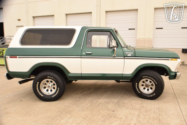 This 1979 Ford Bronco represents an excellent opportunity to own a classic SUV that has been restored with care and upgraded where it matters most. From its eye-catching Pacific Green and Oxford White two-tone finish to its rebuilt drivetrain and modern enhancements, this Bronco is ready to be enjoyed as both a collectible classic and a highly drivable vintage 4x4.