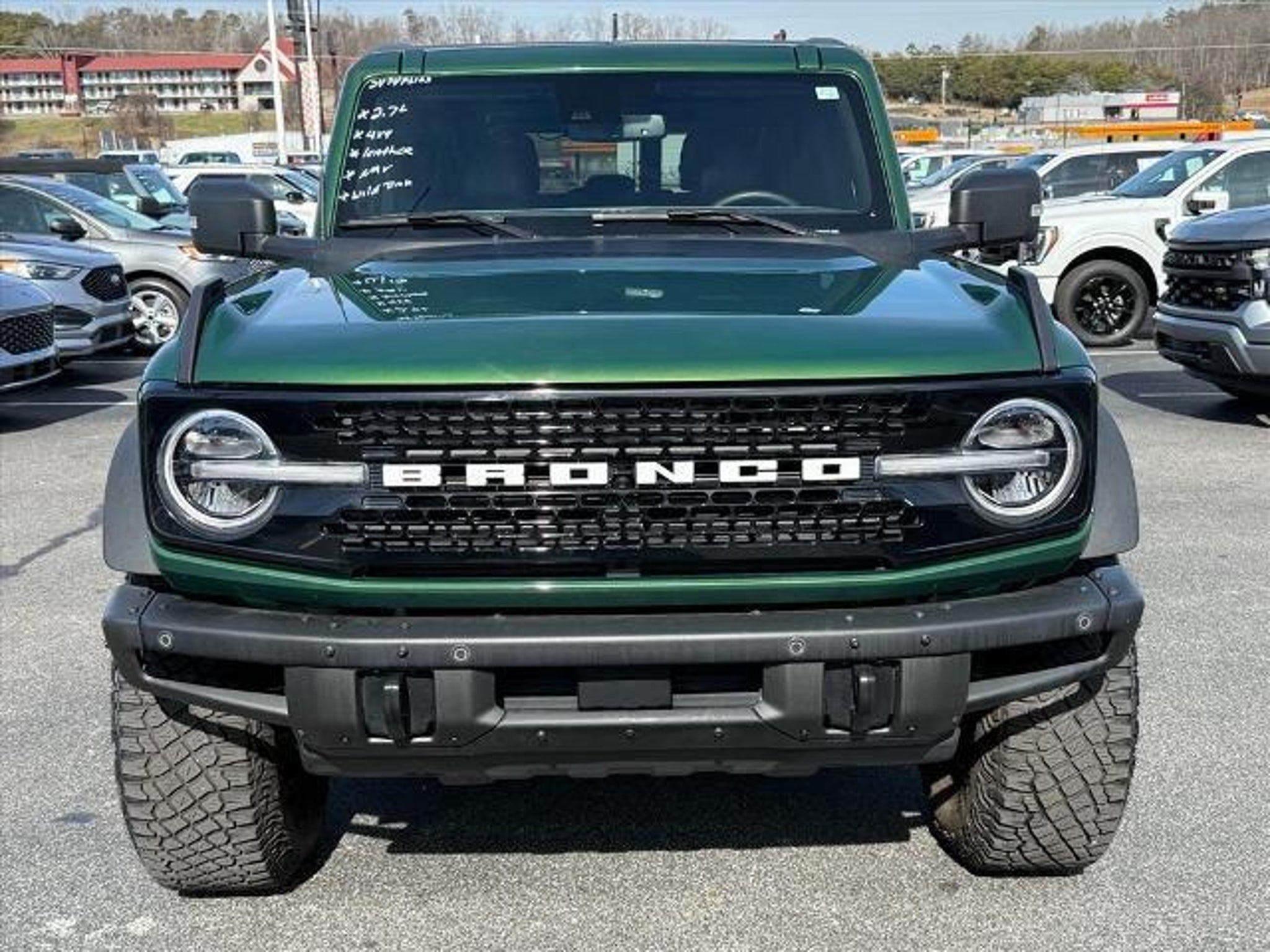 Eruption Green Metallic 2024 Ford Bronco Wildtrak 4WD 10-Speed Automatic 2.7L EcoBoost V6 Fully Detailed, ONE OWNER!!, Adaptive Cruise Control, Carbonized Gray Molded-In-Color Hard Top, Hard Top Sound Deadening Headliner, Navigation system: Connected Navigation, Wheels: 17 Black High Gloss-Painted Aluminum.Recent Arrival!