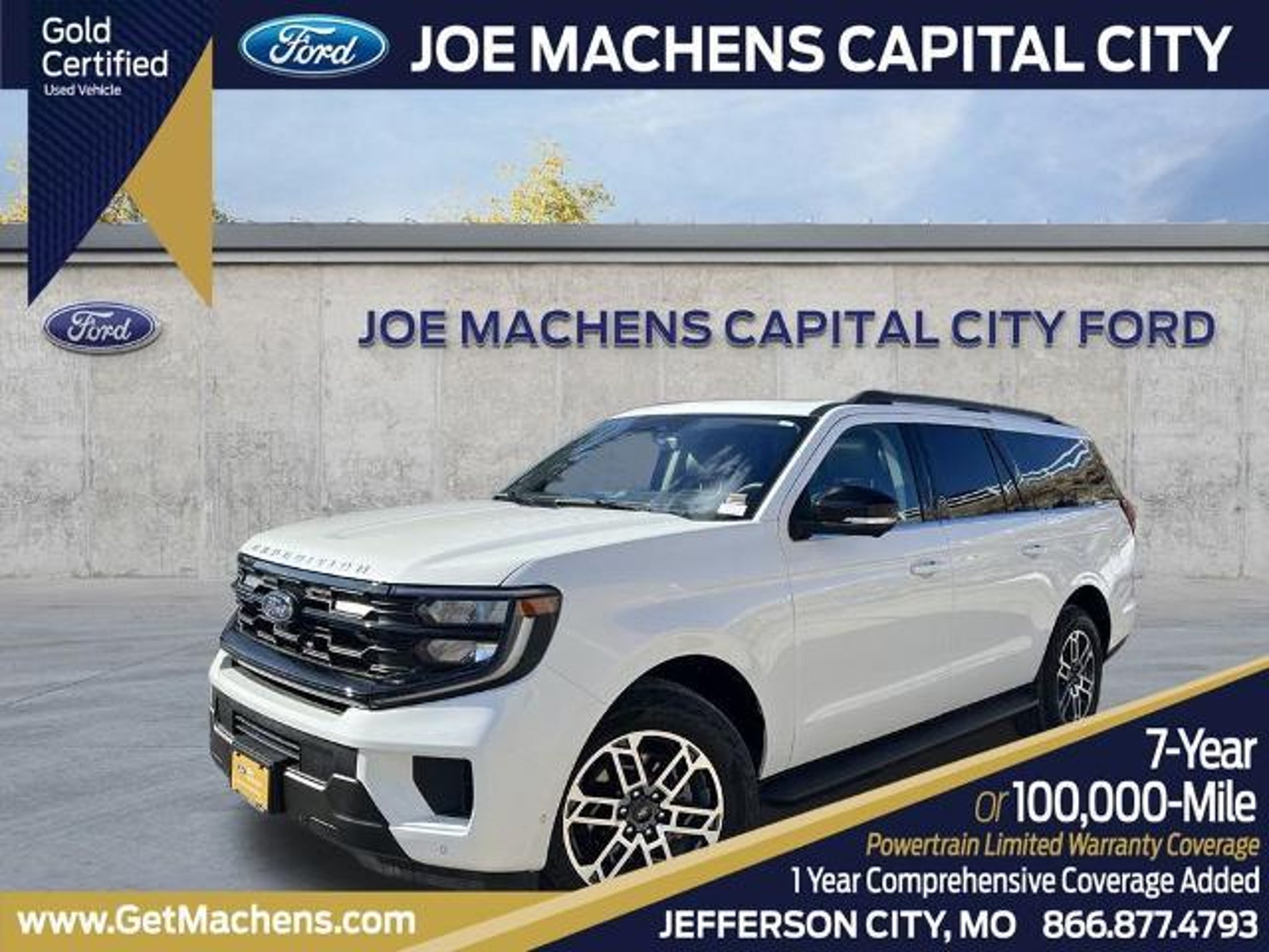 Act Fast - Our Vehicles DO NOT Last...With such high demand for our extensive selection showcased on all the major websites we are turning over our inventory within days of being listed. If you are serious about your next purchase, don't wait! Contact our sales team right now to secure your deal before it's gone! Contact Us: Call 573-994-2895 Today! CARFAX One-Owner. Clean CARFAX. Certified. Star White Metallic Tri-Coat 2025 Ford Expedition Max Active 4WD 10-Speed Automatic EcoBoost 3.5L V6 GTDi DOHC 24V Twin Turbocharged 110V/400W AC Power Outlet, 2nd Row Power-Folding Captain's Chairs, 360-Degree Zone Lighting, 4-Door Intelligent Access (Lock/Unlock), ActiveX Front Heated Captain's Chairs, Apple CarPlay/Android Auto, BlueCruise Equipped, Connectivity Package (One-Time Purchase), Equipment Group 202A High Package, Exterior Parking Camera Rear, Flex Powered Console, Ford Split Gate, Front dual zone A/C, Front Side Laminated Glass, Heated door mirrors, Heated Steering Wheel, Heavy-Duty Trailer Tow, Memory Driver Seat, Navigation System, Power door mirrors, Power driver seat, Power Panoramic Vista Roof w/Power Sunshade, Power Tilt/Telescopic Steering Wheel w/Memory, Power-Folding Sideview Mirrors w/Autofold, Radio: AM/FM Stereo w/MP3 Capable, Rain Sensing Wipers, Rear air conditioning, Rear window defroster, Reclining 3rd row seat, SecuriCode Keyless Entry Keypad, SiriusXM w/360L, Universal Garage Door Opener, USB Ports, Wheels: 20 Carbonized Gray Bright Machined Aluminum, Wireless Charging Pad. Odometer is 10596 miles below market average! Ford Gold Certified Details: * Transferable Warranty * Powertrain Limited Warranty: 84 Month/100,000 Mile (whichever comes first) from original in-service date * and 22,000 FordPass Rewards Points to use toward first two maintenance visits * Roadside Assistance * Warranty Deductible: $100 * Limited Warranty: 12 Month/12,000 Mile (whichever comes first) after new car warranty expires or from certified purchase date * 172 Point Inspection * Vehicle History Whether you're from Jefferson City, Columbia, Fulton, Eldon, Rolla, Sullivan or The Lake of the Ozarks and anywhere in between, you can rest assured that when you shop for your next New or Pre-Owned car, truck or SUV we have you covered! With over 1800 used and 600 New Fords in stock we will find what you are looking for! Qualifying for a loan or lease couldn't be easier with our on-site financial enthusiasts at your back. Our team is well-versed in everything automotive and utilizes the latest Fo