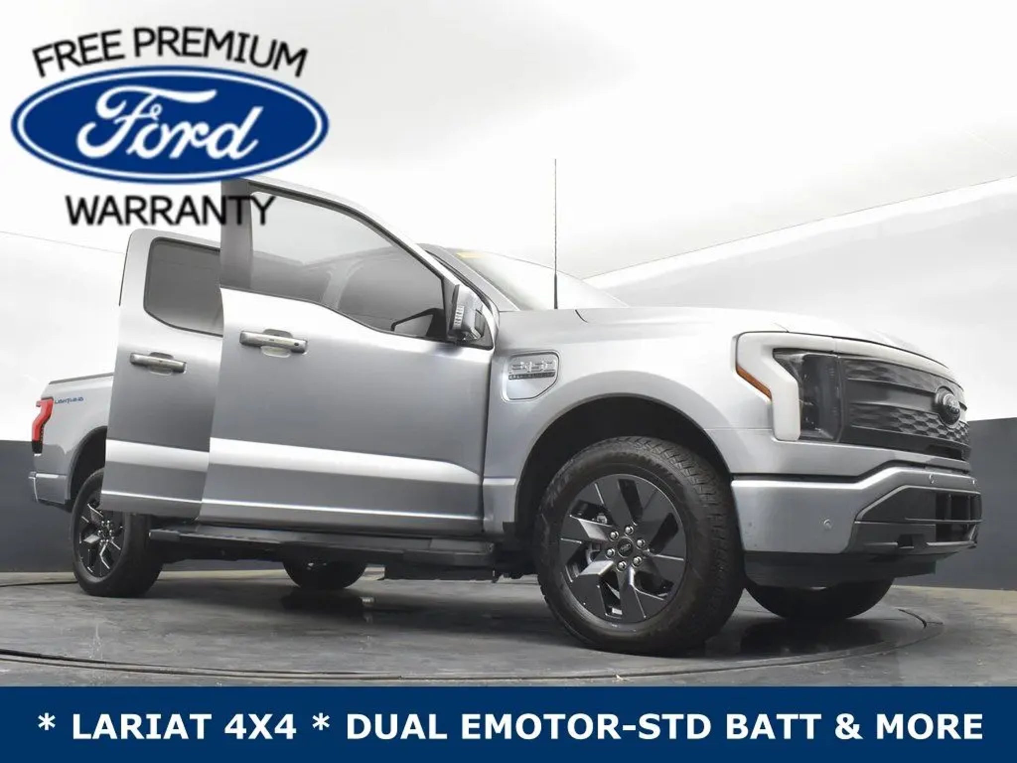 **FREE FORD FACTORY PREMIUM WARRANTY (12 MNTHS OR 12K MILES)**, **360 CAMERA**, **ADAPTIVE CRUISE CONTROL**, **NAVIGATION/ CONNECTED NAV**, **BLIS (BLIND SPOT INFO SYSTEM)**, **20' WHEELS**, **DUAL ZONE TEMP CONTROL**, **HEATED & COOLED LEATHER SEATS**, **DUAL POWER SEATS**, **BANG & OLUFSEN SOUND SYSTEM**, **SYNC4**, **FORDPASS CONNECT 4 G WIFI MODE**, **SPRAY-IN BEDLINER**, **CL IV TRLR HITCH**, **MAX TOW PKG**, **TRAILER TOW TECHNOLOGY PACKAGE**, INTEGRATED TRLR BRAKE CONTROLLER**, **BACKUP CAMERA**, FWD & REV SENSING**, **LED BOX LIGHTING, **PRE-COLLISION ASSIST w. AEB**, **POWER TAILGATE**, **INTERIOR WORK SURFACE**, **POST-COLLISION BRAKING**, **LANE KEEPING SYS**, **TRITON PROTECT CAR CARE SYSTEM**, **TRITON PROTECT SILENT SECURITY THEFT DETERRENT SYSTEM**, **FULLY INSPECTED BY CERTIFIED TECHNICIANS**, ** DUAL EMOTOR-STD RANGE BATTERY **, ** LED PROJECTOR w. DYNAMIC BENDING HEADLIGHTS **, 8 Speakers, Auto High-beam Headlights, Delay-off headlights, Emergency communication system: SYNC 4 911 Assist, Equipment Group 510A Standard, Fully automatic headlights, Low Tire Pressure Warning, Max Trailer Tow Package, Memory seat, Navigation System, On-Board Scales & Smart Hitch Removal, Pedal memory, Pro Trailer Backup Assist, Pro Trailer Hitch Assist, Radio: B&O Sound System by Bang & Olufsen, Speed Control, Telescoping Steering Wheel, Tilt Steering Wheel, Tow Technology Package, Trailer Brake Controller.