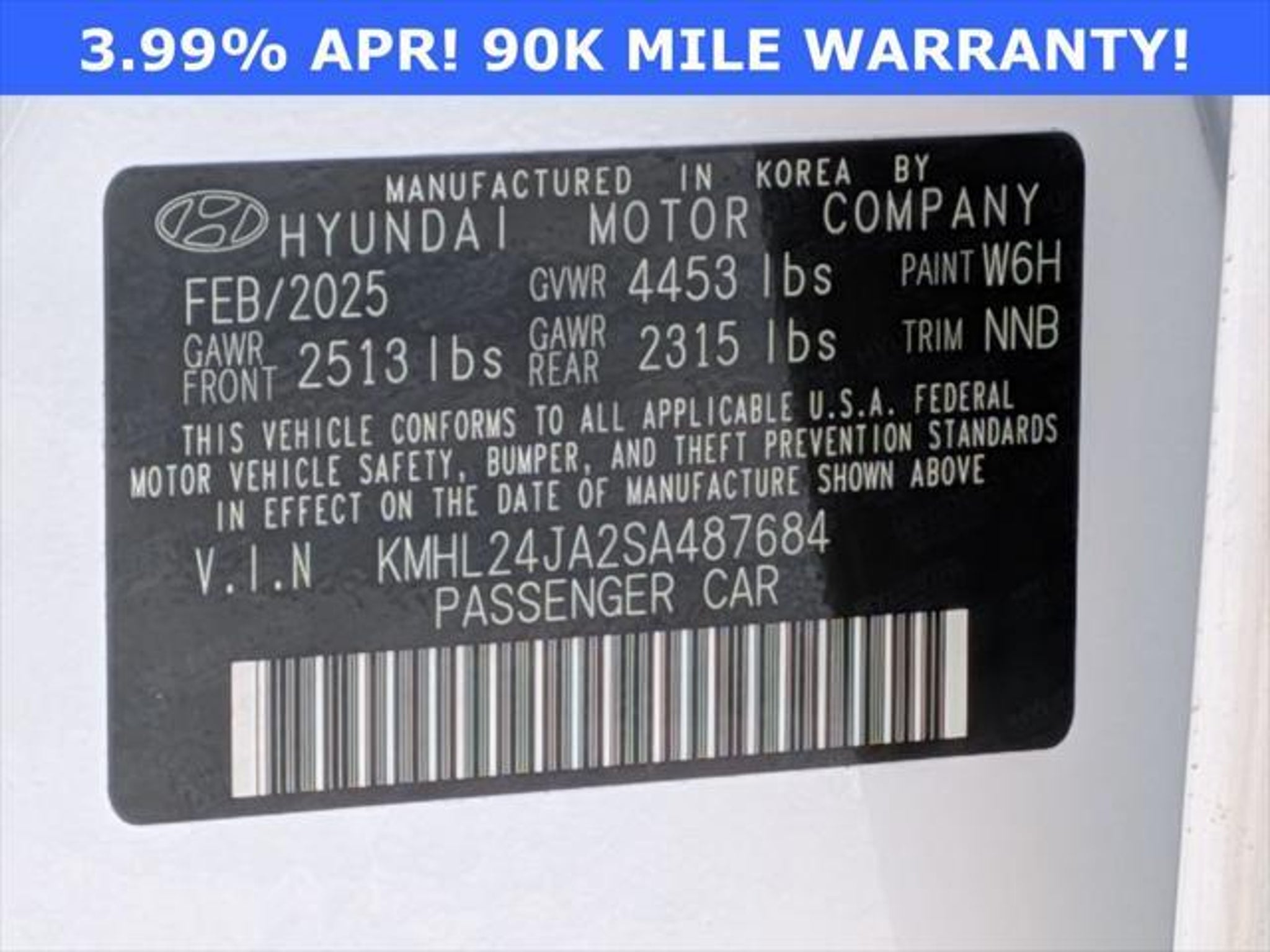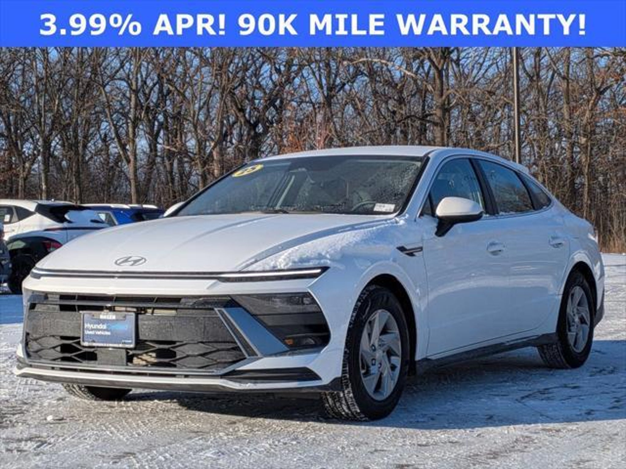 ***SPECIAL RATE*** ***90K MILE WARRANTY*** ***NEW PRICE*** Odometer is 1232 miles below market average! Serenity White 2025 Hyundai Sonata SE SE FWD 8-Speed Automatic I4 Black Cloth Interior 28/38 City/Highway MPG Certification Program Details: Hyundai Certified Used Vehicles Details: * Powertrain Limited Warranty: 120 Month/100,000 Mile (whichever comes first) from original in-service date * 173 Point Inspection * Vehicle History * Includes 10-year/Unlimited Mileage Roadside Assistance with Rental Car and Trip Interruption Reimbursement; Please See Dealers for Specific Vehicle Eligibility Requirements. 10-Year/100,000 Mile Hybrid/EV Battery Warranty. 3-Months SiriusXM Trial Subscription. Complimentary 1 Year (Connected Care & Remote Pkgs). * Warranty Deductible: $50 * Limited Warranty: 60 Month/60,000 Mile (whichever comes first) from original in-service date * Roadside Assistance * Hyundai Certification not included in price