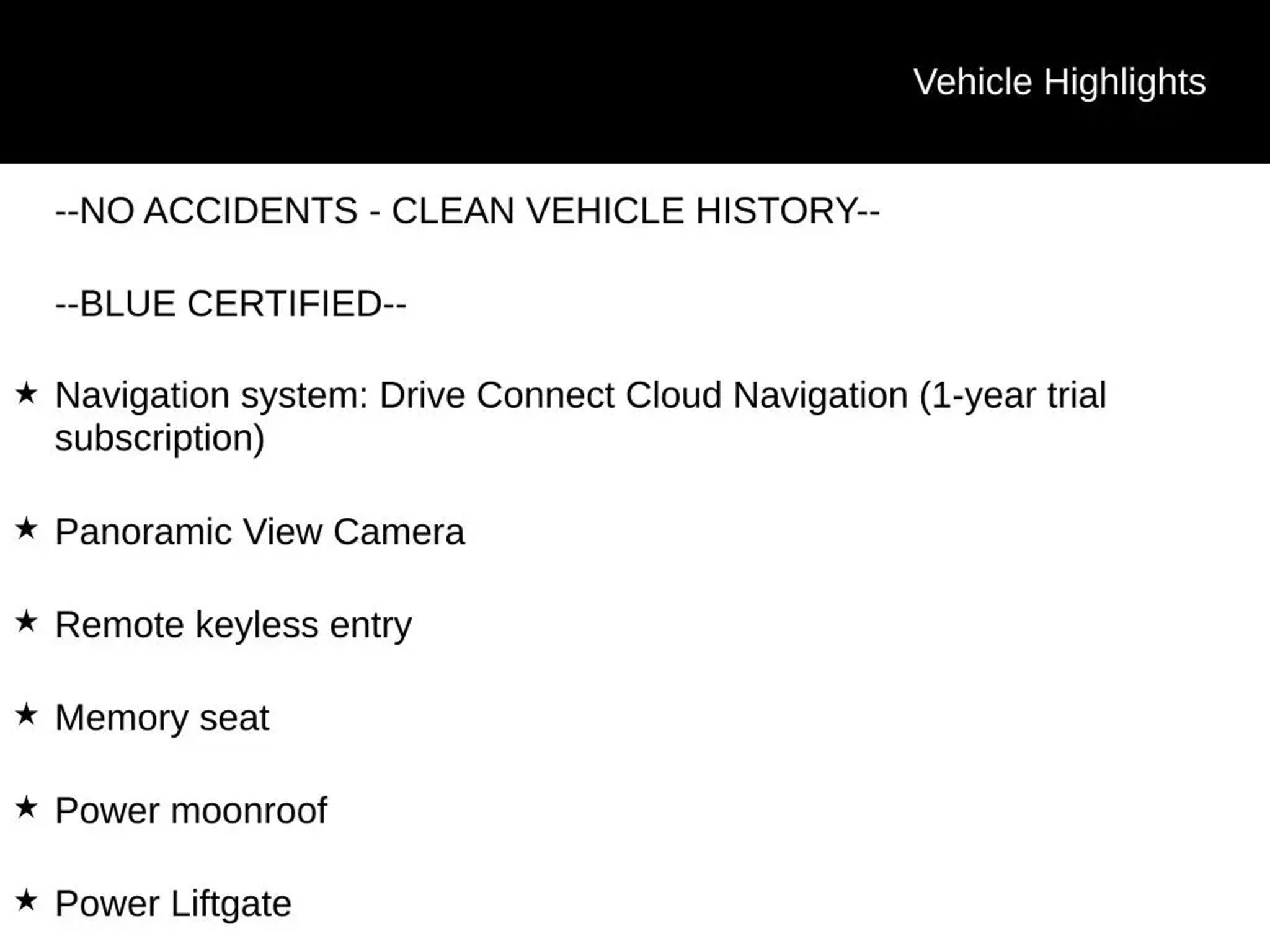 NO ACCIDENTS - CLEAN VEHICLE HISTORY--, --BLUE CERTIFIED--, Apple CarPlay/Android Auto, Exterior Parking Camera Rear, Heated Front Bucket Seats, Heated steering wheel, Leather Seat Trim, Memory seat, Navigation system: Drive Connect Cloud Navigation (1-year trial subscription), Panoramic View Camera, Panoramic View Monitor, Power Liftgate, Power moonroof, Remote keyless entry, Ventilated front seats, Wheels: 20 Chrome Aluminum. Certified. Certification Program Details: Ford Blue Advantage: Blue Certified * 139 Point Inspection * Transferable Warranty * Vehicle History * Warranty Deductible: $100 * Roadside Assistance * Limited Warranty: 3 Month/4,000 Mile (whichever comes first) after new car warranty expires or from certified purchase date * and 11,000 FordPass Rewards Points to use toward first maintenance visit 2024 Toyota Highlander Hybrid Limited Midnight Black Metallic AWD eCVT 2.5L I4 PDI Hybrid DOHC 16V LEV3-SULEV30 35/34 City/Highway MPG WHY BUY FROM US: Freeway Ford in MN has a strong and committed sales staff with many years of experience satisfying our customers needs. Freeway Ford is located in the heart of Bloomington, MN. We are about 3 miles from the Mall Of America. We have been providing Quality Care in our sales and servicing of Ford cars and trucks for over 40 years. Please confirm the accuracy of the included equipment by calling us prior to purchase.