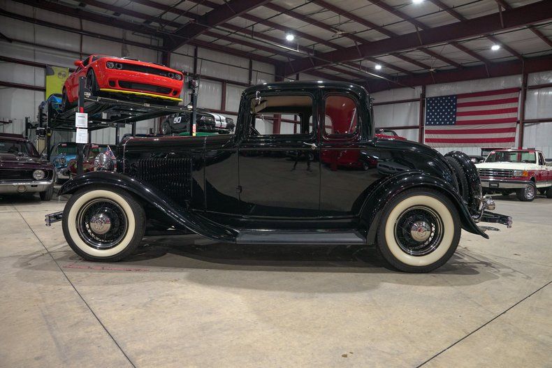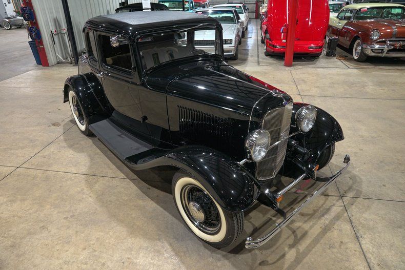 GR Auto Gallery is excited to present this beautifully styled 1932 Ford Model A Coupe finished in classic black with just the right amount of chrome to highlight its timeless lines. Chrome bumpers, black wire wheels with chrome hub caps, and wide whitewall tires give this coupe an unmistakable pre-war hot rod presence. A full mounted spare rounds out the exterior, reinforcing the authentic early Ford look that has made these cars so collectible and admired for generations.