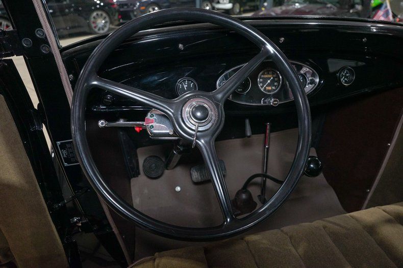 Inside, the brown cloth interior provides a warm contrast to the black exterior. Crank windows and simple controls keep the experience pure and analog, just as Henry Ford intended. The cabin feels honest and inviting, offering just enough comfort while maintaining the charm and simplicity that define cars of this era.