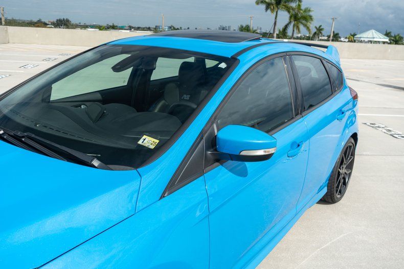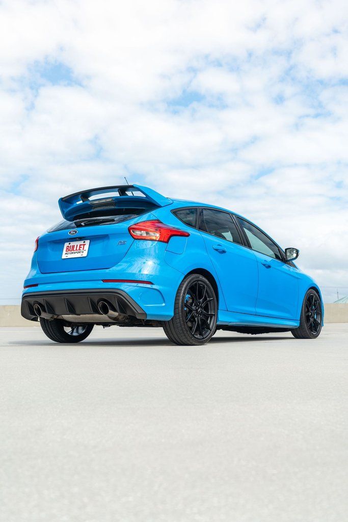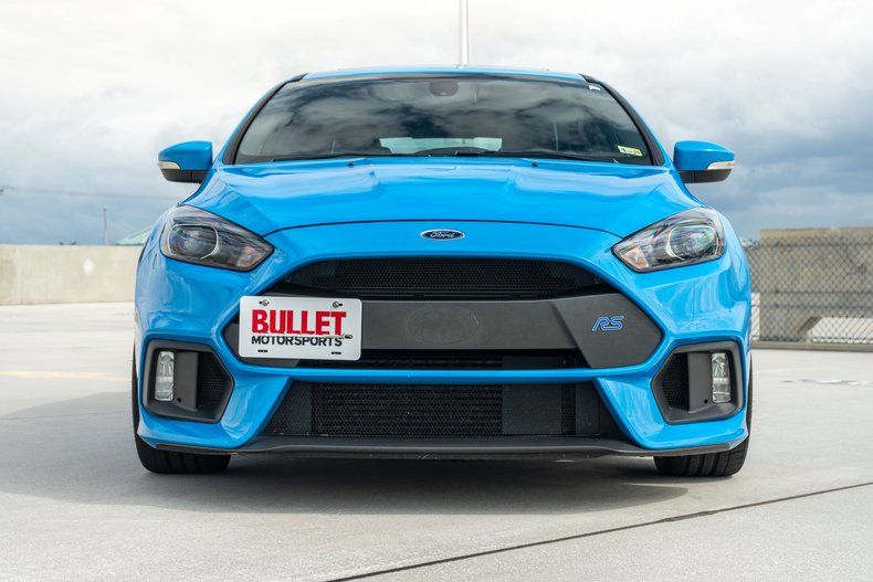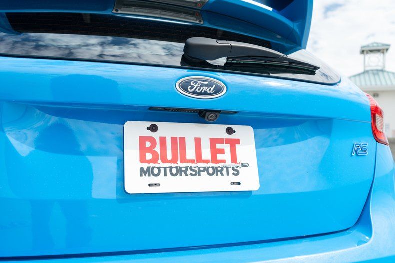 This 2016 Ford Focus RS was purchased new by the seller at Upper Marlboro Ford in Maryland, and it now has 50k miles. The car is finished Nitrous Blue over a black interior and is powered by a turbocharged 2.3-liter inline-four paired with a six-speed manual transaxle and all-wheel drive. Features include a glass sunroof, forged 19 alloy wheels, Brembo front calipers, bi-xenon headlights, a hatch-mounted wing, a driver-selectable sport suspension, dual-zone climate control, a Sony audio system, a rear-view camera, launch control, and a Mountune cold-air intake system. Additional equipment includes bi-xenon headlights, integrated fog lights, a power glass sunroof, power-adjustable mirrors with integrated turn signals, and dual exhaust outlets.