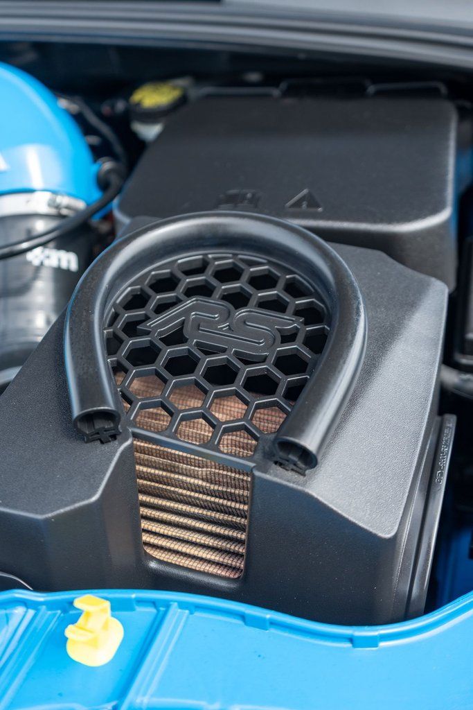 The turbocharged 2.3-liter inline-four has been fitted with a Mountune cold-air intake system. The head gasket recall was completed in 2018, and an oil change was performed in preparation for the sale. Power is delivered to all four wheels through a six-speed manual transaxle and a torque-vectoring all-wheel-drive system.