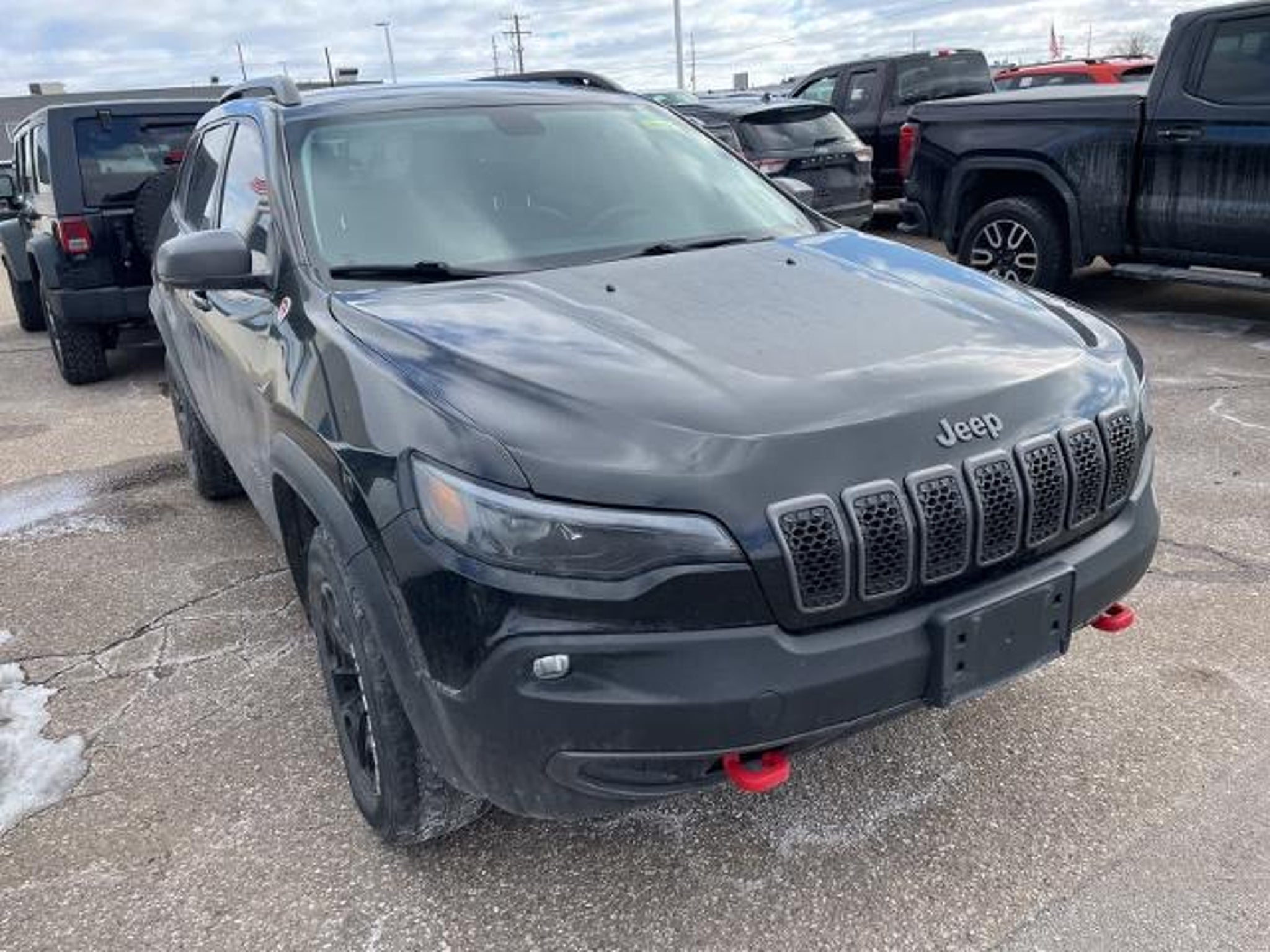 Diamond Black Crystal Pearlcoat Clean CARFAX. 18/24 City/Highway MPG 2021 Jeep Cherokee Trailhawk 4WD 9-Speed Automatic 3.2L V6WHOLESALE PRICING FOR EVERYONE! Fully Safety Inspected Fresh Oil & Filter Many vehicles qualify for extended service contracts for added peace of mind Hurry???our inventory moves fast! Visit or call today before it???s gone. Price does not include licensing costs, registration fees, taxes, $999 Comprehensive Protection, and a $280 dealer doc fee, to be paid by the consumer.