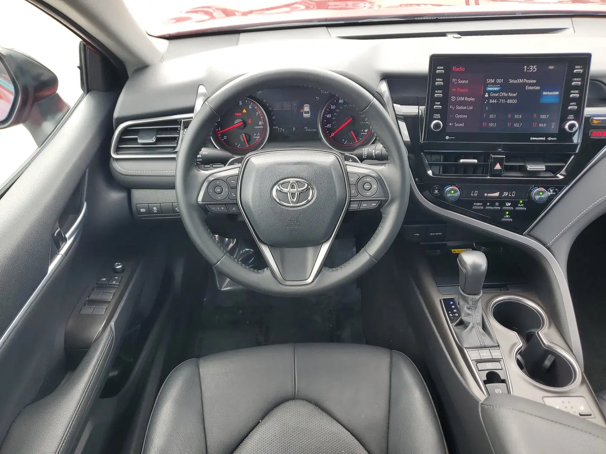 XSE LOADED! GREAT DEAL! LEATHER,PANORAMIC ROOF,REAR VIEW CAMERA,BLIND SPOT MONITOR,LANE DEPARTURE WARNING,LANE KEEPING ASSIST,FRONT COLLISION MITIGATION,POWER SEAT ADJUSTABLE LUMBAR,HEATED SEATS,TOUCH SCREEN,KEYLESS ENTRY,KEYLESS START,PREMIUM WHEELS,REAR SPOILER,CRUISE CONTROL,AUDIO STEERING WHEELS CONTROL,AM/FM/HD AUDIO SYSTEM,BLUETOOTH CONNECTION,USB PORT,DUAL CLIMATE CONTROL,POWER OUTLET,POWER DOORS AND WINDOWS,BRAKE ASSIST AND MANY MORE OPTIONS!Recent Arrival!Clean CARFAX.Camry XSE, 4D Sedan, 2.5L I4 DOHC 16V, 8-Speed Automatic, FWD, Supersonic Red/Midnight Black Metallic, Black w/Perforated Leather Seat Trim.2022 Toyota Camry XSE Supersonic Red/Midnight Black Metallic FWD 8-Speed Automatic 2.5L I4 DOHC 16V