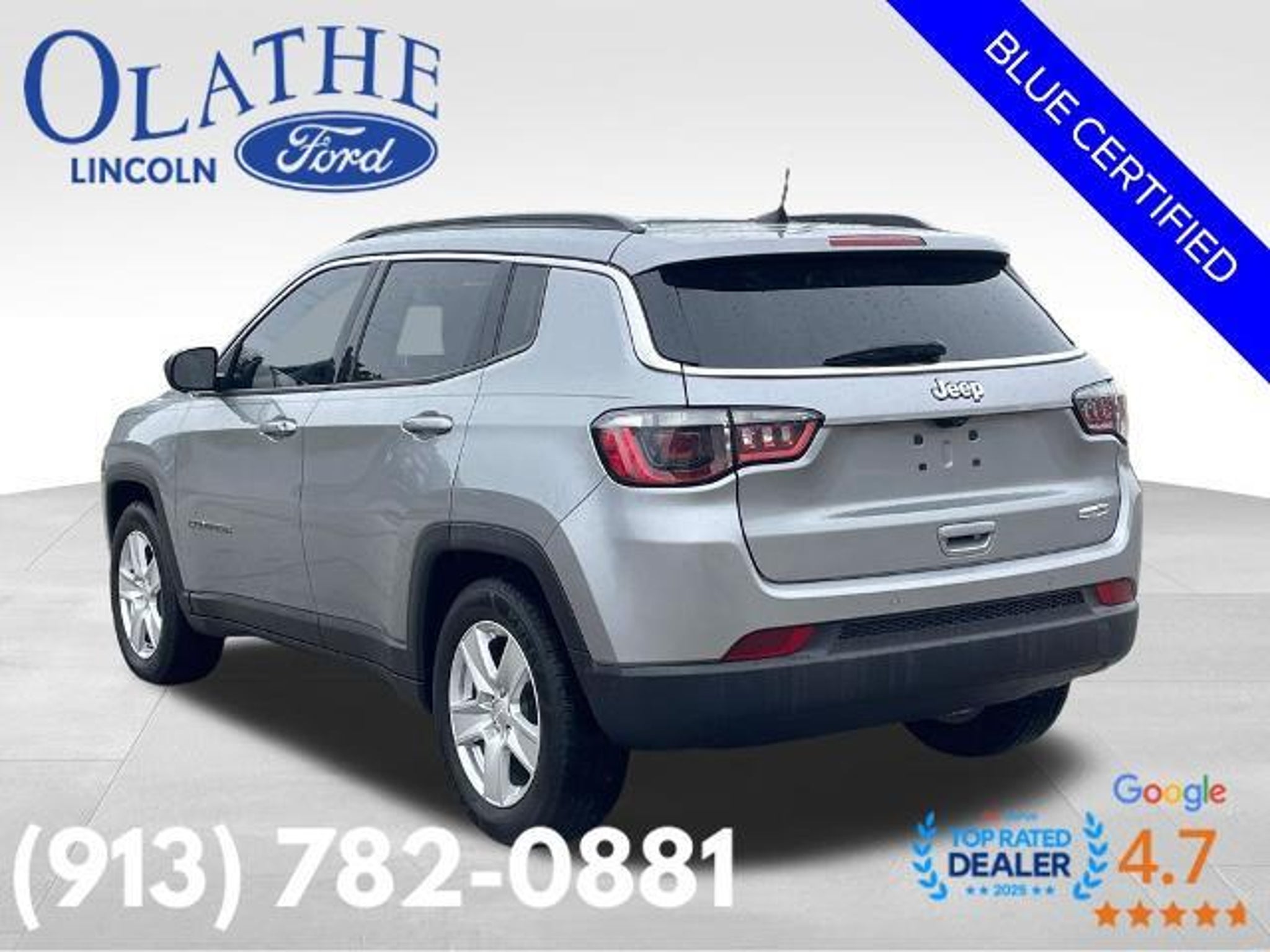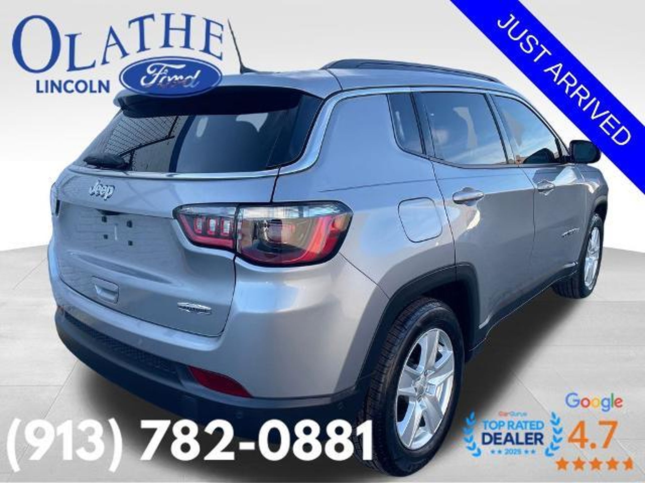 2022 Jeep Compass Latitude Billet Silver Metallic Clearcoat Certified. FWD **APPLE CARPLAY/ANDROID AUTO**, **CERTIFIED PRE-OWNED**, 115V Auxiliary Power Outlet, 2nd Row USB Type A/C Charge Only, 360 Surround View Camera System, Adaptive Cruise Control w/Stop & Go, Air Conditioning ATC w/Dual Zone Control, All-Season Floor Mats, Auto-Dimming Rear-View Mirror, Convenience Group, Driver Assistance Group, Foot Activated Open 'N Go Liftgate, Heated Front Seats, Heated Steering Wheel, Humidity Sensor, Leather Wrapped Steering Wheel, P&P Park & Unpark Assist System, ParkSense Fr/Rr Park Assist System, Power Adjust 8-Way Driver Seat, Power Liftgate, Premium LED Fog Lamps, Quick Order Package 28J, Rain Sensitive/Intermittent Wipers, Remote Start System, Reversible Carpet/Vinyl Cargo Mat, Security Alarm, Universal Garage Door Opener, Vehicle Information Center, Windshield Wiper De-Icer, Wireless Charging Pad, 17 x 7 Painted Aluminum Wheels, 3.502 Axle Ratio, 4-Wheel Disc Brakes, 6 Speakers, ABS brakes, Air Conditioning, Alloy wheels, AM/FM radio: SiriusXM, Anti-whiplash front head restraints, Auto High-beam Headlights, Brake assist, Bumpers: body-color, Compass, Delay-off headlights, Driver door bin, Driver vanity mirror, Dual front impact airbags, Dual front side impact airbags, Electronic Stability Control, Emergency communication system: SiriusXM Guardian, Four wheel independent suspension, Front anti-roll bar, Front Bucket Seats, Front Center Armrest w/Storage, Front fog lights, Front reading lights, Fully automatic headlights, Heated door mirrors, Illuminated entry, Knee airbag, Leather Shift Knob, Low tire pressure warning, Occupant sensing airbag, Outside temperature display, Overhead airbag, Overhead console, Panic alarm, ParkView Rear Back-Up Camera, Passenger door bin, Passenger vanity mirror, Power door mirrors, Power steering, Power windows, Premium Cloth/Vinyl Bucket Seats, Radio: Uconnect 5 w/10.1 Display, Radio: Uconnect 5 w/8.4 Display (DISC), Rear anti-roll bar, Rear seat center armrest, Rear window defroster, Rear window wiper, Remote keyless entry, Roof rack: rails only, Speed control, Split folding rear seat, Spoiler, Steering wheel mounted audio controls, Tachometer, Telescoping steering wheel, Tilt steering wheel, Traction control, Trip computer, Variably intermittent wipers, **REMOTE KEYLESS ENTRY W/ KEYPAD**, 115V Auxiliary Power Outlet, 2nd Row USB Type A/C Charge Only, 360 Surround View Camera System, Adaptive Cruise Control w/Stop & Go, Air Conditioning ATC w/Dual Zone Control, All-Season