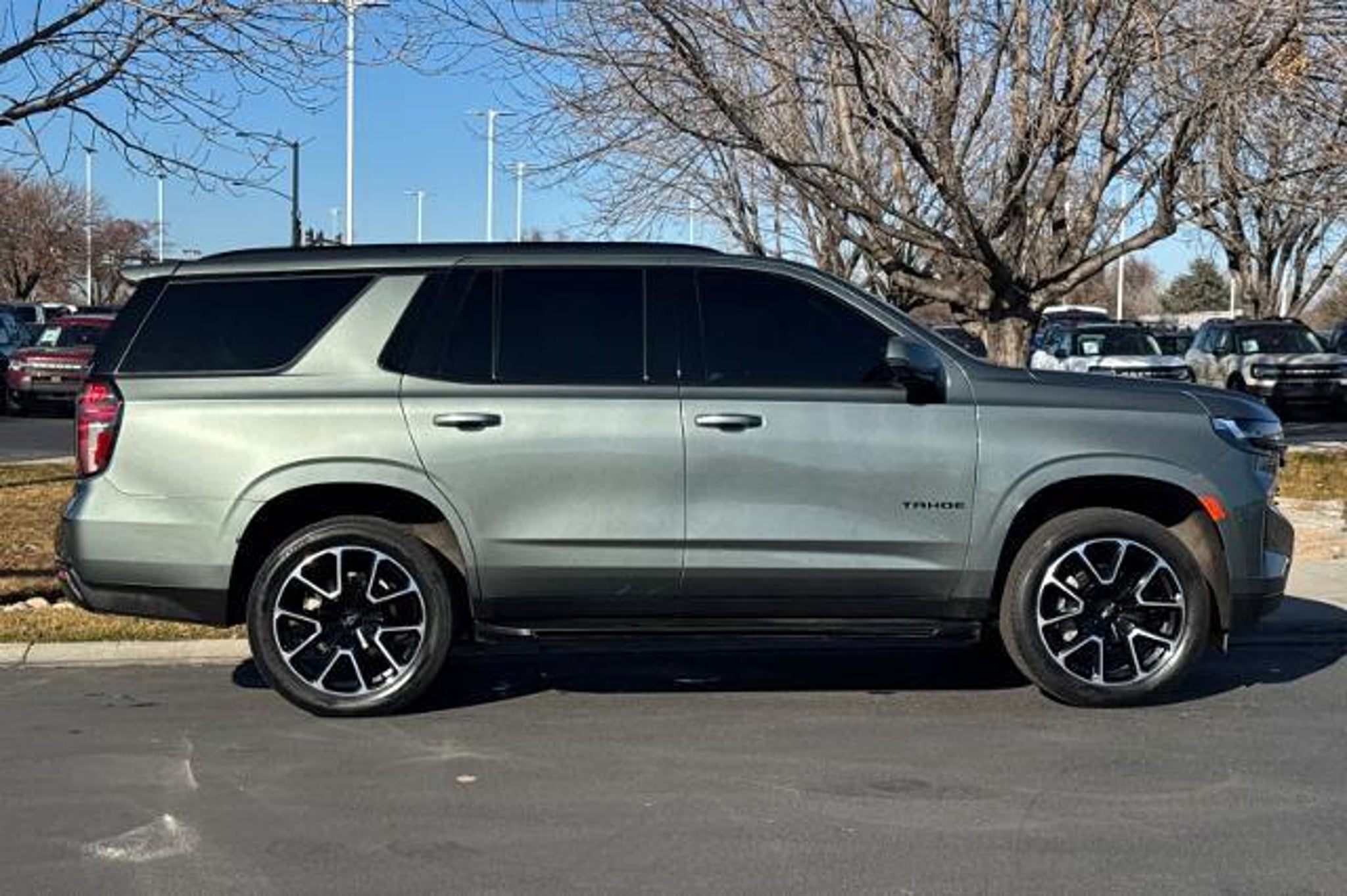 3rd Row Seat, Heated Leather Seats, Sunroof, Navigation, Rear Air, Power Liftgate, 4x4, Alloy Wheels, Trailer Hitch, LUXURY PACKAGE, DRIVER ALERT PACKAGE, TRANSMISSION, 10-SPEED AUTOMATIC, ENGINE, 5.3L ECOTEC3 V8 READ MORE! KEY FEATURES INCLUDE Leather Seats, Third Row Seat, Navigation, 4x4, Power Liftgate, Rear Air, Running Boards, Premium Sound System, Satellite Radio, Onboard Communications System, Trailer Hitch, Aluminum Wheels, Remote Engine Start, Dual Zone A/C, WiFi Hotspot. Remote Trunk Release, Privacy Glass, Keyless Entry, Steering Wheel Controls, Child Safety Locks. OPTION PACKAGES LUXURY PACKAGE includes (WPD) Driver Alert Package content, (UV2) HD Surround Vision, (UKK) Rear Pedestrian Alert, (A45) memory settings, (DXR) outside heated power-adjustable, power-folding, body-color mirrors with driver-side auto-dimming and integrated turn signal indicators, (N38) power tilt and telescopic steering column, (KI3) heated steering wheel, (KA6) second row outboard heated seats, (ATT) second row power 60/40 split-folding bench seats and (AS8) third row power 60/40 split-folding bench seats Also includes (KSG) Adaptive Cruise Control and (UGN) Enhanced Automatic Emergency Braking. SUNROOF, POWER PANORAMIC, DUAL-PANE, TILT-SLIDING with express-open and close and power sunshade, AUDIO SYSTEM, CHEVROLET INFOTAINMENT 3 PREMIUM SYSTEM WITH GOOGLE BUILT-IN 10.2 diagonal HD color touchscreen, includes multi-touch display, AM/FM stereo, Bluetooth streaming audio for music and most phones; featuring wireless Android Auto and Apple CarPlay capability for compatible phones, advanced voice recognition, in-vehicle apps, personalized profiles for infotainment and vehicle settings (STD), STEERING WHEEL, HEATED, ENGINE, 5.3L ECOTEC3 V8 with Dynamic Fuel Management, Direct Injection and Variable Valve Timing, includes aluminum block construction (355 hp [265 kW] @ 5600 rpm, 383 lb-ft of torque [518 Nm] @ 4100 rpm) (STD), TRANSMISSION, 10-SPEED AUTOMATIC electronically controlled with overdrive, includes Traction Select System including tow/haul (Standard with (L84) 5.3L EcoTec3 V8 engine only or (L87) 6.2L EcoTec3 V8 engine only.) (STD), DRIVER ALERT PACKAGE includes (UKC) Lane Change Alert with Side Blind Zone Alert and (UFG) Rear Cross Traffic Alert. 2023 Chevrolet Tahoe with Silver Sage Metallic exterior and Jet Black/Victory Red interior features a 8 Cylinder Engine with 355 HP at 5600 RPM*. BUY FROM AN AWARD WINNING DEALER Customers purchase from Lithia Ford Lincoln of Boise for our outstanding customer se