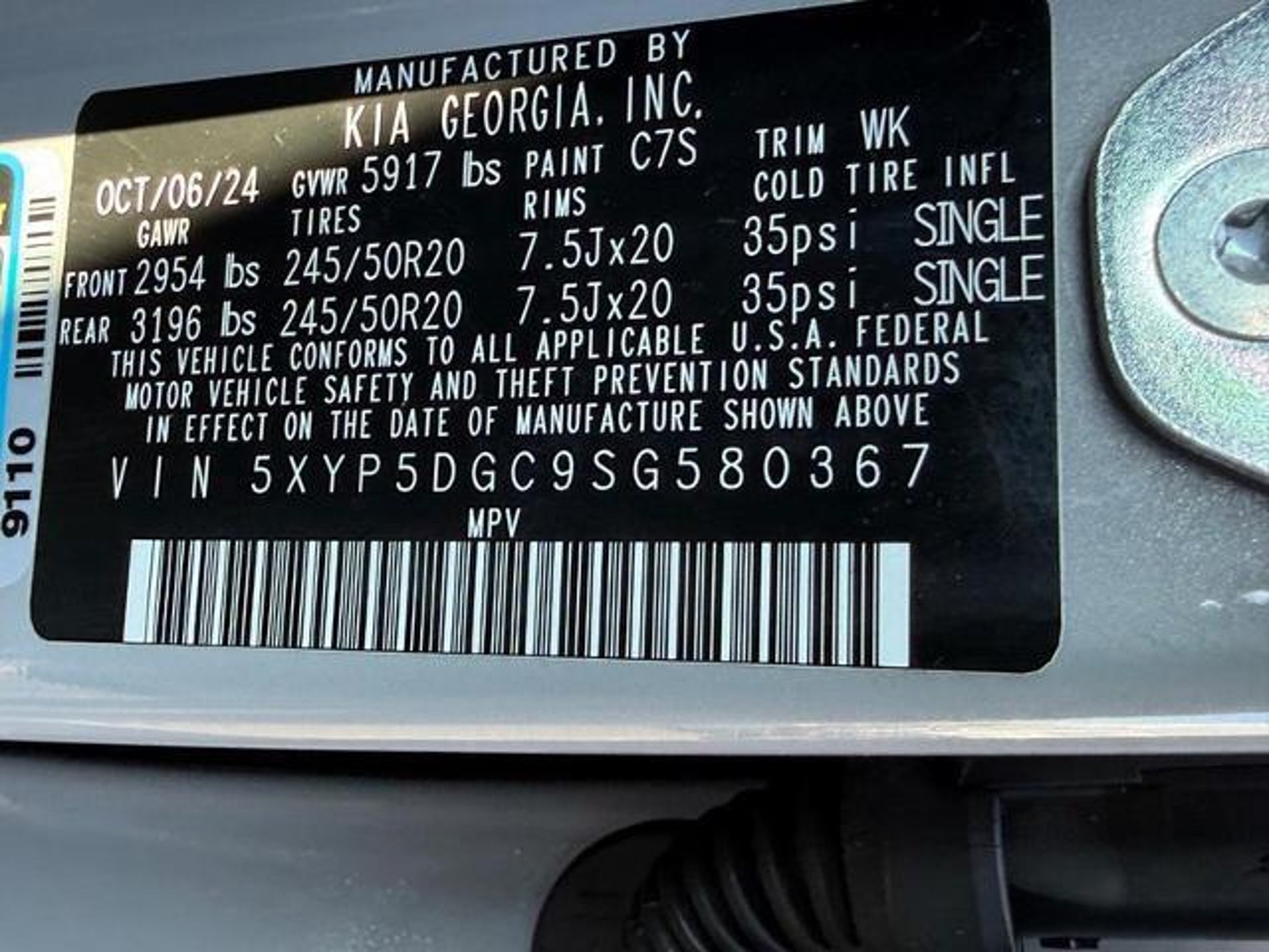 VIN 5XYP5DGC9SG580367