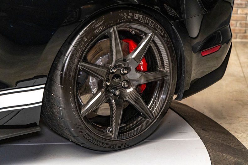 This 2020 Shelby GT500 is what the enthusiast community refers to as a "Golden Ticket" car, a nickname earned by the rare and expensive combination of the Carbon Fiber Track Package and the factory Painted Over-the-Top Stripes. Finding one with both options is difficult, but finding one in this condition with just 1,600 miles is nearly impossible. This is a wrapper-fresh example that has been tucked away and preserved rather than battered at the track. It features the $18,500 track pack which gives you the exposed carbon fiber wheels and the massive GT4 rear wing, along with the $10,000 painted stripe option that is buried under the clear coat for a smooth finish you can't feel with your fingernail. The car is effectively brand new, sitting exactly as it left the factory with no modifications or stories. It is a proper investment-grade Shelby that checks every single box for the serious collector.