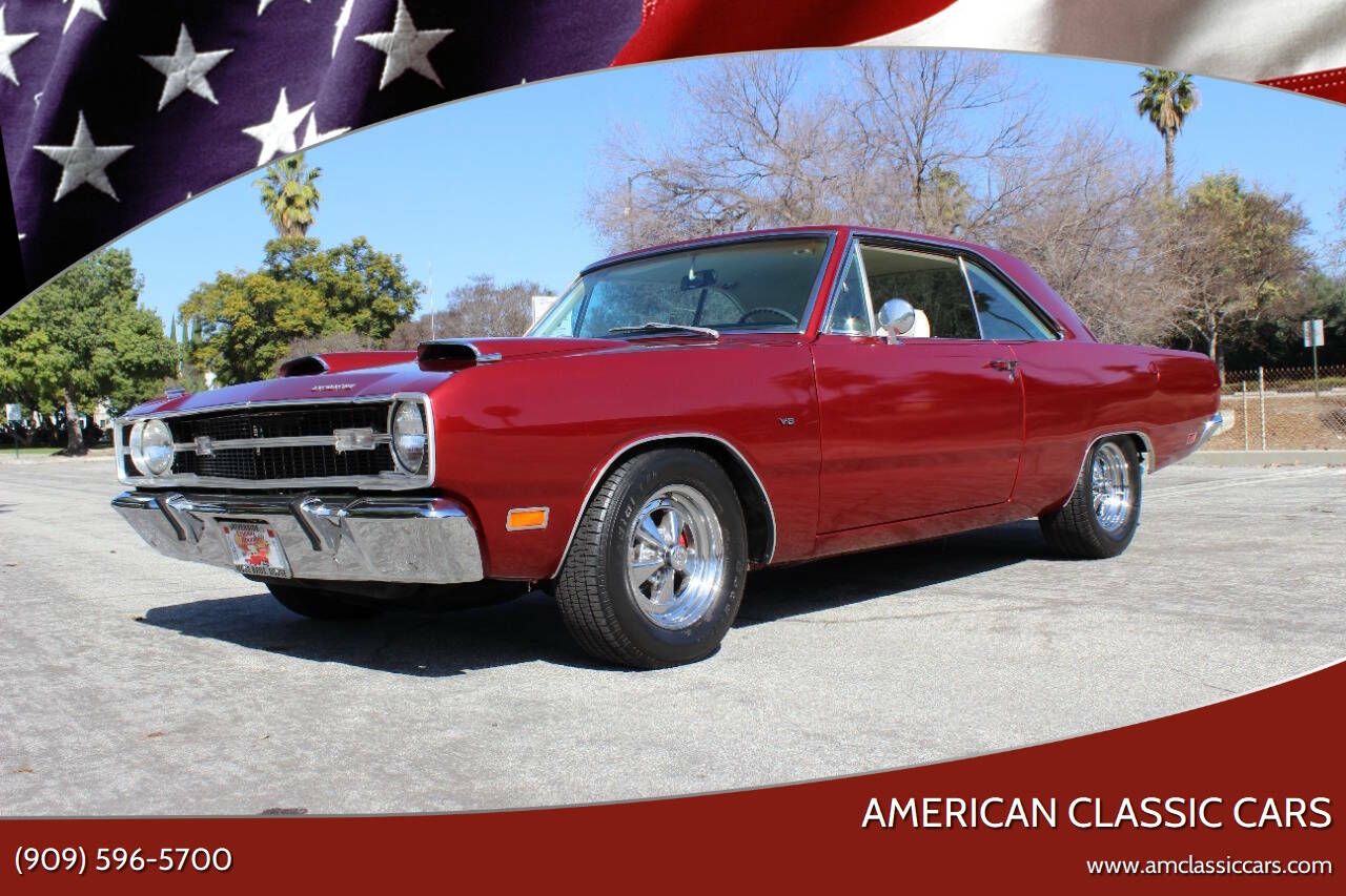 1969 DODGE DART FOURTH GENERATION This 1969 Dodge Dart has been a Southern California car with only two (2) owners. Copy of original window sticker and original purchase order is included in an extensive collection of almost every receipt for maintenance and restoration since new. The 1969, being the 4th generation Dart is powered by its original 273ci 2bbl with TorqueFlite automatic transmission. Factory air conditioning, original power steering, tinted glass, rear axle 2.7172, original AM/FM radio. The Dart was originally painted green with a White Hat Special with white vinyl top. With the extensive restoration in 2012/2013, the vinyl top was removed and the entire car was repainted in the brilliant 2000/2001 Prowler Deep Candy Red as it shows today. Upgrades include SSBC front disc brakes conversion with drilled/slotted rotors and dual Flowmaster exhaust. With the extensive documents, original window sticker copy and original purchase order, only two owners, meticulous restoration with upgrades, this 1969 Dart is a cream puff that will give you a lot of fun miles. *If you are viewing this on Facebook, be sure to visit our website to view all photos. (www.amclassiccars.com)* GIVE US A CALL @ 909-596-5700 WITH ANY QUESTIONS THAT YOU MAY HAVE. OUR BUSINESS HOURS: MONDAY-THURSDAY 9AM-4PM