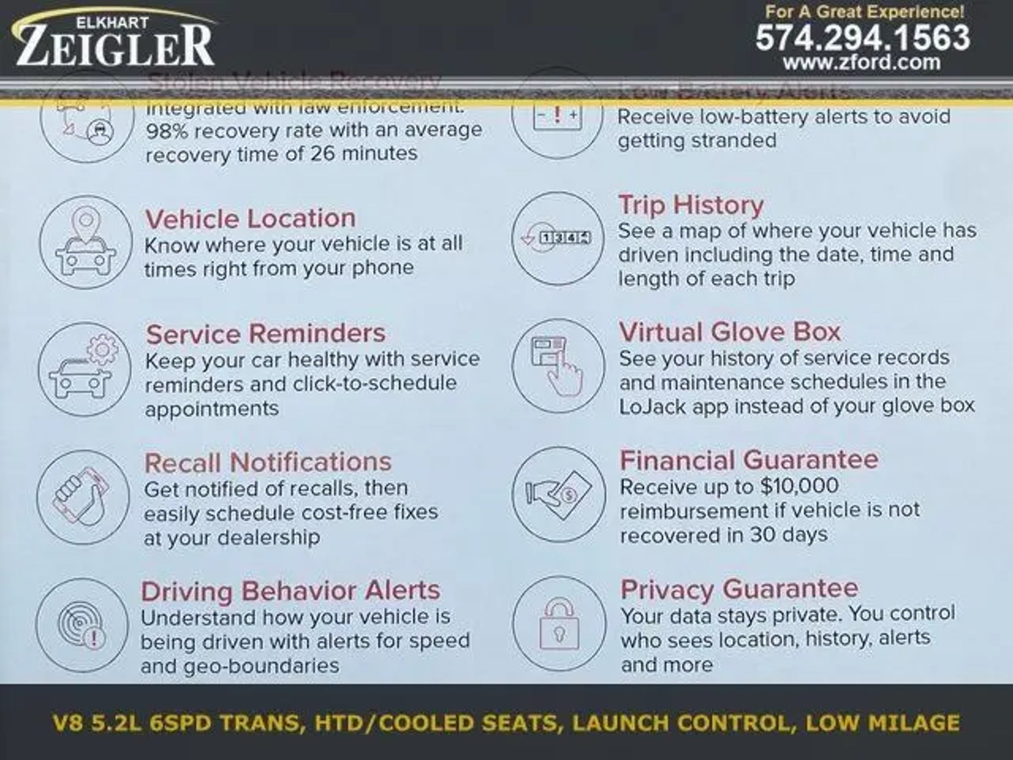 Lightning Blue 2017 Ford Mustang Shelby GT350 At Zeigler Ford Lincoln of Elkhart, Home of the BEST PRICE GUARANTEE & GUARANTEED FINANCING, we take pride in treating our customers like family, ensuring that your experience is one that you will NEVER forget. Every vehicle has been through a 172-point safety inspection completed by a certified technician and fully detailed. Pre-Owned Ford Vehicles 2018-2017-2016-2015-2014-2013-2012-2011-2010-2009-2008-2007-2006 Ford Escapes, Fusions, Focus, Edges, Flex, F- Series, Heavy Duty Diesel Trucks and more For sale. Take advantage of our VIP internet experience by calling 574-970-5225 to schedule a test drive. Read our customer reviews at www.zeiglerfordelkhart.com/reviews or visit us on the web at www.zford.com, or stop by today, located at 2525 Bypass Rd. Elkhart, IN 46514. We are proud to service customers saving YOU time & money on ANY New or Pre-owned vehicle! Credit Union Financing, Special LOW Interest Rates available. Poor Credit, No Credit, FIRST TIME BUYERS!! Past Bancruptcy... All are welcome to apply for financing TODAY!! See dealer for complete details, dealer is not responsible for pricing errors, all prices, plus tax, title, and plate fees. Serving Michigan and all of our surrounding cities like Goshen, South Bend, Granger, Osceola, Mishawaka, Warsaw, Plymouth, Niles, Union, Edwardsburg, Bristol, Shipshewana, & including the entire Michiana area, and anywhere in the great state of Indiana. Some of our used vehicles may be subject to unrepaired safety recalls. Check for a vehicle's unrepaired recalls by VIN at http://vinrcl.safercar.gov/vin/. Zeigler Ford- FOR A GREAT EXPERIENCE.