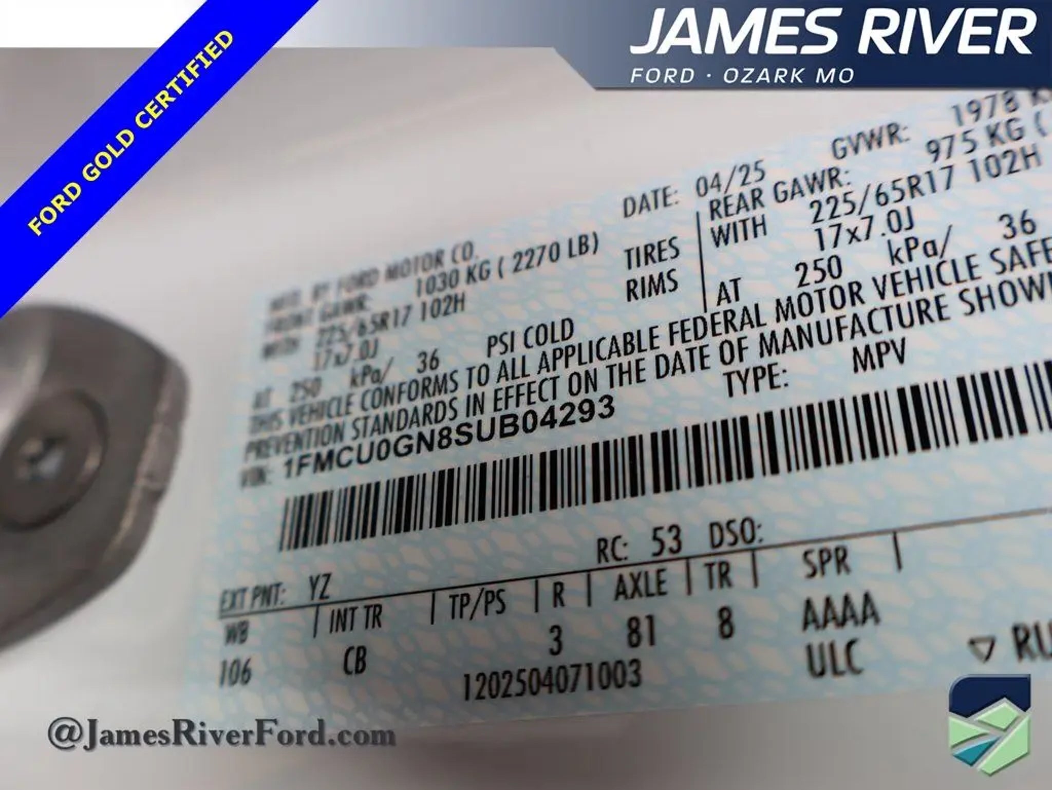 @JamesRiverFORD our local, family-owned dealership is focused on making your online experience the best yet! Just off HWY 65 and HWY CC, this 2025 Ford Escape Active FWD is painted in Oxford White and is powered by a 1.5L EcoBoost w/Start-Stop. This Escape is built with the following packages: Equipment Group 200A Cold Weather Package In addition, below are upgrades and added options: Cold Weather Package Mini Spare Wheel and Tire Heated Steering Wheel Heated Front Row Seats Remote Start System BLIS with Cross Traffic Alert Dual Zone Automatic Climate Control CARFAX One Owner and 10938 miles below market average Other premium features includeABS brakes, Alloy wheels, Cold Weather Package, Compass, Electronic Stability Control, Equipment Group 200A, Front dual zone A/C, Heated Front Row Seats, Heated Sideview Mirrors, Heated Steering Wheel, Illuminated entry, Low tire pressure warning, Remote keyless entry, Remote Starter System, Traction control. At James River Ford, we believe buying a car should be as fun and exciting as driving one! No stress, no boring sales talk"”just great vehicles, great deals, and a team that actually cares. Whether you're looking for a rugged F-150, a head-turning Mustang, or an SUV with room for the whole crew, we've got a huge selection of quality new and pre-owned vehicles"”all priced to move faster than a Mustang on the open road. We proudly serve Ozark, Springfield, Nixa, Branson, Republic, Rogersville, Battlefield, Marshfield, Willard, Strafford, Bolivar, Aurora, Hollister, Clever, Highlandville, Forsyth, and beyond"”bringing big-city deals with small-town service to Southwest Missouri. Why Shop with Us? Huge Inventory "“ From F-150s to Mustangs to the adventure-ready Bronco, we have the Ford you want"”or we'll track it down like a hound on a scent! ðŸ�¶ðŸš— Competitive Pricing "“ No gimmicks, no games"”just real deals on real cars. 💰💨 Top Trade-In Values "“ We'll give you top dollar for your trade"”because your ride deserves some respect! 🚗💵 Flexible Financing "“ Good credit, bad credit, no credit? No problem. Our finance team can work some serious magic. 🎩 Customer-First Service "“ We treat you like family"”the kind you actually like spending time with. ðŸ�¡ðŸš˜ Videos Available on Request! "“ Want a closer look? We'll send a personalized video of any vehicle right to your phone"”like a car commercial made just for you! 🎥📱 No pressure, no hassle"”just great cars, great deals, and a team that's here to make your car-buying experience actually enjoyable. Check out our inventory today and see why people from all over Southwest Missouri trust James River Ford! 🚗💨. Ford Gold Certified Details: * Powertrain Limited Warranty: 84 Month/100,000 Mile (whichever comes first) from original in-service date * 172 Point Inspection * Roadside Assistance * Warranty Deductible: $100 * Transferable Warranty * and 22,000 FordPass Rewards Points to use toward first two maintenance visits * Limited Warranty: 12 Month/12,000 Mile (whichever comes first) after new car warranty expires or from certified purchase date * Vehicle History