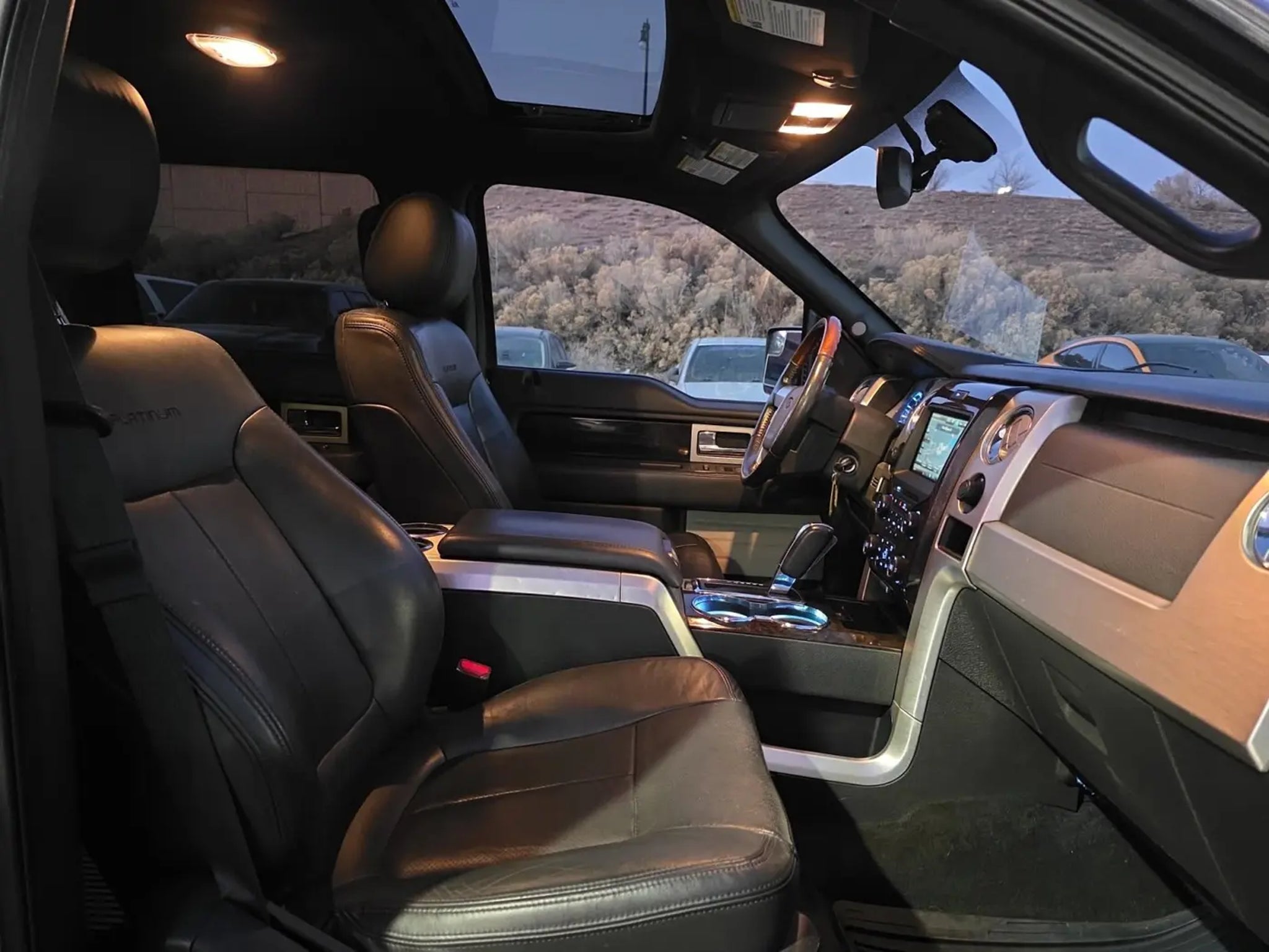 Priced below KBB Fair Purchase Price!Odometer is 14515 miles below market average!2014 Ford F-150 PlatinumCall (801) 563-4011 today to schedule your test drive!Awards:* 2014 KBB.com Brand Image AwardsEquipment Group 700A, GVWR: 7,350 lbs Payload Package, 4WD, 10 Speakers, 20 Polished Aluminum Wheels, 4-Wheel Disc Brakes, ABS brakes, Adjustable pedals, Air Conditioning, All-Weather Rubber Floor Mats, Alloy wheels, AM/FM radio: SiriusXM, Auto tilt-away steering wheel, Auto-dimming door mirrors, Auto-dimming Rear-View mirror, Automatic temperature control, Black Unique Leather Bucket Seats, Bodyside moldings, Bumpers: body-color, CD player, Compass, Delay-off headlights, Driver door bin, Driver vanity mirror, Dual front impact airbags, Dual front side impact airbags, DVD-Audio, Electronic Stability Control, Exterior Parking Camera Rear, Front anti-roll bar, Front Bucket Seats, Front Center Armrest, Front dual zone A/C, Front fog lights, Front License Plate Bracket, Front reading lights, Front wheel independent suspension, Fully automatic headlights, Garage door transmitter, Heated door mirrors, Heated front seats, Heated rear seats, High-Intensity Discharge Headlights, Illuminated entry, Low tire pressure warning, Memory seat, Navigation, Navigation System, Occupant sensing airbag, Outside temperature display, Overhead airbag, Overhead console, Overhead Console w/Single Storage Bin, Panic alarm, Passenger door bin, Passenger vanity mirror, Pedal memory, Power door mirrors, Power driver seat, Power Moonroof, Power passenger seat, Power steering, Power windows, Premium audio system: Sony, Radio data system, Radio: Sony Single-CD w/HD, Rain sensing wipers, Rear Parking Sensors, Rear reading lights, Rear seat center armrest, Rear step bumper, Rear window defroster, Remote keyless entry, Security system, SiriusXM Satellite Radio, Speed control, Speed-sensing steering, Split folding rear seat, Steering wheel memory, Steering wheel mounted audio controls, SYNC Voice Activated Communication & Entertainment, SYNC w/MyFord Touch & SYNC Services, Tachometer, Tailgate Step, Telescoping steering wheel, Tilt steering wheel, Traction control, Trailer Brake Controller, Trip computer, Turn signal indicator mirrors, Variably intermittent wipers, and Ventilated front seats. 4WD.