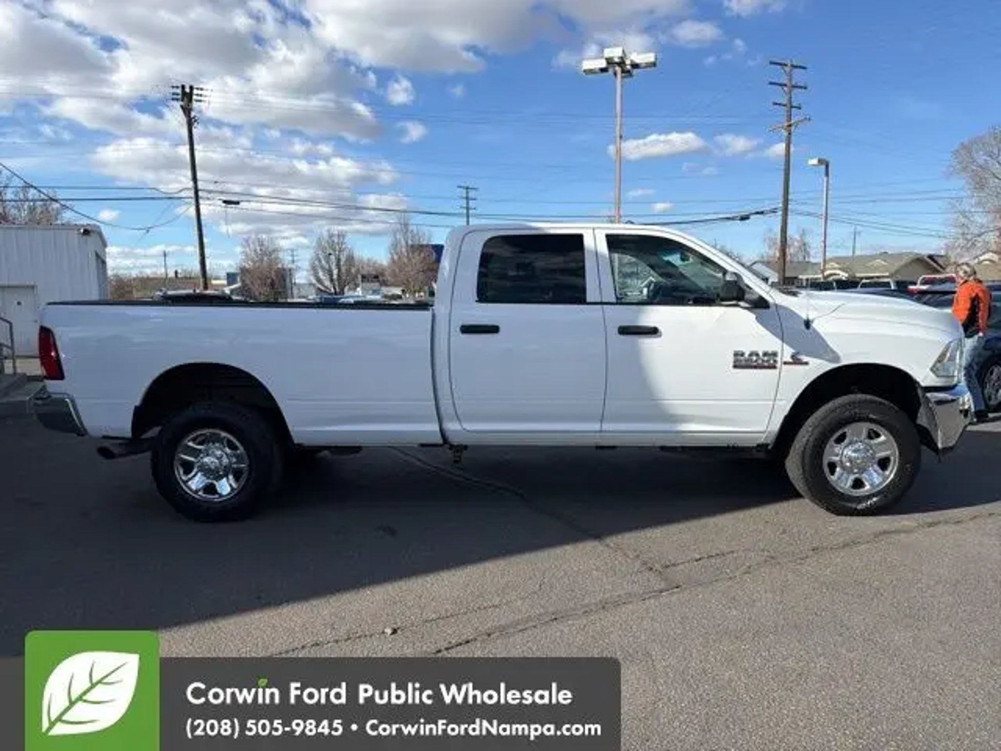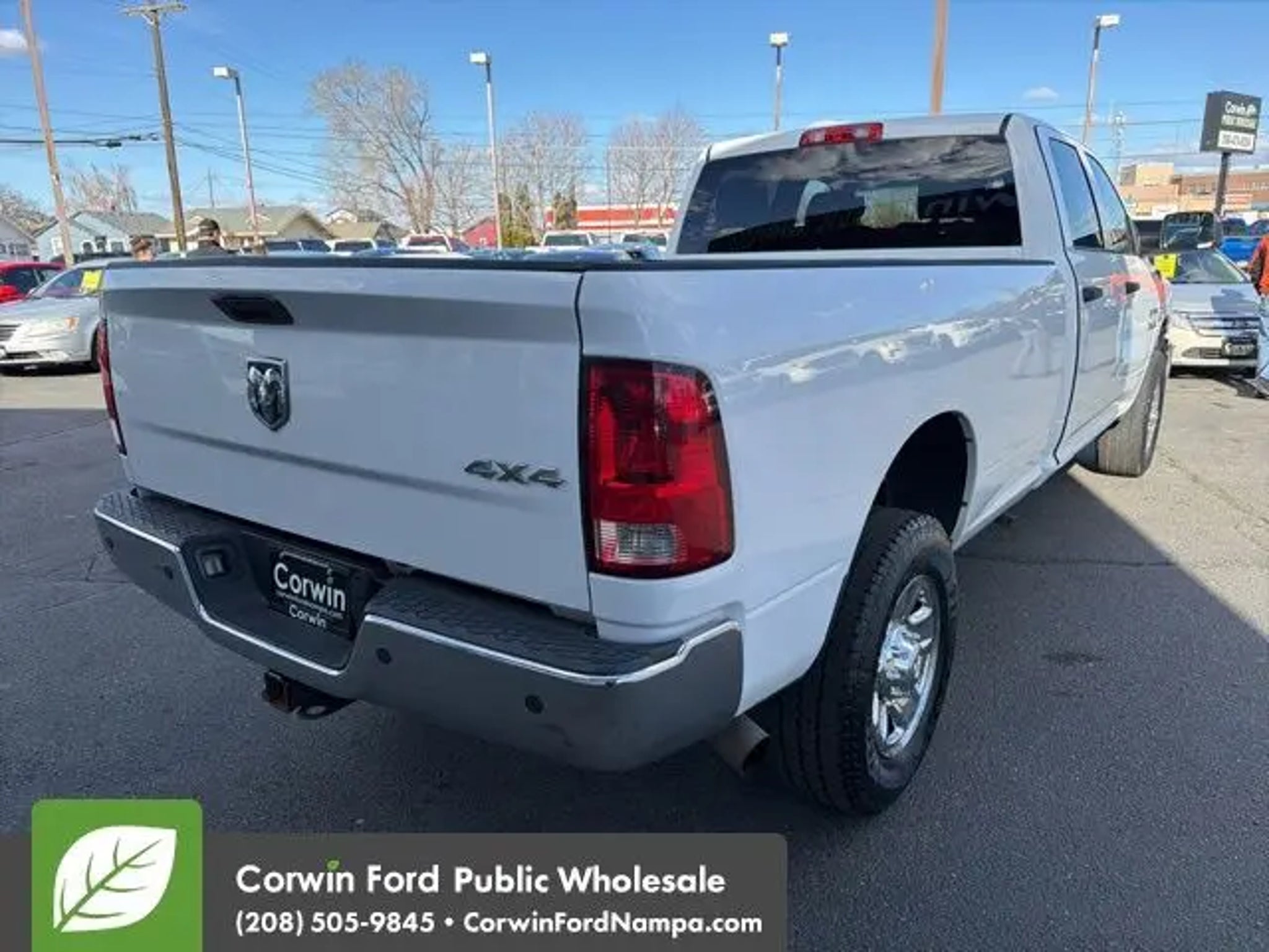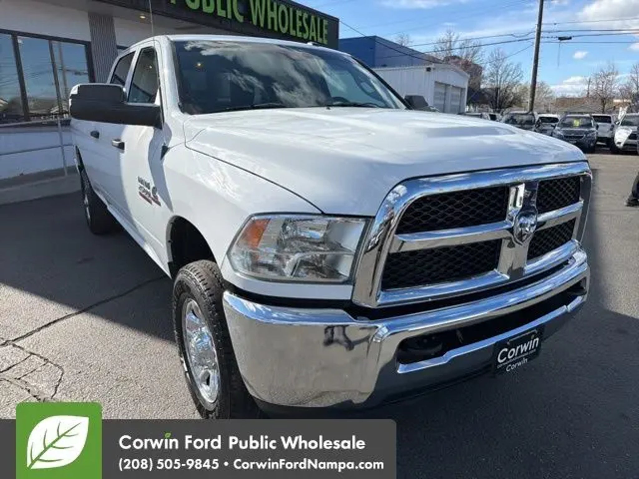 Our Diesel powered One Owner with Low Mileage 2014 RAM 2500 Tradesman Crew Cab 4X4 stands strong with a bold Bright White Clear Coat design. Motivated by a TurboCharged 6.7 Liter Cummins Diesel 6 Cylinder offering 350hp and 660lb-ft of torque to a 6 Speed Automatic transmission for fantastic towing and hauling authority. This Four Wheel Drive truck also features comfortable handling for keeping up with busy jobs and looks great. Check out our RAM 2500's mighty grille, black bumpers, matching accents, a locking tailgate, and a handy Class V hitch receiver. The iconic RAM's Head badge is like a truck lover's seal of approval. Practical and smartly engineered, our Tradesman cabin makes your life a little easier with supportive seats, a tilt-adjustable steering wheel, air conditioning, power accessories, and a six-speaker sound system with USB/AUX connections. There's plenty of clever storage, too, so you can stay organized. The result is a superior interior that can serve you well on the clock or off. Keep calm and confidently carry on, knowing that RAM helps you stay safe with stability/traction control, hill start assistance, advanced multi-stage airbags, ABS, a tire pressure monitoring system, and more. Our RAM 2500 Tradesman is robust and ready to get down to business! Save this Page and Call for Availability. We Know You Will Enjoy Your Test Drive Towards Ownership! Corwin Ford Nampa! Friendly service and aggressive pricing is why we are your new and pre-owned vehicle dealer serving, Nampa, Boise, Meridian, Caldwell, Kuna, Eagle, Emmett, Idaho City, Wilder, New Plymouth, Star, Middleton, Weiser, Payette, Horseshoe Bend, Mountain Home, Idaho, and surrounding states.