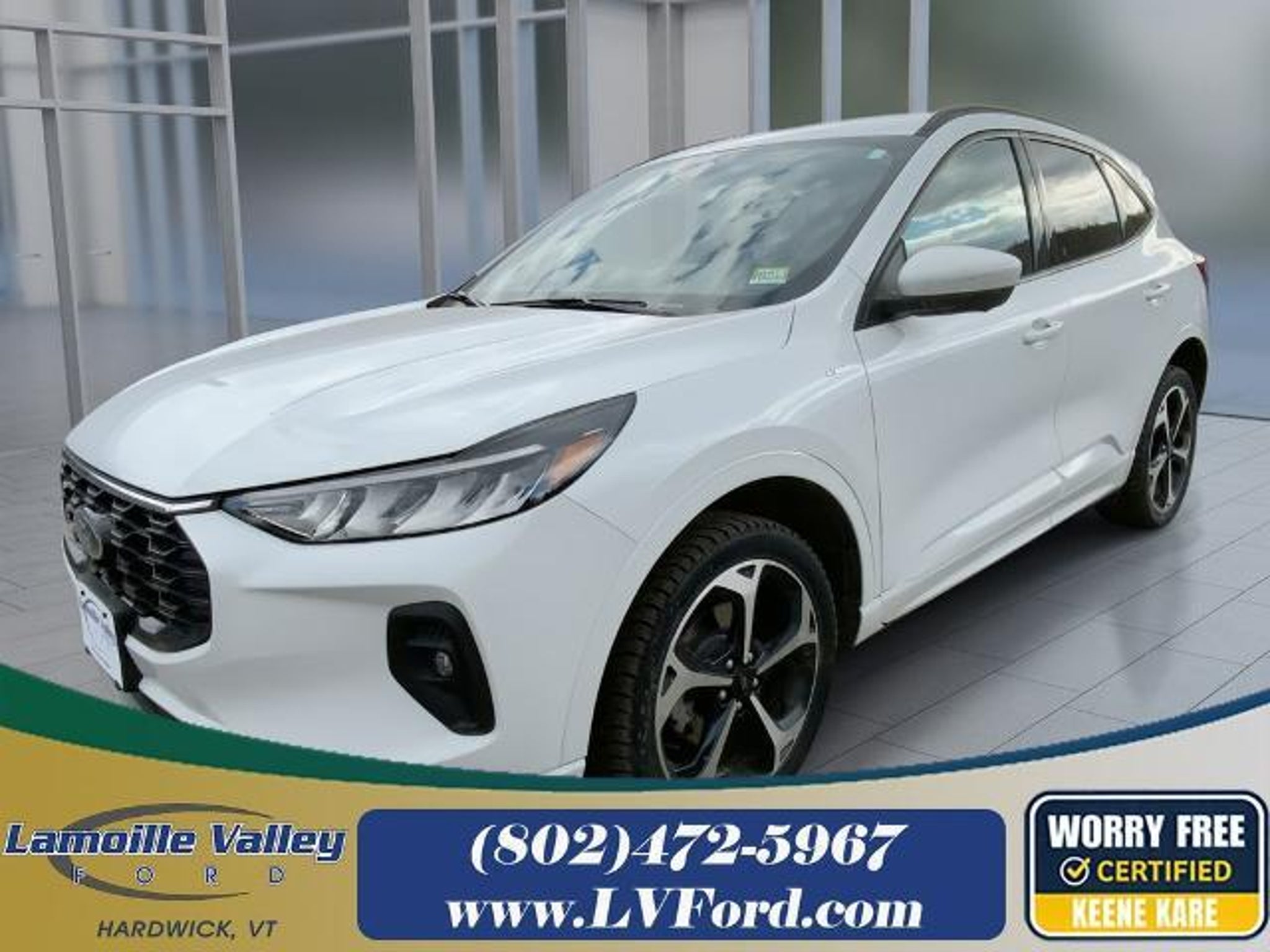 Certified. Ford Gold Certified Details: * Transferable Warranty * Warranty Deductible: $100 * Vehicle History * and 22,000 FordPass Rewards Points to use toward first two maintenance visits * Powertrain Limited Warranty: 84 Month/100,000 Mile (whichever comes first) from original in-service date * Limited Warranty: 12 Month/12,000 Mile (whichever comes first) after new car warranty expires or from certified purchase date * 172 Point Inspection * Roadside Assistance Lamoille Valley Ford is proud to present you with another True Market Priced Pre-Owned Vehicle. This 2023 Ford Escape ST-Line Select Ford Gold Certified is loaded with the following Factory Options: AWD Class II Trailer Tow Package, Equipment Group 401A, Memory Package, Tech Pack #2 (10-Way Power Driver's Seat, 12.3 Productivity Screen in Instrument Cluster, 360-Degree Camera w/Split View, 6-Way Power Passenger Seat, Body Color Mirrors, Connected Built-In Navigation, Ford Co-Pilot360 Assist 2.0, HD Radio, Intelligent Adaptive Cruise Control w/Stop-and-Go, Intersection Assist, Radio: B&O Sound System by Bang & Olufsen, Rear Parking Sensor, Reverse Brake Assist, SecuriCode Keyless Entry Keypad, Speed Sign Recognition, SYNC 4 w/Enhanced Voice Recognition, and Wireless Charging Pad), Ford Gold Certified Certified, AWD, 2.91 Axle Ratio, 4-Wheel Disc Brakes, 6 Speakers, ABS brakes, Air Conditioning, Alloy wheels, AM/FM radio: SiriusXM, AM/FM Stereo, Auto High-beam Headlights, Automatic temperature control, Brake assist, Bumpers: body-color, Compass, Delay-off headlights, Driver door bin, Driver vanity mirror, Dual front impact airbags, Dual front side impact airbags, Electronic Fuel Door Release, Electronic Stability Control, Emergency communication system: SYNC 4 911 Assist, Exterior Parking Camera Rear, FordPass Connect, Four wheel independent suspension, Front & Rear Floor Liners w/Carpet Mats, Front anti-roll bar, Front Bucket Seats, Front Center Armrest, Front dual zone A/C, Front fog lights, Front License Plate Bracket, Front reading lights, Fully automatic headlights, Heated door mirrors, Heated front seats, Heated steering wheel, Heated Vinyl/Cloth Front Sport Contour Bucket Seats, Illuminated entry, Knee airbag, Low tire pressure warning, Neutral Towing Capability, Occupant sensing airbag, Outside temperature display, Overhead airbag, Overhead console, Panic alarm, Passenger door bin, Passenger vanity mirror, Pedestrian Alert Sounder, Power door mirrors, Power driver seat, Power Liftgate, Power steering, Power windows, Rad