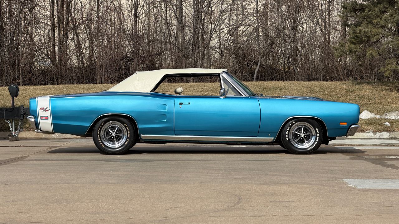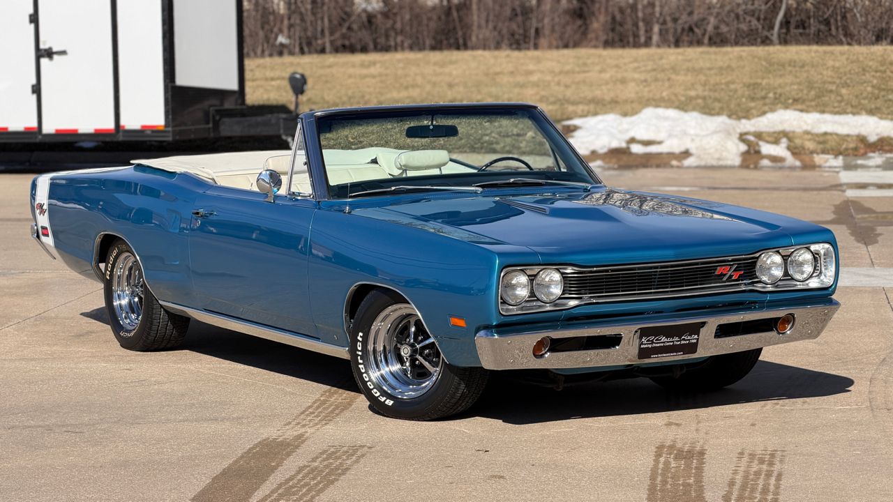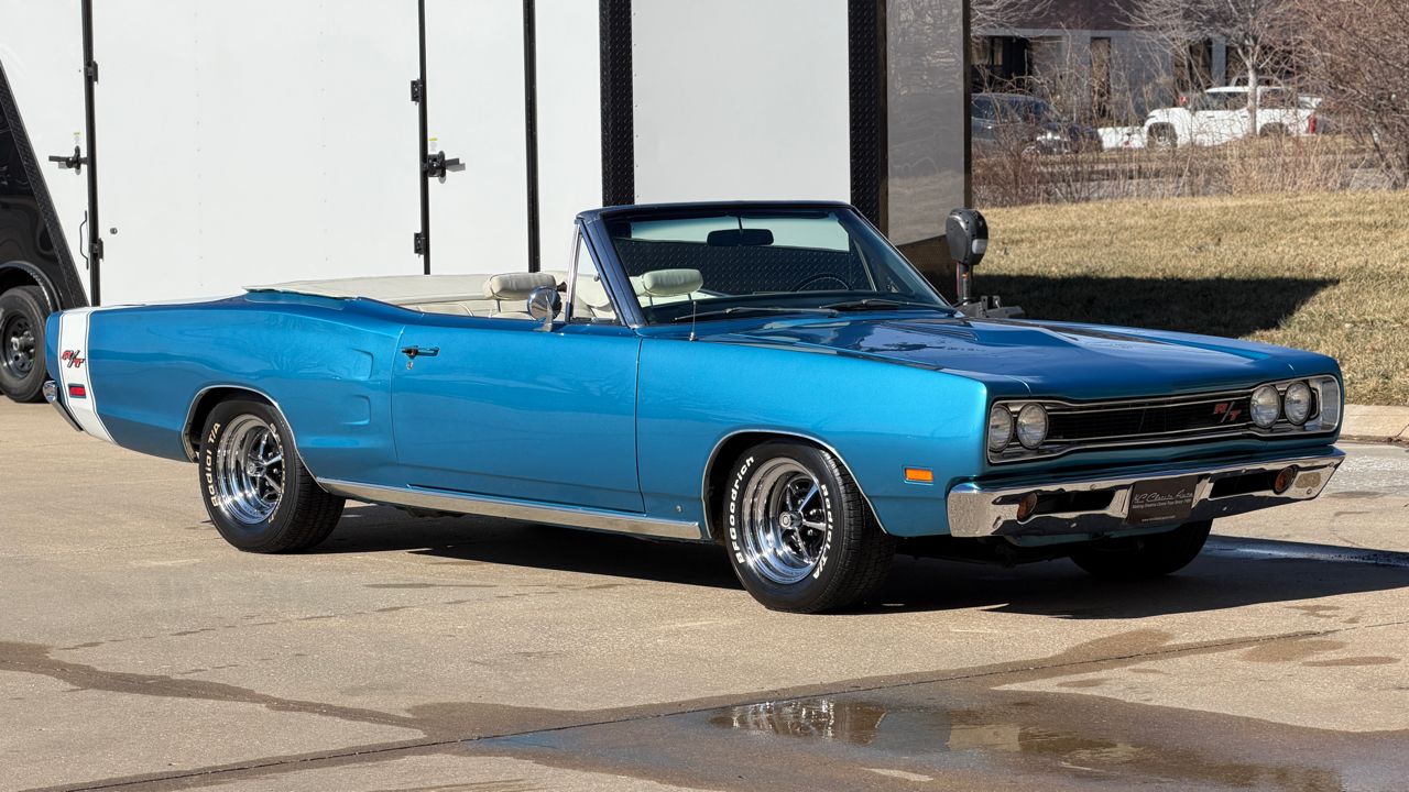 KC Classic Auto is proud to present this STUNNING 1969 Coronet R/T convertible, A.K.A. Rita!Less than 300 Coronet R/T convertibles were built in 1969, even less were 4-speeds with the Track Pack, making this a SUPER RARE car!!Beautifully restored and refinished in its original B5 Blue with white convertible top and white stripe (originally a stripe delete car). Body and paint are in great shape with a few minor flaws (see photos). The convertible top is in excellent condition with brand new hydraulic cylinders and hoses.The interior is in excellent condition. Originally Black bucket seats and center console, it now has beautiful white seats with center arm rest. Vintage Air Conditioning/heat has also been added, along with a Sony head unit with CD player.Powered by a 1970 date code 440ci Magnum High Performance engine, mated to a 4-speed manual transmission. Factory A33 Track Pack car with Dana 60 rear end, Sure Grip differential and 3.54 gears.Other factory options include: power steering, power convertible top, power brakes, full bright exterior trim, etc! Full breakdown of the fender tag:R22: AM RadioV88: Stripe Delete26: 26 Heavy-Duty RadiatorA33: Track Pak (Performance Axle w/ Sure Grip differential and 3.54 gearsB51: Power BrakesC16: Center ConsoleC55: Bucket SeatsM25: Wide Sill MoldingsM31: Belt MoldingsB5 B5: Bright Blue Metallic (Upper & Lower Body Color)P6X: Premium Black Vinyl Bucket Seat InteriorX9: Black Door Frame PaintB20: November 20 build date206816: Order Sequence NumberE86: 440ci Magnum V8 (High Performance 375 HP, 4-Barrel)D21: 4-Speed Manual TransmissionWS27: Coronet R/T Convertible Body StyleL9G: 375-horsepower 440ci V8 w/four-barrel carburetor; 1969 model year; Saint Louis, Missouri, assembly plant172122: Sequence number Visit KC Classic Auto online at kcclassicauto.com to see more pictures of this vehicle or call us at 913-888-1234.