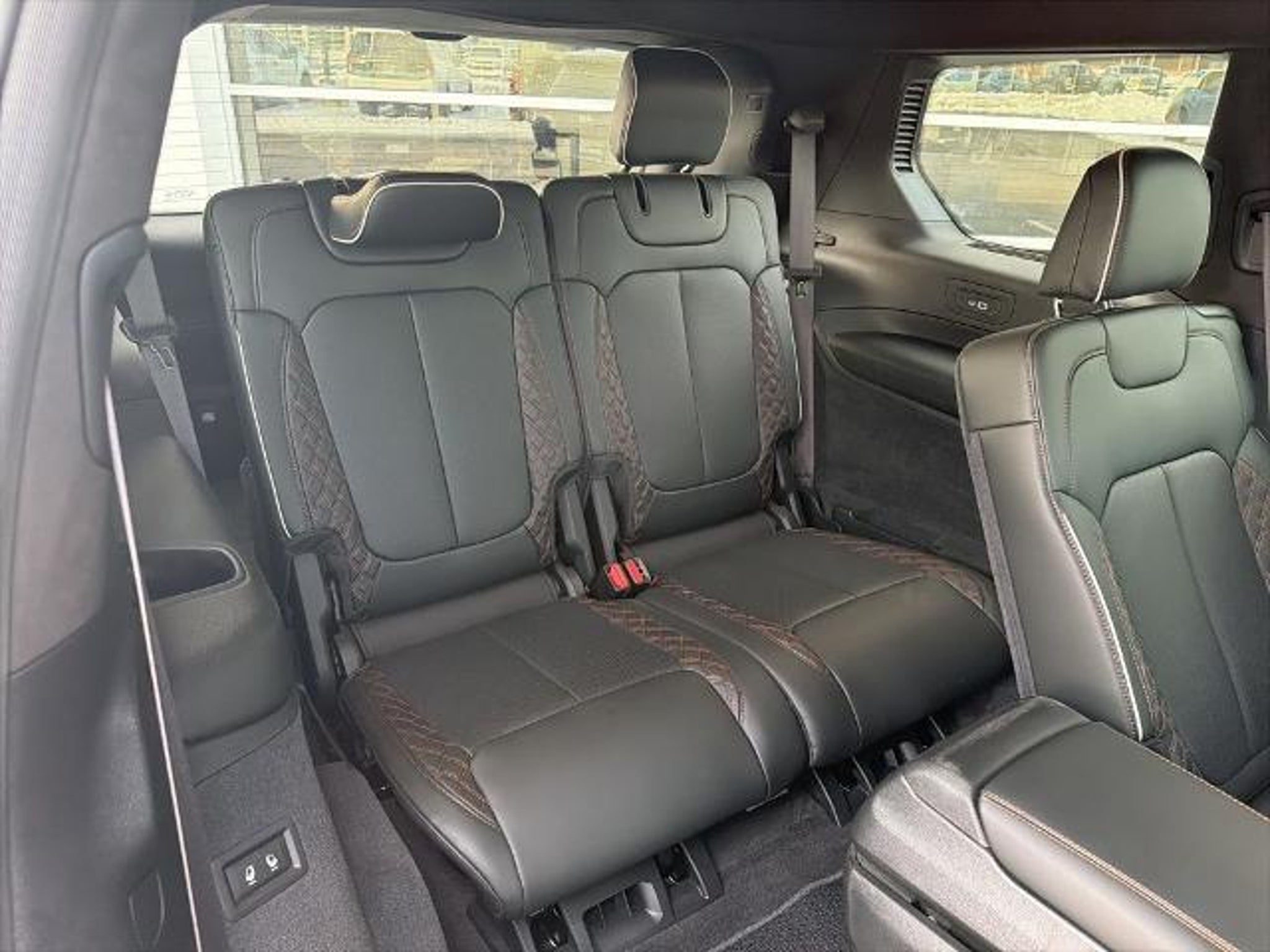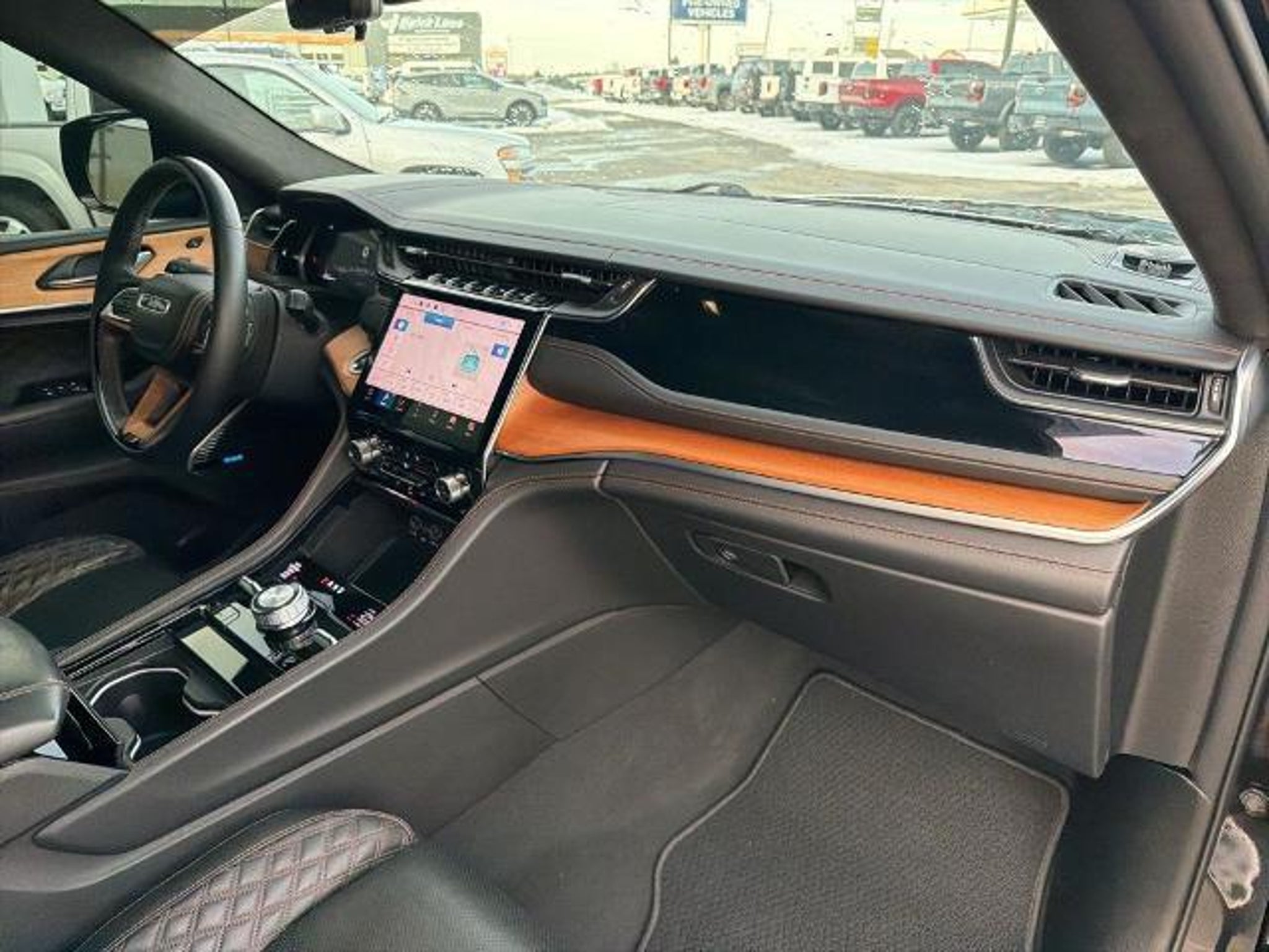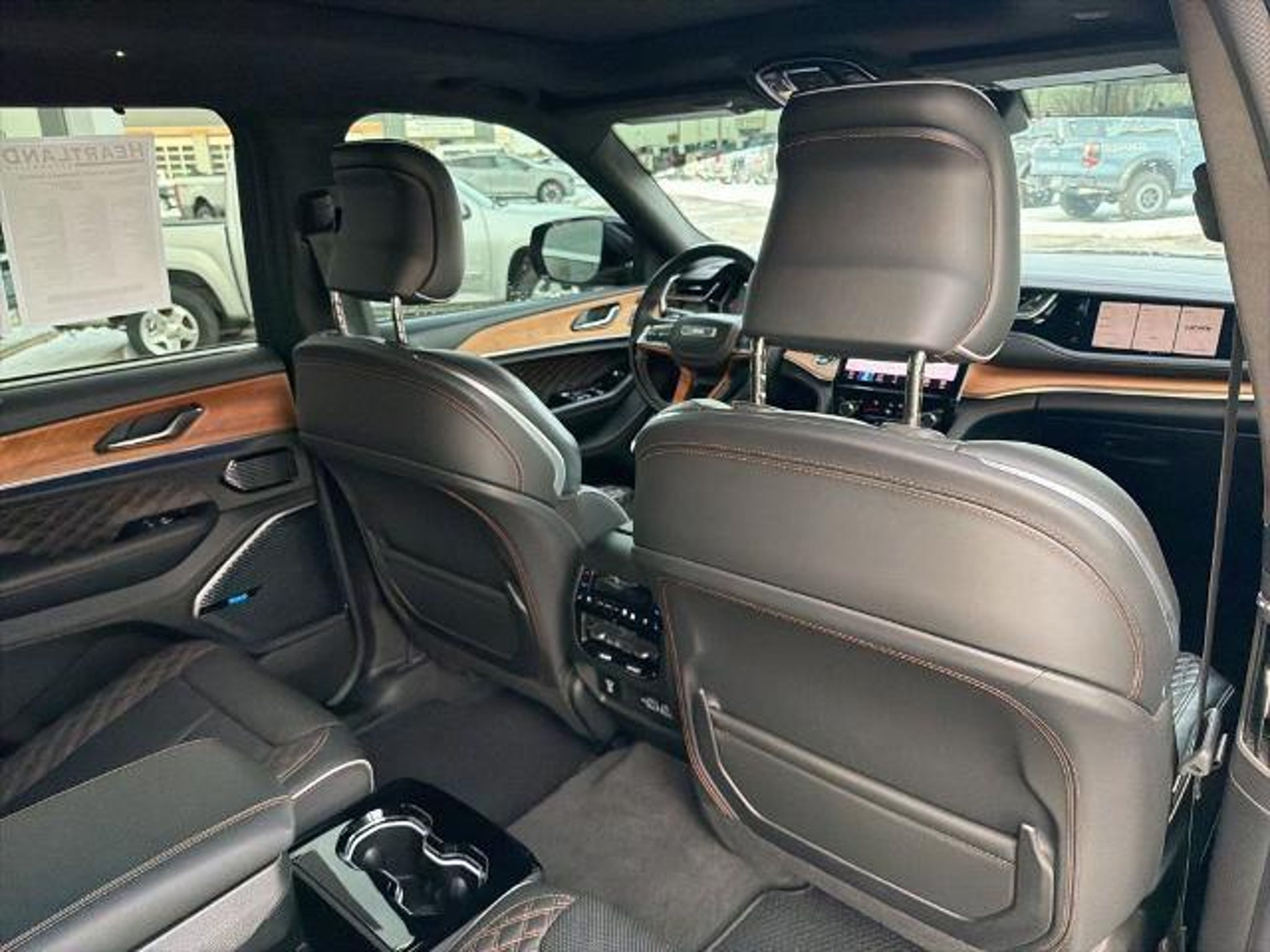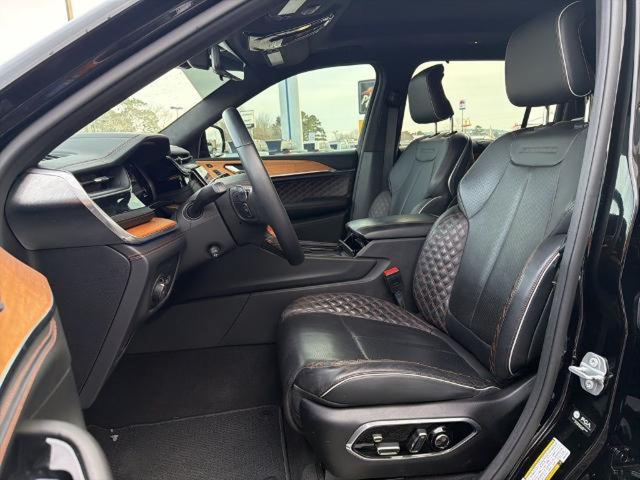 This 2022 Jeep Grand Cherokee L Summit in Diamond Black Crystal Pearlcoat comes with the following features: HEMI 5.7L V8 Multi Displacement VVT 8-Speed Automatic 4WD Advanced Protech Group IV (Heads-Up Display, Interior Rear Facing Camera, Night Vision/Pedestrian-Animal Detection, and Rearview Autodim Digital Display Mirror), Electronic Limited Slip Differential Delete (Conventional Differential Rear Axle), Luxury Tech Group V (2nd Row Manual Window Shades and Wireless Charging Pad), Quick Order Package 25U Summit Reserve (19 Speakers High Performance Audio, 950 Watt Amplifier, Active Noise Control System, Deluxe Headliner, Front Passenger Interactive Display, Palermo Leather Door Trim, Palermo Leather Seats, Summit Reserve, Summit Reserve Badge, Ventilated Rear Seats, and Wheels: 21 x 9.0 Machined Face/Painted Aluminum), Two Tone Paint Group, 10 Speakers, 3.45 Rear Axle Ratio, 3rd row seats: split-bench, 4-Wheel Disc Brakes, ABS brakes, Adaptive suspension, Air Conditioning, Alloy wheels, AM/FM radio: SiriusXM with 360L, Anti-whiplash front head restraints, Audio memory, Auto High-beam Headlights, Auto-dimming door mirrors, Auto-dimming Rear-View mirror, Auto-leveling suspension, Automatic temperature control, Brake assist, Bumpers: body-color, Compass, Delay-off headlights, Driver door bin, Driver vanity mirror, Dual front impact airbags, Dual front side impact airbags, Electronic Stability Control, Emergency communication system, Four wheel independent suspension, Front anti-roll bar, Front Bucket Seats, Front Center Armrest w/Storage, Front dual zone A/C, Front fog lights, Front reading lights, Fully automatic headlights, Garage door transmitter, Genuine wood dashboard insert, Genuine wood door panel insert, Heated door mirrors, Heated front seats, Heated rear seats, Heated steering wheel, Illuminated entry, Knee airbag, Leather steering wheel, Low tire pressure warning, Memory seat, MOPAR Bright Side Steps, Nappa Leather Seats, Navigation System, Normal Duty Suspension, Occupant sensing airbag, Outside temperature display, Overhead airbag, Overhead console, Panic alarm, Passenger door bin, Passenger vanity mirror, Power door mirrors, Power driver seat, Power Fold Seatbacks, Power Liftgate, Power moonroof, Power passenger seat, Power steering, Power windows, Radio data system, Radio: Uconnect 5 Nav w/10.1 Display, Rain sensing wipers, Rear air conditioning, Rear anti-roll bar, Rear dual zone A/C, Rear reading lights, Rear seat center armrest, Rear window defroster, Rear window wiper, Reclining 3rd ro