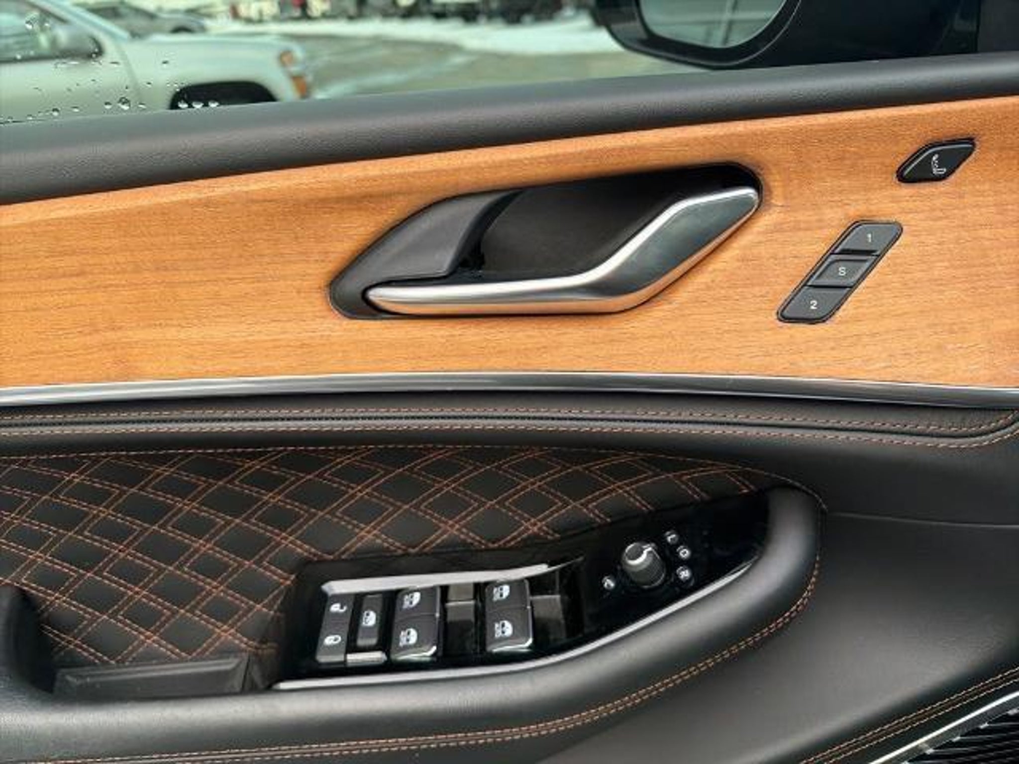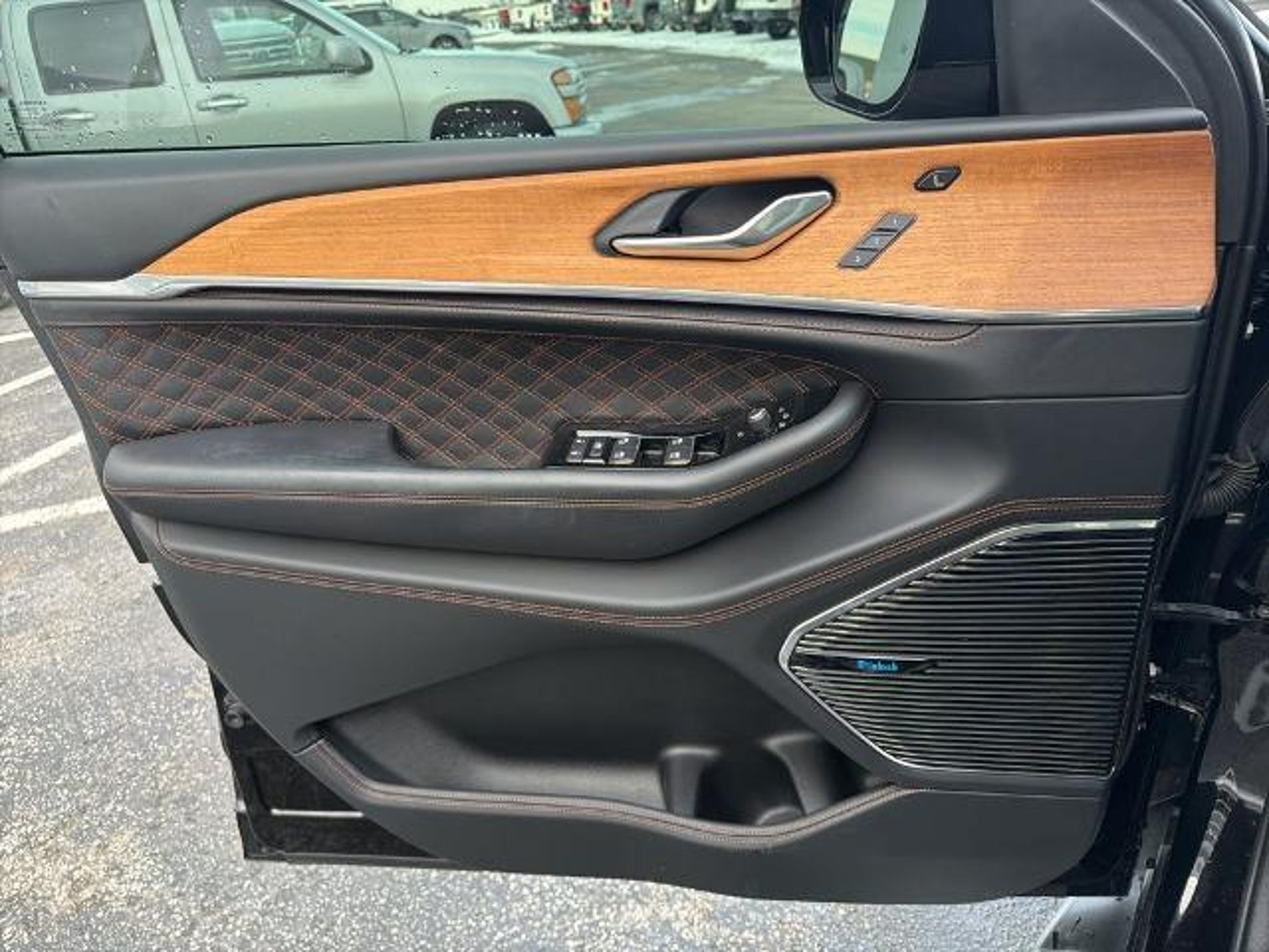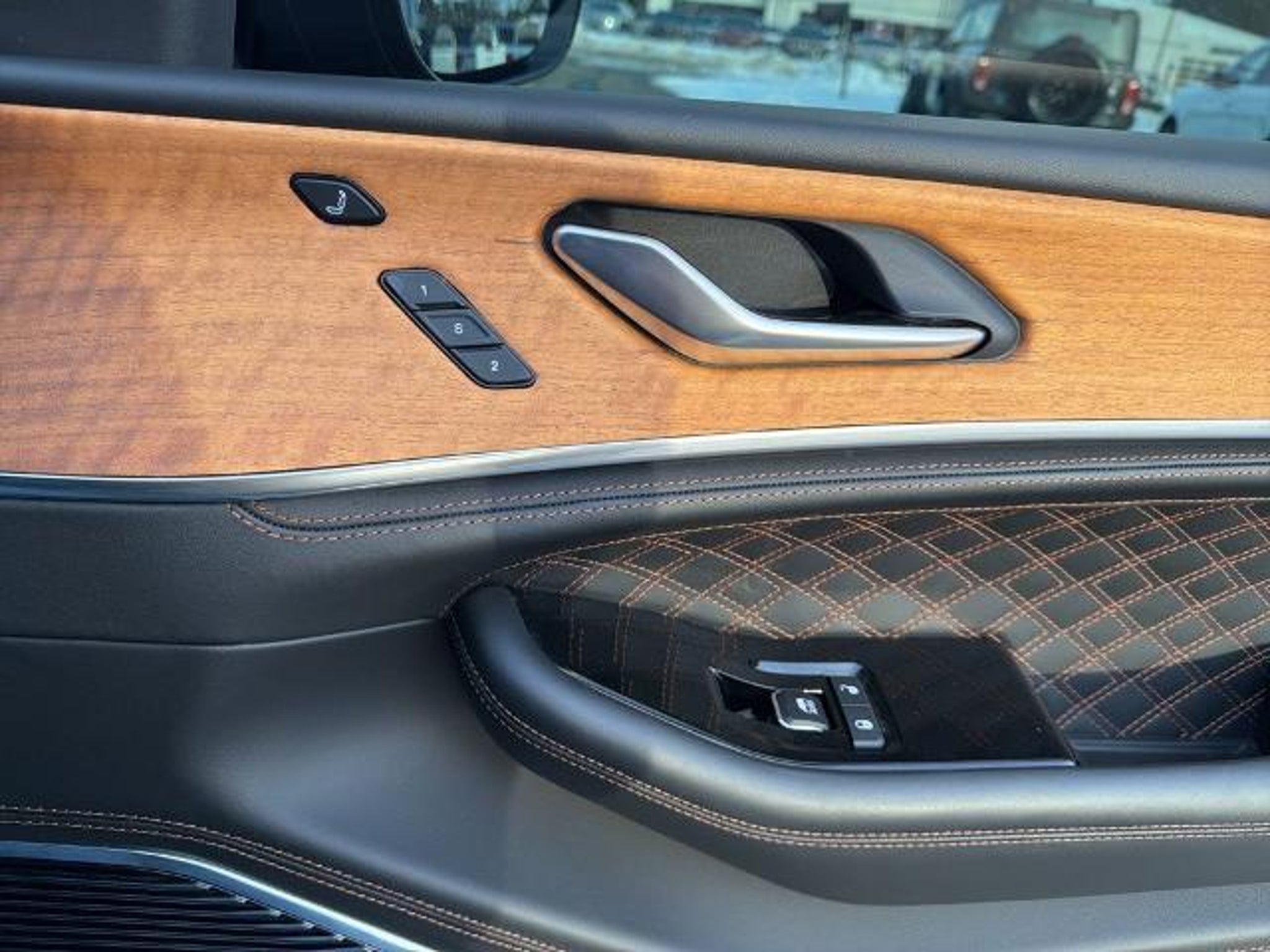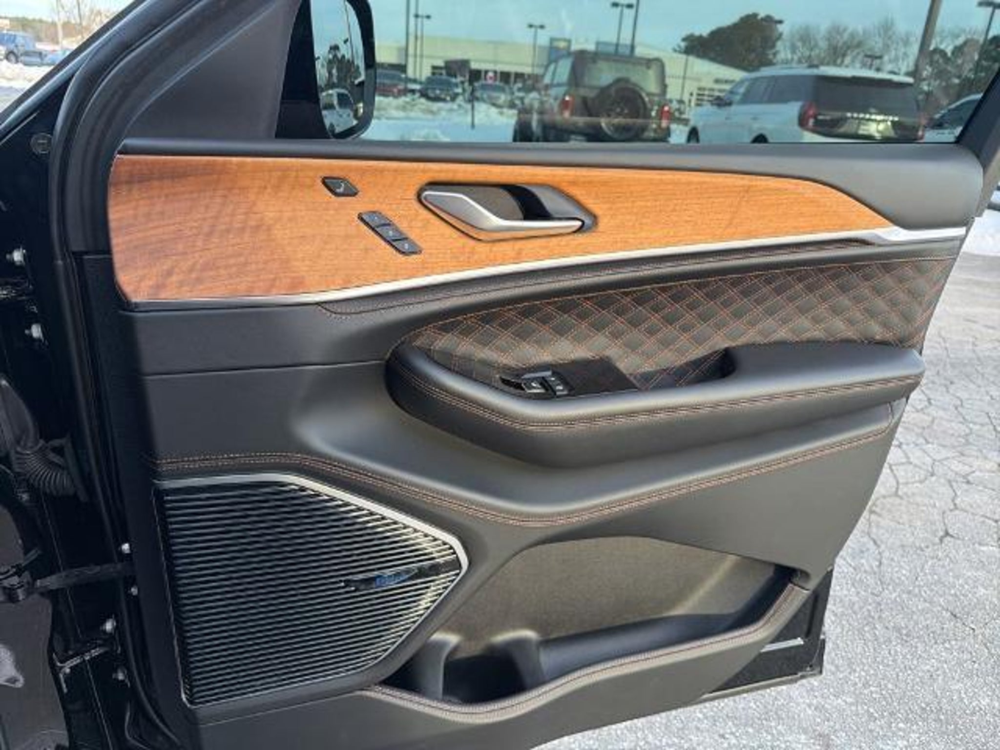 This 2022 Jeep Grand Cherokee L Summit in Diamond Black Crystal Pearlcoat comes with the following features: HEMI 5.7L V8 Multi Displacement VVT 8-Speed Automatic 4WD Advanced Protech Group IV (Heads-Up Display, Interior Rear Facing Camera, Night Vision/Pedestrian-Animal Detection, and Rearview Autodim Digital Display Mirror), Electronic Limited Slip Differential Delete (Conventional Differential Rear Axle), Luxury Tech Group V (2nd Row Manual Window Shades and Wireless Charging Pad), Quick Order Package 25U Summit Reserve (19 Speakers High Performance Audio, 950 Watt Amplifier, Active Noise Control System, Deluxe Headliner, Front Passenger Interactive Display, Palermo Leather Door Trim, Palermo Leather Seats, Summit Reserve, Summit Reserve Badge, Ventilated Rear Seats, and Wheels: 21 x 9.0 Machined Face/Painted Aluminum), Two Tone Paint Group, 10 Speakers, 3.45 Rear Axle Ratio, 3rd row seats: split-bench, 4-Wheel Disc Brakes, ABS brakes, Adaptive suspension, Air Conditioning, Alloy wheels, AM/FM radio: SiriusXM with 360L, Anti-whiplash front head restraints, Audio memory, Auto High-beam Headlights, Auto-dimming door mirrors, Auto-dimming Rear-View mirror, Auto-leveling suspension, Automatic temperature control, Brake assist, Bumpers: body-color, Compass, Delay-off headlights, Driver door bin, Driver vanity mirror, Dual front impact airbags, Dual front side impact airbags, Electronic Stability Control, Emergency communication system, Four wheel independent suspension, Front anti-roll bar, Front Bucket Seats, Front Center Armrest w/Storage, Front dual zone A/C, Front fog lights, Front reading lights, Fully automatic headlights, Garage door transmitter, Genuine wood dashboard insert, Genuine wood door panel insert, Heated door mirrors, Heated front seats, Heated rear seats, Heated steering wheel, Illuminated entry, Knee airbag, Leather steering wheel, Low tire pressure warning, Memory seat, MOPAR Bright Side Steps, Nappa Leather Seats, Navigation System, Normal Duty Suspension, Occupant sensing airbag, Outside temperature display, Overhead airbag, Overhead console, Panic alarm, Passenger door bin, Passenger vanity mirror, Power door mirrors, Power driver seat, Power Fold Seatbacks, Power Liftgate, Power moonroof, Power passenger seat, Power steering, Power windows, Radio data system, Radio: Uconnect 5 Nav w/10.1 Display, Rain sensing wipers, Rear air conditioning, Rear anti-roll bar, Rear dual zone A/C, Rear reading lights, Rear seat center armrest, Rear window defroster, Rear window wiper, Reclining 3rd ro