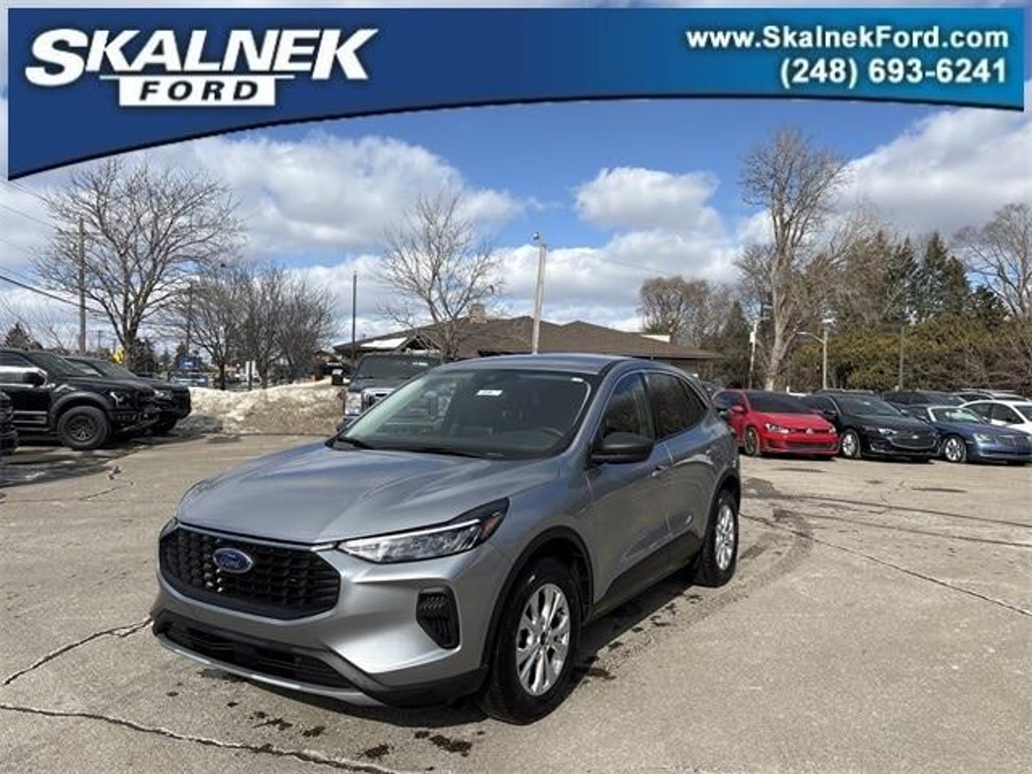 Recent Arrival! AWD. Certified. 2023 Ford Escape Active Iconic Silver Metallic Ford Blue Certified Details: * Transferable Warranty * Warranty Deductible: $100 * and 11,000 FordPass Rewards Points to use toward first maintenance visit * Vehicle History * Limited Warranty: 3 Month/4,000 Mile (whichever comes first) after new car warranty expires or from certified purchase date * Roadside Assistance * 139 Point Inspection Equipment Group 200A, Ford Blue Certified Certified, AWD, 3.81 Axle Ratio, 4-Wheel Disc Brakes, 6 Speakers, ABS brakes, Air Conditioning, Alloy wheels, AM/FM radio: SiriusXM, AM/FM Stereo, Auto High-beam Headlights, Automatic temperature control, Brake assist, Bumpers: body-color, Compass, Delay-off headlights, Driver door bin, Driver vanity mirror, Dual front impact airbags, Dual front side impact airbags, Electronic Stability Control, Emergency communication system: SYNC 4 911 Assist, Exterior Parking Camera Rear, FordPass Connect, Four wheel independent suspension, Front anti-roll bar, Front Bucket Seats, Front Center Armrest, Front dual zone A/C, Front reading lights, Fully automatic headlights, Heated door mirrors, Heated front seats, Heated steering wheel, Illuminated entry, Knee airbag, Low tire pressure warning, Occupant sensing airbag, Outside temperature display, Overhead airbag, Overhead console, Panic alarm, Passenger door bin, Passenger vanity mirror, Power door mirrors, Power driver seat, Power Liftgate, Power steering, Power windows, Radio data system, Rear anti-roll bar, Rear reading lights, Rear seat center armrest, Rear window defroster, Rear window wiper, Remote keyless entry, Speed control, Speed-sensing steering, Speed-Sensitive Wipers, Split folding rear seat, Spoiler, Steering wheel mounted audio controls, SYNC 4, Tachometer, Telescoping steering wheel, Tilt steering wheel, Traction control, Trip computer, Unique Cloth Front Bucket Seats, Variably intermittent wipers, and Wheels: 17 Shadow Silver-Painted Aluminum. 26/32 City/Highway MPG Skalnek Ford has made several enhancements to our dealership sales practices to continue providing our customers the service and experience they deserve. Ability for complete online shopping experience with the new ExpressQuote shopping tool. Remote e-contracting for most vehicle transactions available. Value your trade online with KBB Instant Cash Offer. Our dedicated and professional sales staff is always waiting via phone, text, or chat to assist you.