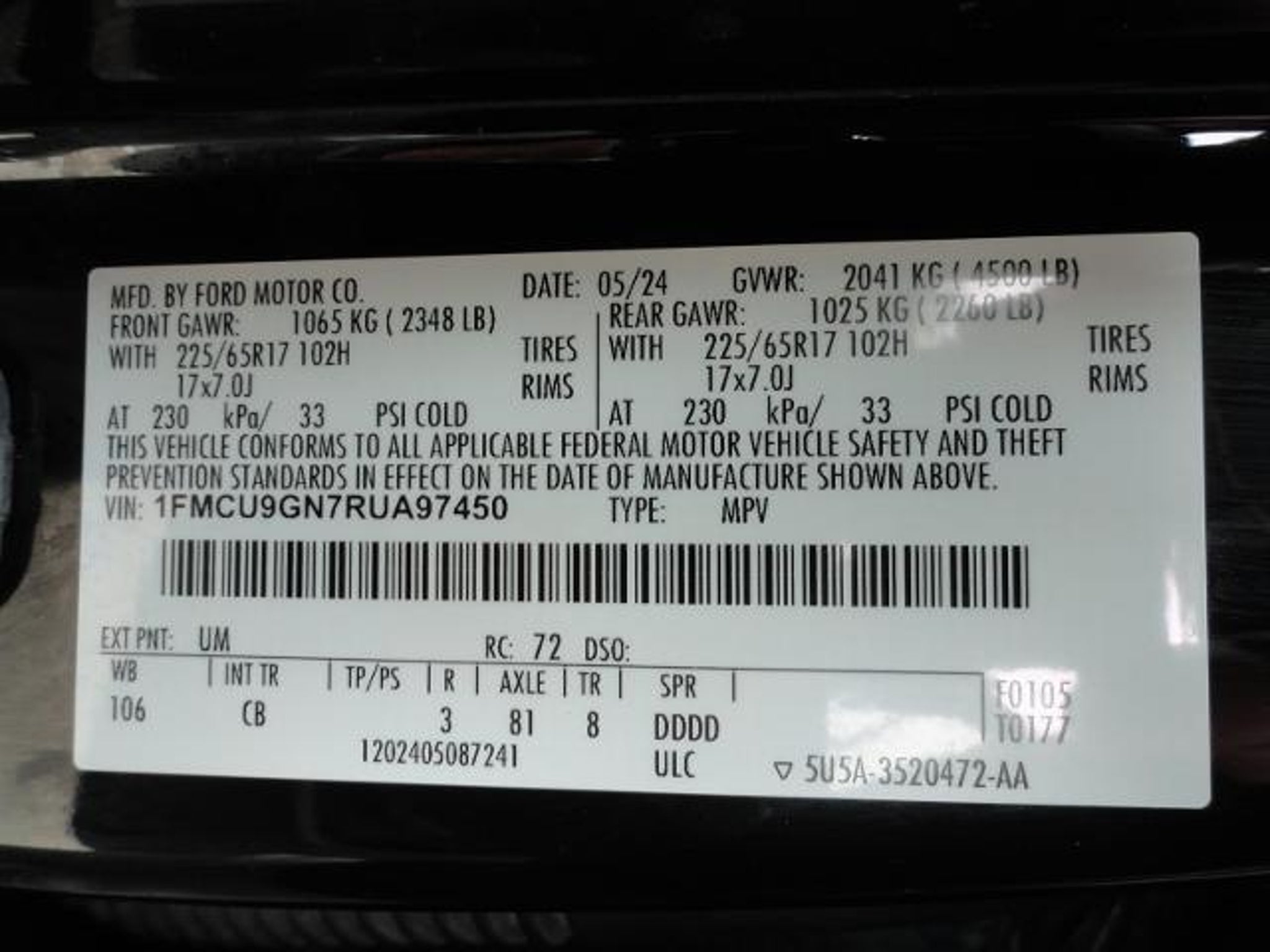 This vehicle is a 2024 Ford Escape Active SUV all wheel drive with a 1.5 liter EcoBoost Turbo I3 180hp 199 lb-ft engine, and turbocharged. It has an agate black (um) exterior and an ebony (cb) interior. It has a crash test rating of 5 out of 5 stars and features such as blind spot sensor, hill start assist, on demand four wheel drive, and more. This certified pre-owned vehicle has driven 46,263 miles and offers an impressive fuel economy of 26 mpg in the city and 32 mpg on the highway. It also comes with an impressive 5 out of 5 stars on its crash test rating, making it an ideal choice for those looking for a reliable and safe car.