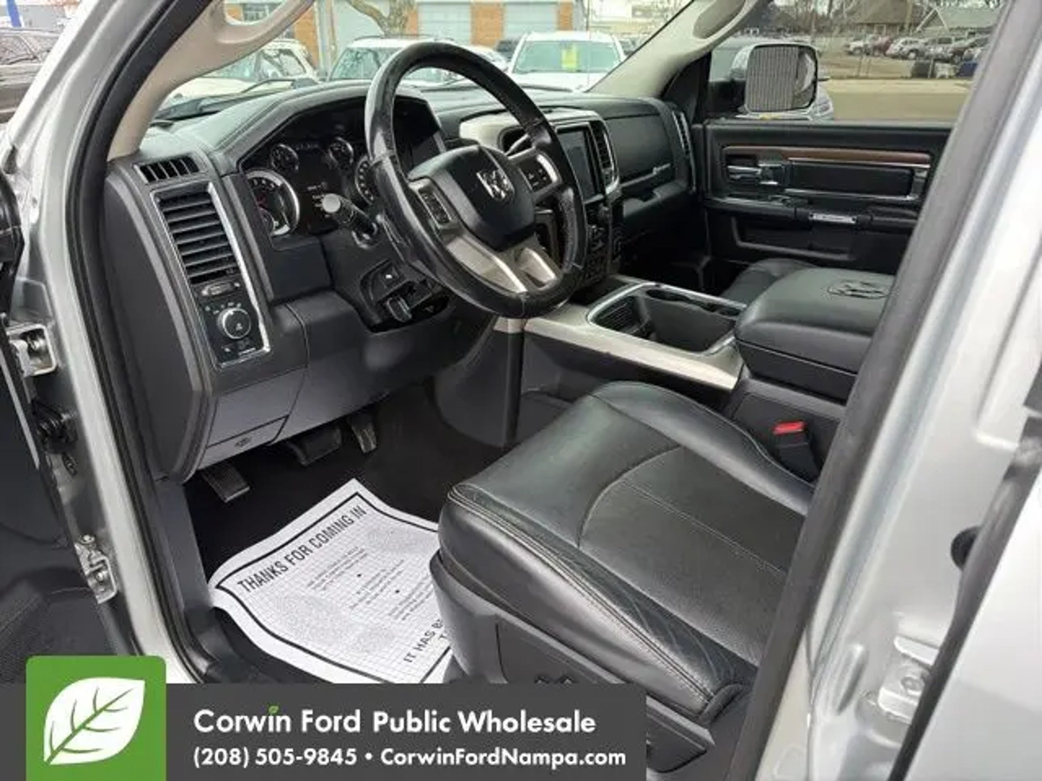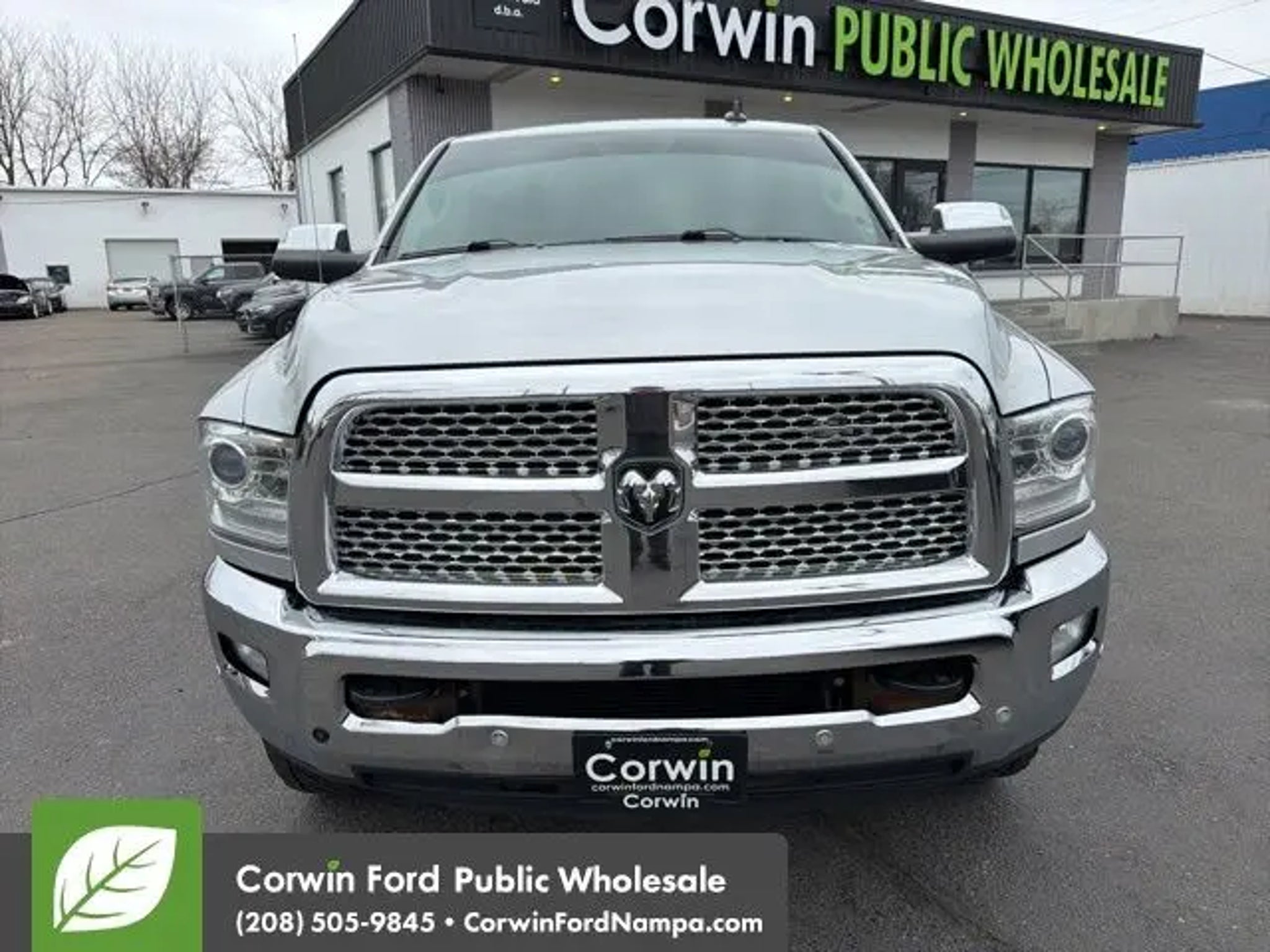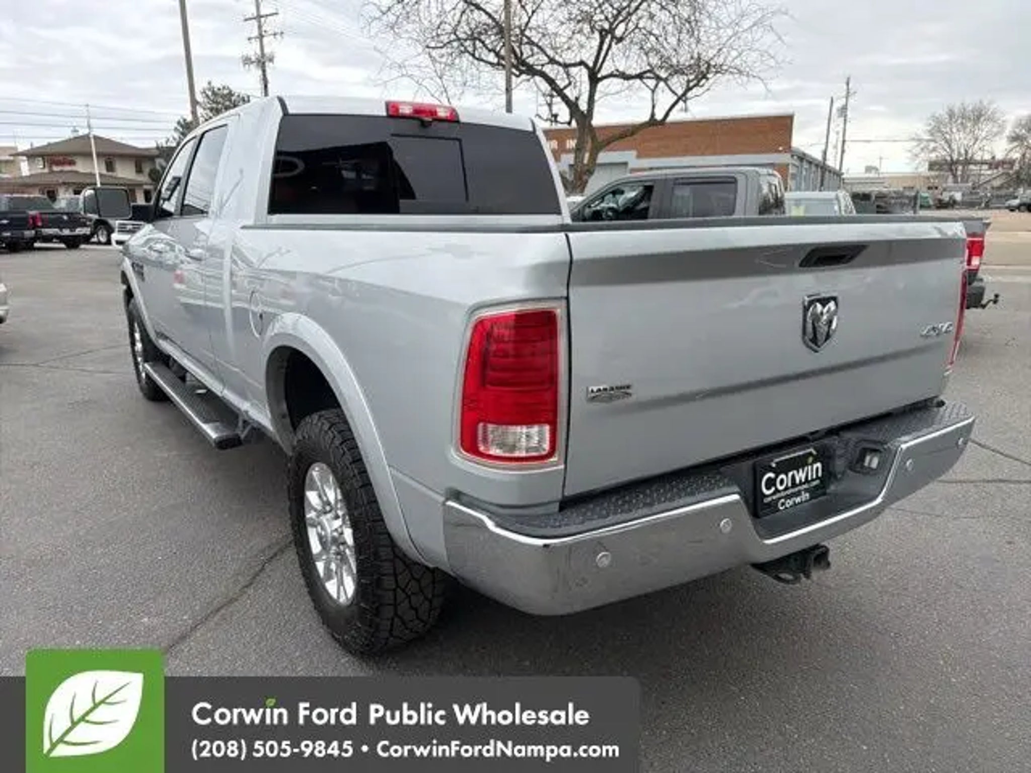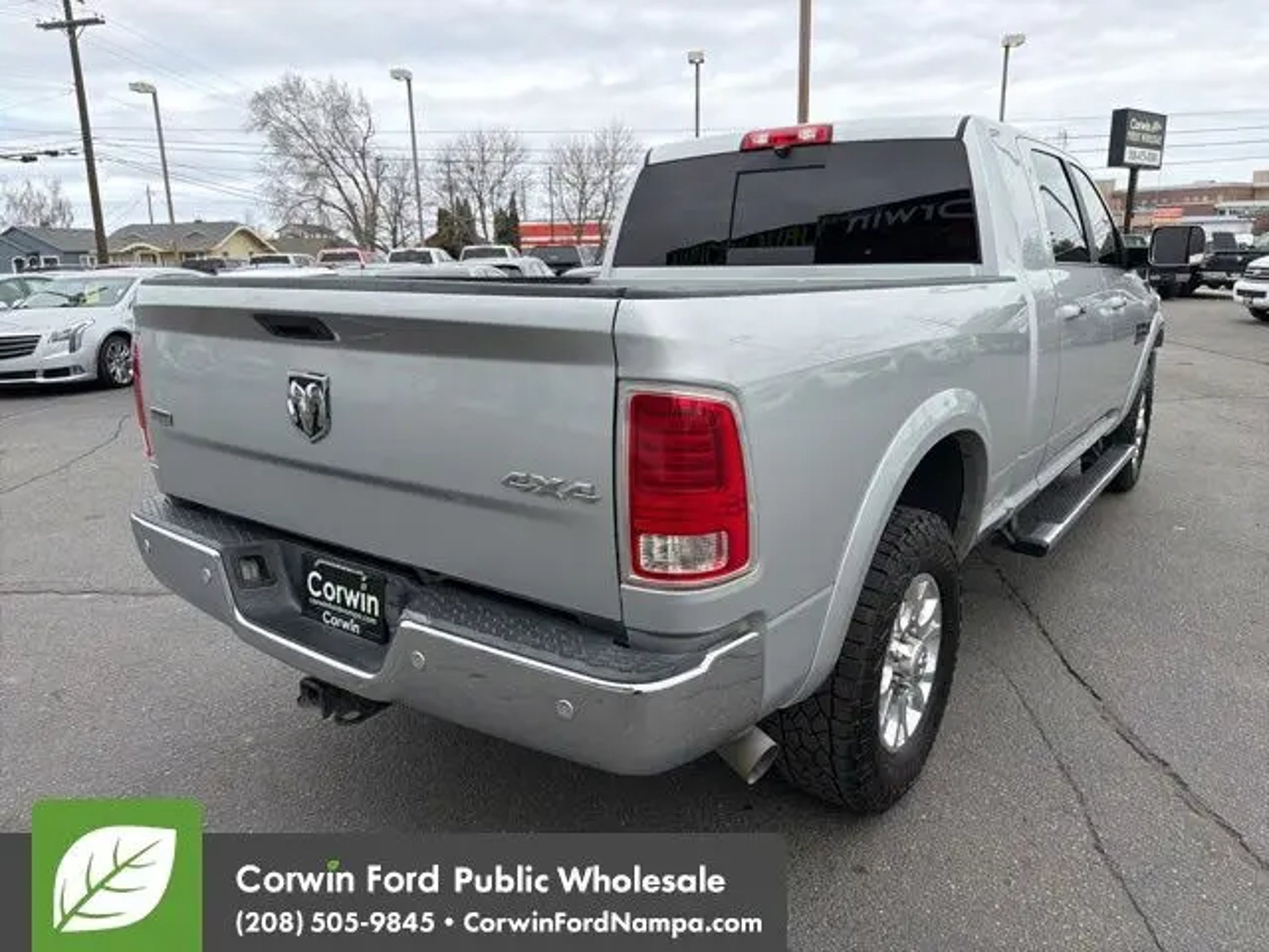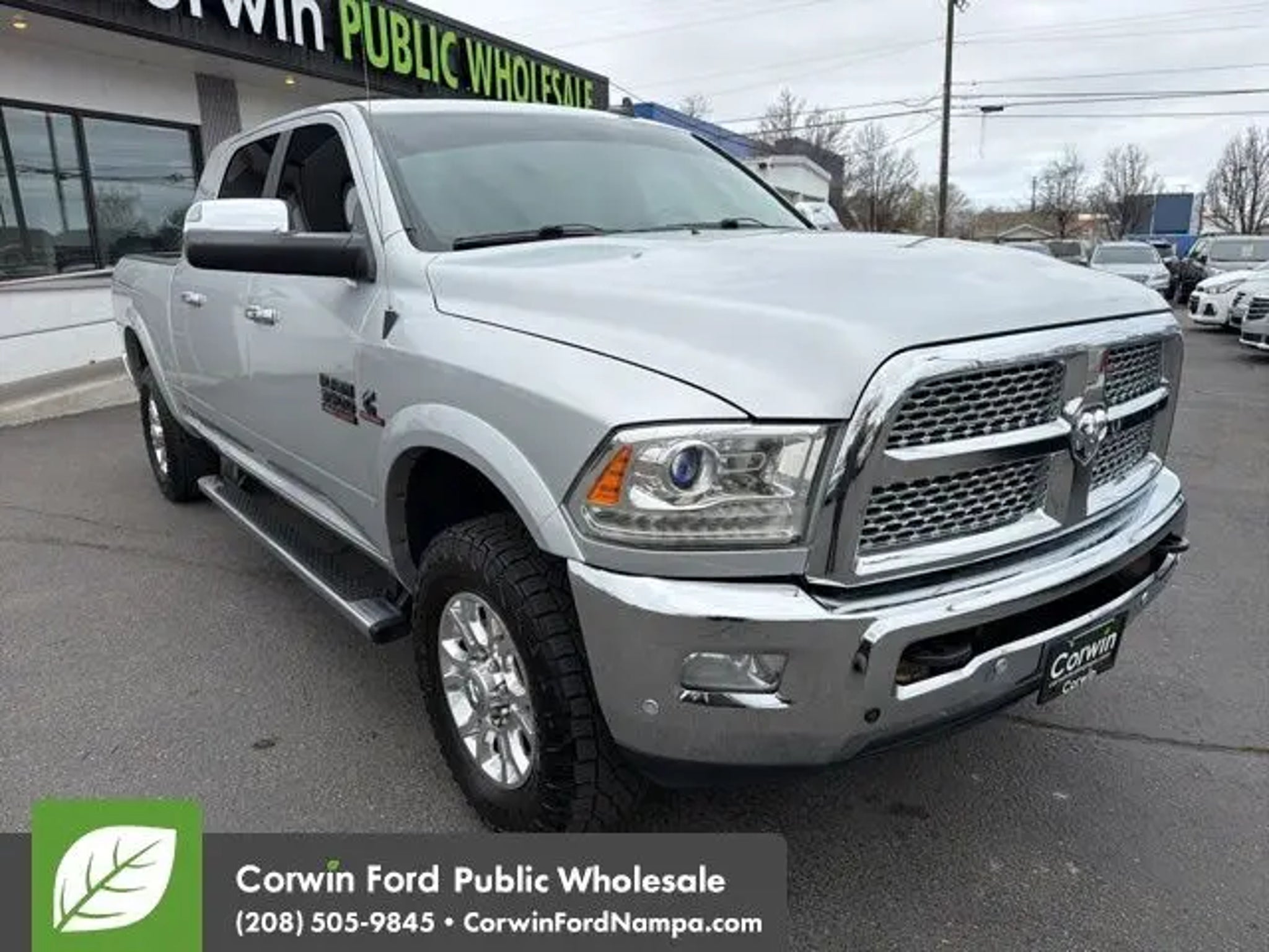 Changing the way you look at trucks, our 2018 RAM 3500 Laramie Mega Crew Cab 4X4 is ready to roll in Bright Silver Metallic. Powered by a TurboCharged 6.7 Liter Cummins Diesel 6 Cylinder that generates 385hp connected to a 6 Speed Automatic transmission plus with heavy-duty shock absorbers rewarding you with colossal payload and towing capability. From the moment you see the prominent polished aluminum wheels, a sunroof, running boards, and muscular contours, you'll realize that this Four Wheel Drive Laramie is unlike other trucks on the road. The unique style and refinement of our RAM 3500 Laramie continue into the well-designed cabin with amenities such as heated/cooled leather-trimmed seats, a heated steering wheel, rear parking sensors, dual-zone automatic climate control, and auto-dimming mirrors. Staying seamlessly connected is easy with the Uconnect® touchscreen interface with Bluetooth®, available satellite radio, Alpine speakers, and a media hub with an MP3 auxiliary jack, USB ports, and a power outlet. RAM offers ABS, airbags, stability/traction control, and a tire-pressure monitoring system to keep you safe and secure as you go about your routine. Step up to this luxurious 3500 Laramie; it could be the best decision you'll make this year! Save this Page and Call for Availability. We Know You Will Enjoy Your Test Drive Towards Ownership! Corwin Ford Nampa! Friendly service and aggressive pricing is why we are your new and pre-owned vehicle dealer serving, Nampa, Boise, Meridian, Caldwell, Kuna, Eagle, Emmett, Idaho City, Wilder, New Plymouth, Star, Middleton, Weiser, Payette, Horseshoe Bend, Mountain Home, Idaho, and surrounding states.