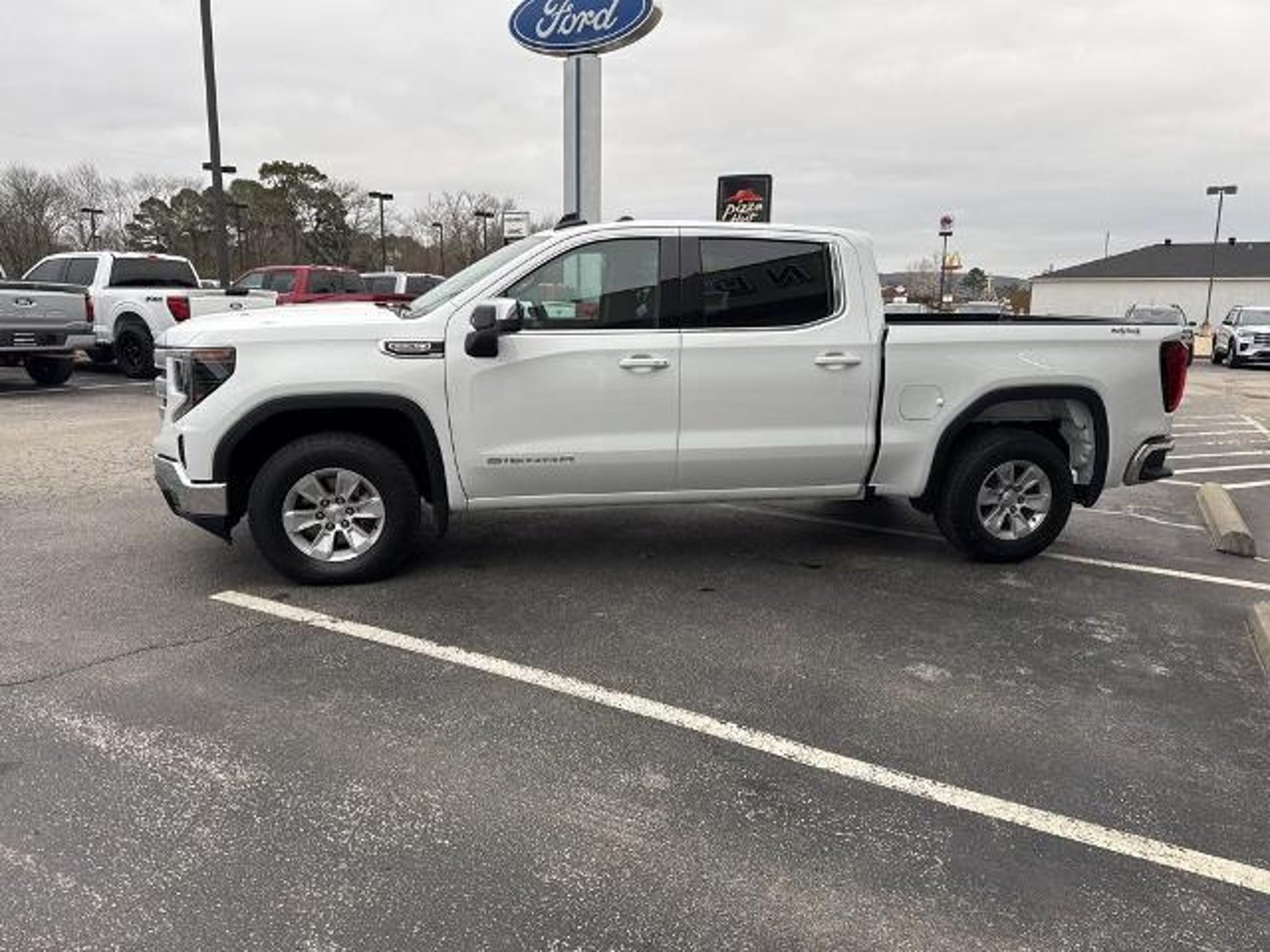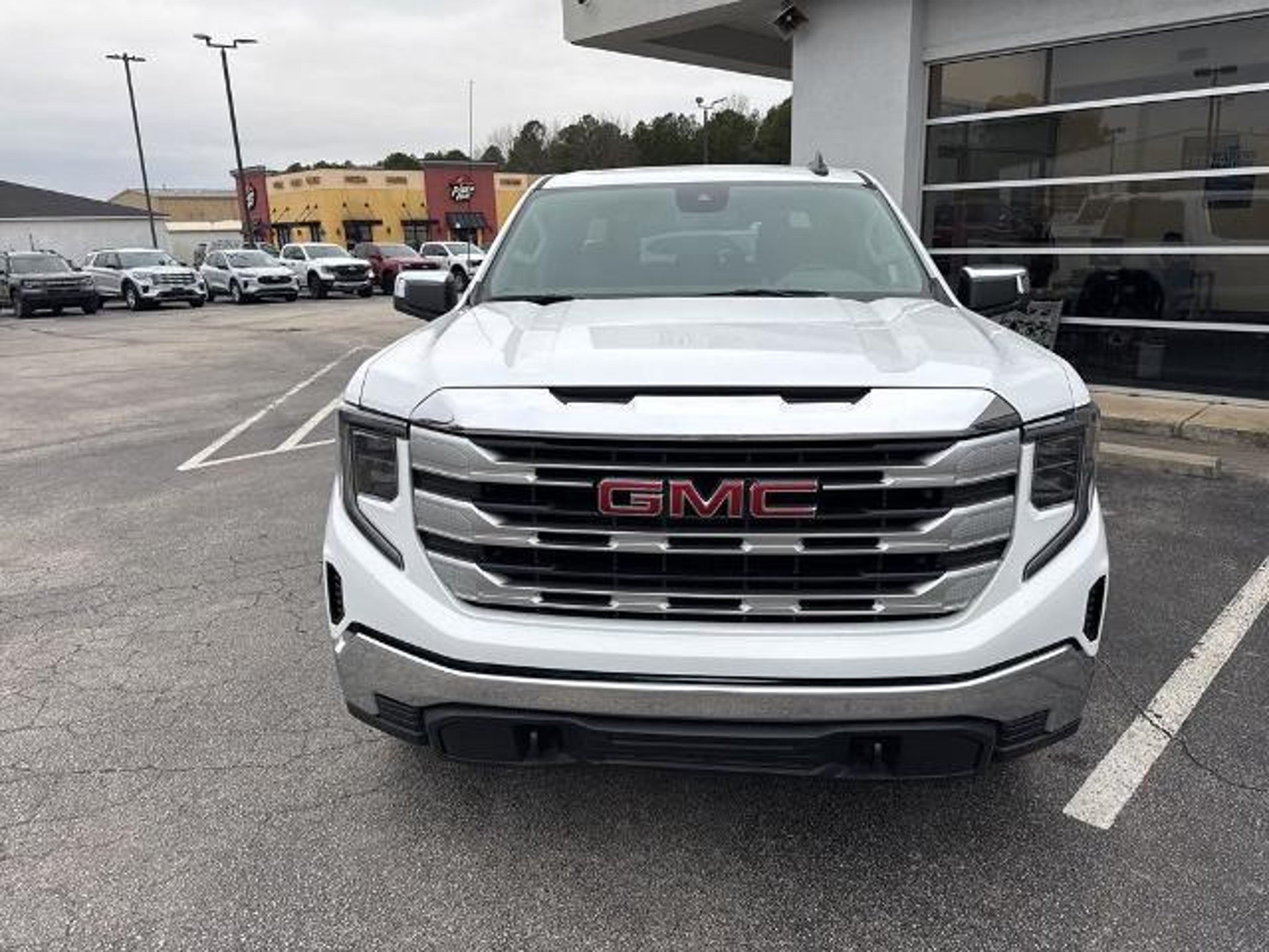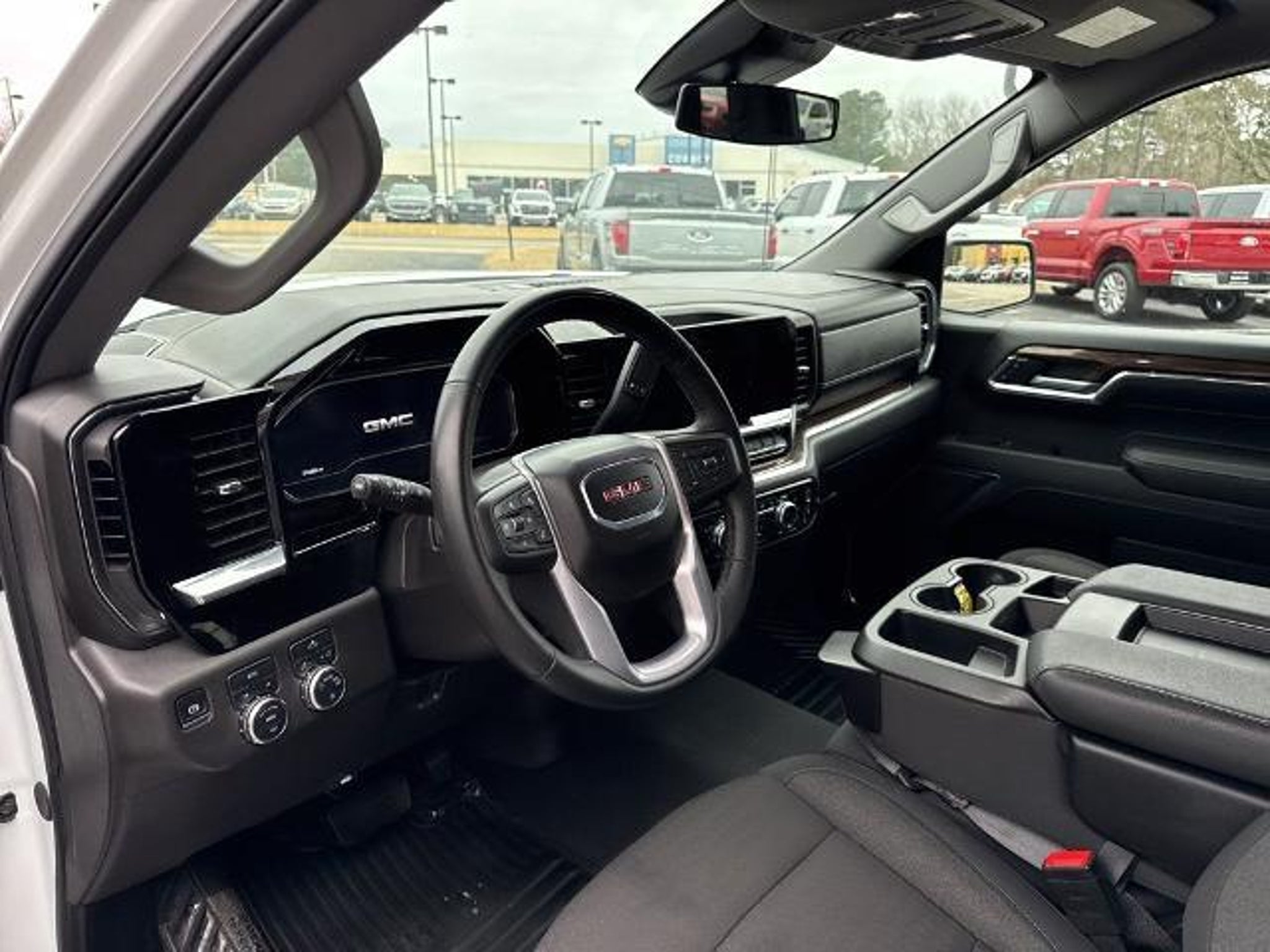 This 2024 GMC Sierra 1500 SLE in Summit White comes with the following features: EcoTec3 5.3L V8 10-Speed Automatic 4WD Preferred Equipment Group 3SA (120-Volt Bed Mounted Power Outlet, 120-Volt Interior Power Outlet, 2 Charge/Data USB Ports, 2 Type-C Charge-Only Rear USB Ports, Chrome Header w/Medium Silver Grille Insert Bars, Color-Keyed Carpeting Floor Covering, Deep-Tinted Glass, Front Frame-Mounted Black Recovery Hooks, Front Rubberized-Vinyl Floor Mats, GMC Connected Access Capable, HD Rear Vision Camera, Keyless Open & Start, Manual Tilt-Wheel & Telescoping Steering Column, OnStar & GMC Connected Services Capable, Power Door Locks, Power Front Windows w/Driver Express Up/Down, Power Front Windows w/Passenger Express Down, Power Rear Windows w/Express Down, Push Button Start, Rear Rubberized-Vinyl Floor Mats, SiriusXM w/360L, Steering Wheel Audio Controls, and Wi-Fi Hotspot Capable), Remote Start Package (Electric Rear-Window Defogger, Remote Vehicle Starter System, and Theft Deterrent System (Unauthorized Entry)), SLE Convenience Package (Dual-Zone Automatic Climate Control and LED Cargo Area Lighting), SLE Value Package (Auto-Locking Rear Differential), Standard Suspension Package, Trailering Package (Hitch Guidance), 10-Speed Automatic, 4WD, Black Cloth, 10-Way Power Driver Seat Adjuster w/Lumbar, 170 Amp Alternator, 220 Amp Alternator, 4-Way Manual Passenger Seat Adjuster, 4-Wheel Disc Brakes, 6 Speakers, 6-Speaker Audio System Feature, ABS brakes, Air Conditioning, Alloy wheels, AM/FM radio: SiriusXM with 360L, Apple CarPlay/Android Auto, Auto High-beam Headlights, Automatic Emergency Braking, Automatic temperature control, Auxiliary External Transmission Oil Cooler, Brake assist, Buckle to Drive, Bumpers: chrome, Cloth Seat Trim, Compass, Delay-off headlights, Driver door bin, Driver vanity mirror, Dual front impact airbags, Dual front side impact airbags, Electronic Stability Control, External Engine Oil Cooling, Following Distance Indicator, Forward Collision Alert, Front 40/20/40 Split-Bench Seat, Front anti-roll bar, Front Center Armrest w/Storage, Front dual zone A/C, Front Pedestrian Braking, Front reading lights, Front wheel independent suspension, Fully automatic headlights, Heated door mirrors, Heated Driver & Front Outboard Passenger Seating, Heated front seats, Heated steering wheel, Illuminated entry, IntelliBeam Automatic High Beam On/Off, Lane Keep Assist w/Lane Departure Warning, Low tire pressure warning, Navigation System, Occupant sensing airbag, Outside temperature display