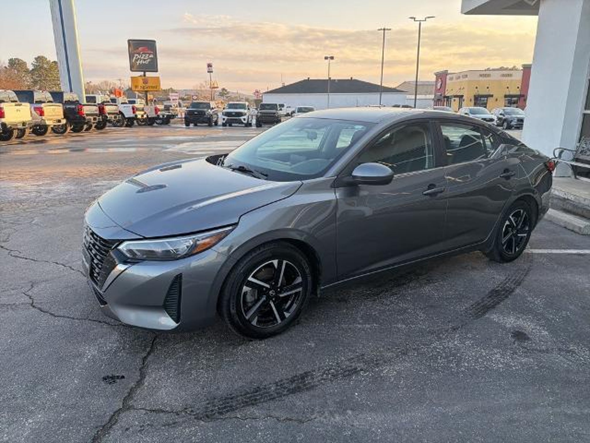 This 2024 Nissan Sentra SV in Gun Metallic comes with the following features: 2.0L I4 DOHC CVT with Xtronic FWD CVT with Xtronic, Charcoal Cloth, 16 Alloy Wheels, 4-Wheel Disc Brakes, 6 Speakers, ABS brakes, Air Conditioning, Alloy wheels, AM/FM radio: SiriusXM, Auto High-beam Headlights, Blind Spot Warning, Brake assist, Bumpers: body-color, Carpeted Floor Mats w/Trunk Mat, Delay-off headlights, Driver door bin, Driver vanity mirror, Dual front impact airbags, Dual front side impact airbags, Electronic Stability Control, Four wheel independent suspension, Front anti-roll bar, Front Bucket Seats, Front Center Armrest, Front reading lights, Fully automatic headlights, Illuminated entry, Knee airbag, Leather steering wheel, Low tire pressure warning, NissanConnect featuring Apple CarPlay and Android Auto, Occupant sensing airbag, Outside temperature display, Overhead airbag, Overhead console, Panic alarm, Passenger door bin, Passenger vanity mirror, Power door mirrors, Power steering, Power windows, Radio data system, Radio: AM/FM w/RDS/MP3/Aux-In, Rear anti-roll bar, Rear Parking Sensors, Rear side impact airbag, Rear window defroster, Remote keyless entry, Security system, Speed control, Speed-sensing steering, Split folding rear seat, Steering wheel mounted audio controls, Tachometer, Technical Spec Change 2, Telescoping steering wheel, Tilt steering wheel, Traction control, Trip computer, Upgraded Cloth Seat Trim, and Variably intermittent wipers. CVT with Xtronic, Charcoal Cloth. CARFAX One-Owner. 30/40 City/Highway MPG Clean CARFAX.