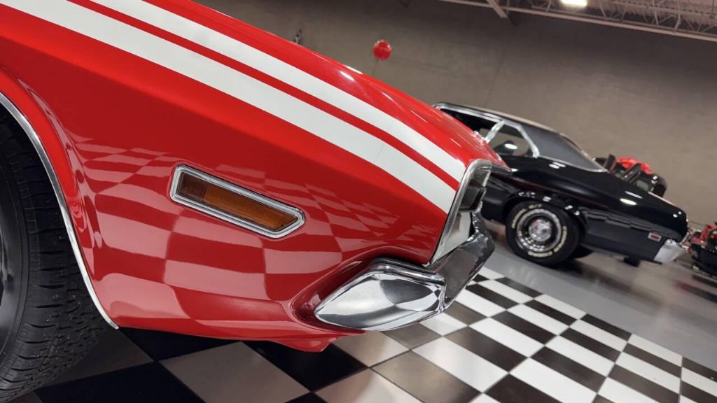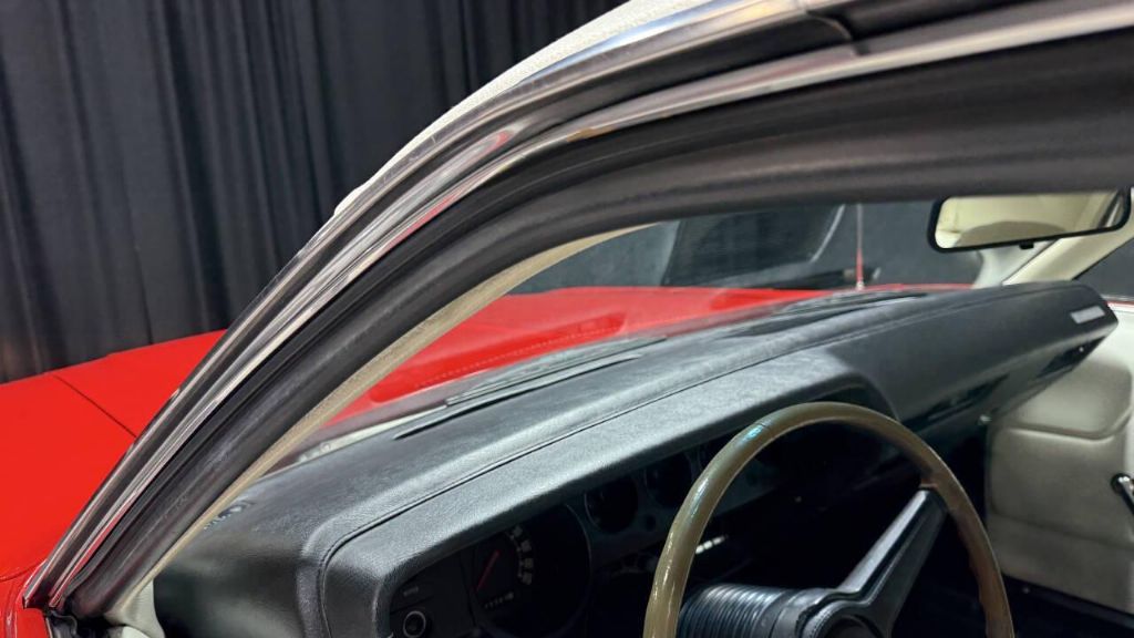 1971 Dodge Challenger Detailed engine compartment Mopar 383cid rebuilt V8 engine Upgraded aluminum intake 4bbl tuned carburetor Hoses are replaced New Booster/master cylinder Chrome Mopar valve covers Upgraded ignition system Automatic transmission Red with White R/T-style double accent stripes White vinyl top White bucket seat interior factory seat belts intact Factory center console/shifter Classic auto Air conditioning Woodgrain rimmed steering wheel Power steering and brakes Ralley 5-spoke wheels BFGoodrich Radial T/A tires Chrome bumpers Weatherstripping/Trim nice Suspension feels great Metal appears to be straight/original Factory door pinch welds New door sill plates Chrysler solid-state am radio Underneath is solid & trunk painted Runs/drives & stops great From the West Coast Check out my video!