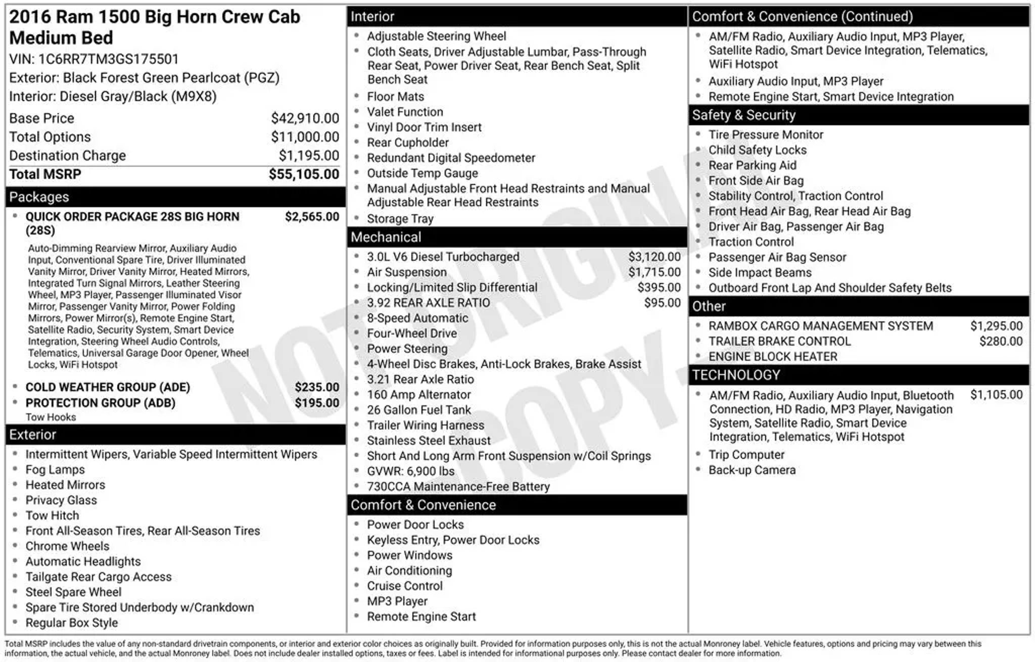 Discover the perfect balance of power and efficiency in this 2016 Ram 1500 Big Horn. With its robust EcoDiesel V6 engine and 4-wheel drive capabilities, this truck is ready to tackle any adventure, while delivering impressive fuel economy to keep you moving forward. - Leather-wrapped steering wheel - Remote start system - Power folding mirrors - Dual rear exhaust with bright tips - Uconnect 8.4 touchscreen display with navigation - Rear-view auto-dimming mirror with microphone - Electroluminescent instrument cluster - Overhead console with garage door opener - Exterior mirrors with supplemental signals - LED bed lighting This Big Horn edition comes equipped with an impressive array of premium features that elevate your driving experience. The RamBox Cargo Management System provides secure, lockable storage for all your gear, while the 4-Corner Air Suspension ensures a smooth, comfortable ride, no matter the terrain. Designed with your convenience in mind, this Ram 1500 offers a host of advanced technologies, including Uconnect with voice command, Bluetooth connectivity, and SiriusXM satellite radio. The available navigation system and rear-view camera make navigating city streets and country roads a breeze. Whether you're hauling heavy loads or embarking on a weekend adventure, this 2016 Ram 1500 Big Horn is the perfect companion. With its powerful EcoDiesel engine, 4-wheel drive capabilities, and premium amenities, this truck is ready to elevate your driving experience. We invite you to come experience the exceptional quality and capability of this 2016 Ram 1500 Big Horn. Our knowledgeable team is here to answer any questions you may have and help you find the perfect vehicle to meet your needs. Pierre of Hermiston has a huge selection of new and used vehicles to choose from. We specialize in Trucks and have an excellent selection, including Certified Pre-owned. We provide great service, great prices, and a great experience, as proven by our excellent customer ratings! These ratings are a testament to our commitment to providing the best service. We are non-pushy, genuine, and honest. Pierre Auto of Hermiston is a family owned and operated dealership since 1947 serving Hermiston, Umatilla, Irrigon Mcnary Charlestown Stanfield Echo Hinkle Pendleton Boardman Heppner La Grande Pilot Rock Lexington Meacham Ione Arlington Bickleton Paterson Touchet Athena Milton-Freewater Prescott Waitsburg The Dalles Goldendale Walla Walla Tri-Cities Pasco Kennewick Richland West Richland and Benton City. Our friendly staff is funny, approachable, and very knowledgeable. We are trained to serve you, and we will bend over backwards to help you find the financing and a vehicle that meets your needs.