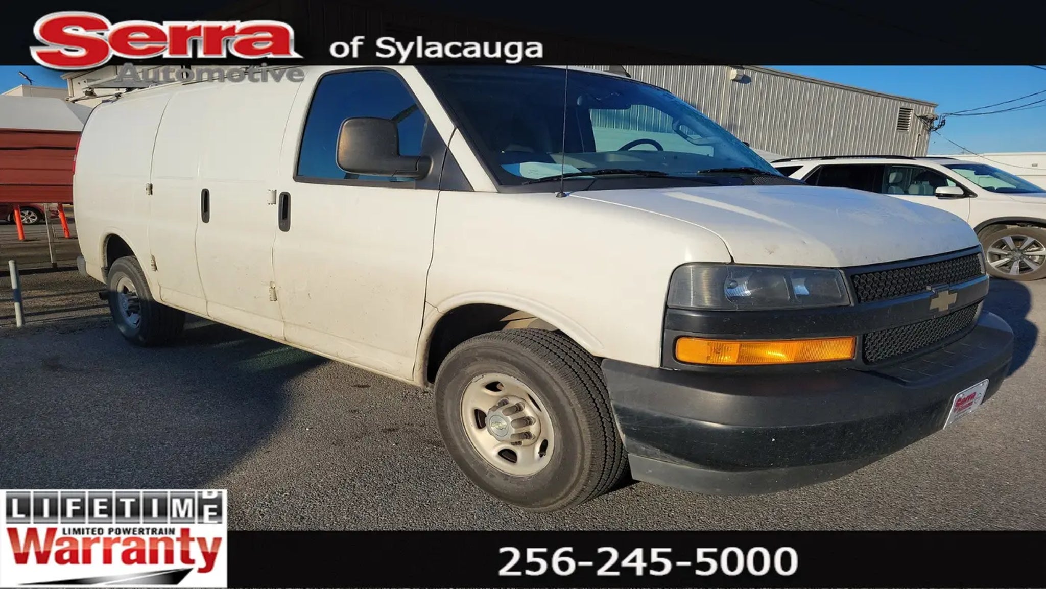 Tony Serra Ford in Sylacauga, AL - serving Chelsea, Alexander City and the Greater Birmingham Area! We can take care of all your automotive needs under one roof, from finding your next car to securing financing to keeping it maintained. Our commitment to your 100% satisfaction will help you experience the Tony Serra Ford Difference with features like our free warranty protection on every new Ford for unlimited time and miles, a 30-day low price protection guarantee, a 3-day Love It or Leave It exchange policy, and more. Tony Serra Ford 40905 Highway 280, Sylacauga, AL 35150 Sales: 256-245-5000 All new vehicles include a $1000 trade-in assistance dealer discount and a $1000 financing discount. Requirements to qualify for pricing: vehicle trade year model of 2018 or newer and less than 125,000 miles. Must use dealer provided lenders to qualify for financing assistance. Price does not include tax, tag, title, license, fees and dealer installed options. All factory rebates and incentives are applied to price; not all customers will qualify for all incentives. May require approved credit. Some restrictions may apply. Pricing and details are believed to be accurate, but we do not warrant or guarantee such accuracy. Image, prices, specifications and availability are subject to change without notice and may not apply to this specific vehicle. Specifications and availability are subject to change without notice and may not apply to this specific vehicle.Summit White 2021 Chevrolet Express 2500 Work Van Cargo RWD 8-Speed Automatic with Overdrive 4.3L V6 Recent Arrival!