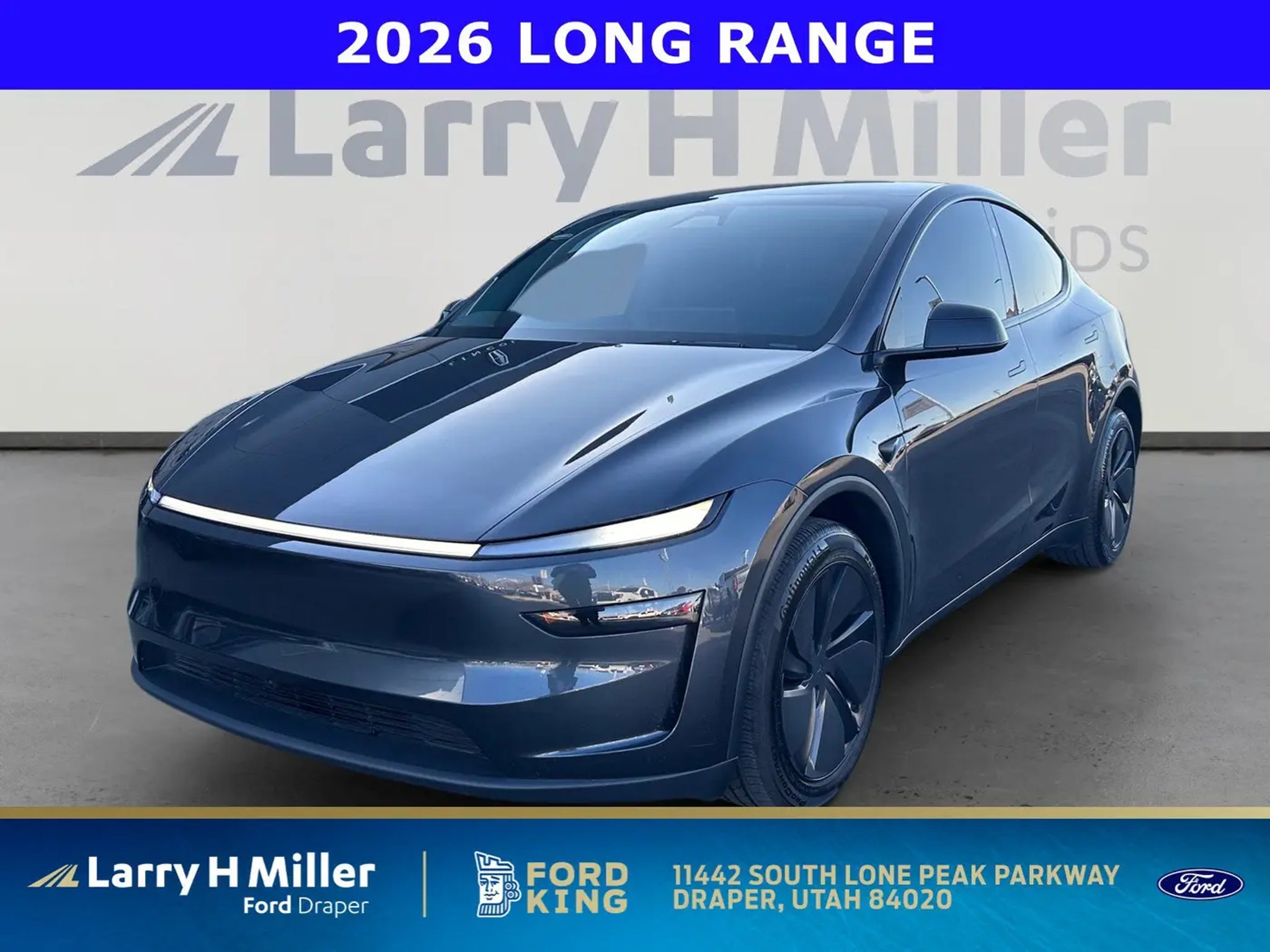 CARFAX One-Owner.Odometer is 1116 miles below market average!2026 Tesla Model Y Long RangeCall (801) 563-4011 today to schedule your test drive!ABS brakes, Active Cruise Control, Alloy wheels, Compass, Electronic Stability Control, Emergency communication system, Front dual zone A/C, Heated door mirrors, Heated front seats, Heated rear seats, Illuminated entry, Low tire pressure warning, Navigation System, Power Liftgate, Traction control, 17 Speakers, 4-Wheel Disc Brakes, 5 Seat Interior, Air Conditioning, Audio memory, Auto High-beam Headlights, Auto tilt-away steering wheel, Auto-dimming door mirrors, Auto-dimming Rear-View mirror, Automatic temperature control, Brake assist, Bumpers: body-color, Delay-off headlights, Driver door bin, Driver vanity mirror, Dual front impact airbags, Dual front side impact airbags, Exterior Parking Camera Rear, Four wheel independent suspension, Front anti-roll bar, Front Bucket Seats, Front Center Armrest, Front reading lights, Fully automatic headlights, Heated steering wheel, HVAC memory, Lane Departure Warning System, Memory seat, Occupant sensing airbag, Outside temperature display, Overhead airbag, Passenger door bin, Passenger vanity mirror, Power door mirrors, Power driver seat, Power passenger seat, Power steering, Power windows, Premium Audio System, Radio data system, Rain sensing wipers, Rear air conditioning, Rear audio controls, Rear reading lights, Rear seat center armrest, Rear window defroster, Security system, Speed control, Speed-sensing steering, Split folding rear seat, Steering wheel memory, Steering wheel mounted A/C controls, Steering wheel mounted audio controls, Telescoping steering wheel, Tilt steering wheel, Trip computer, Variably intermittent wipers, Vegan Leather Seat Trim, Ventilated front seats, Ventilated rear seats, and Wheels: 19 Crossflow. ABS brakes, Active Cruise Control, Alloy wheels, Compass, Electronic Stability Control, Emergency communication system, Front dual zone A/C, Heated door mirrors, Heated front seats, Heated rear seats, Illuminated entry, Low tire pressure warning, Navigation System, Power Liftgate, Traction control.