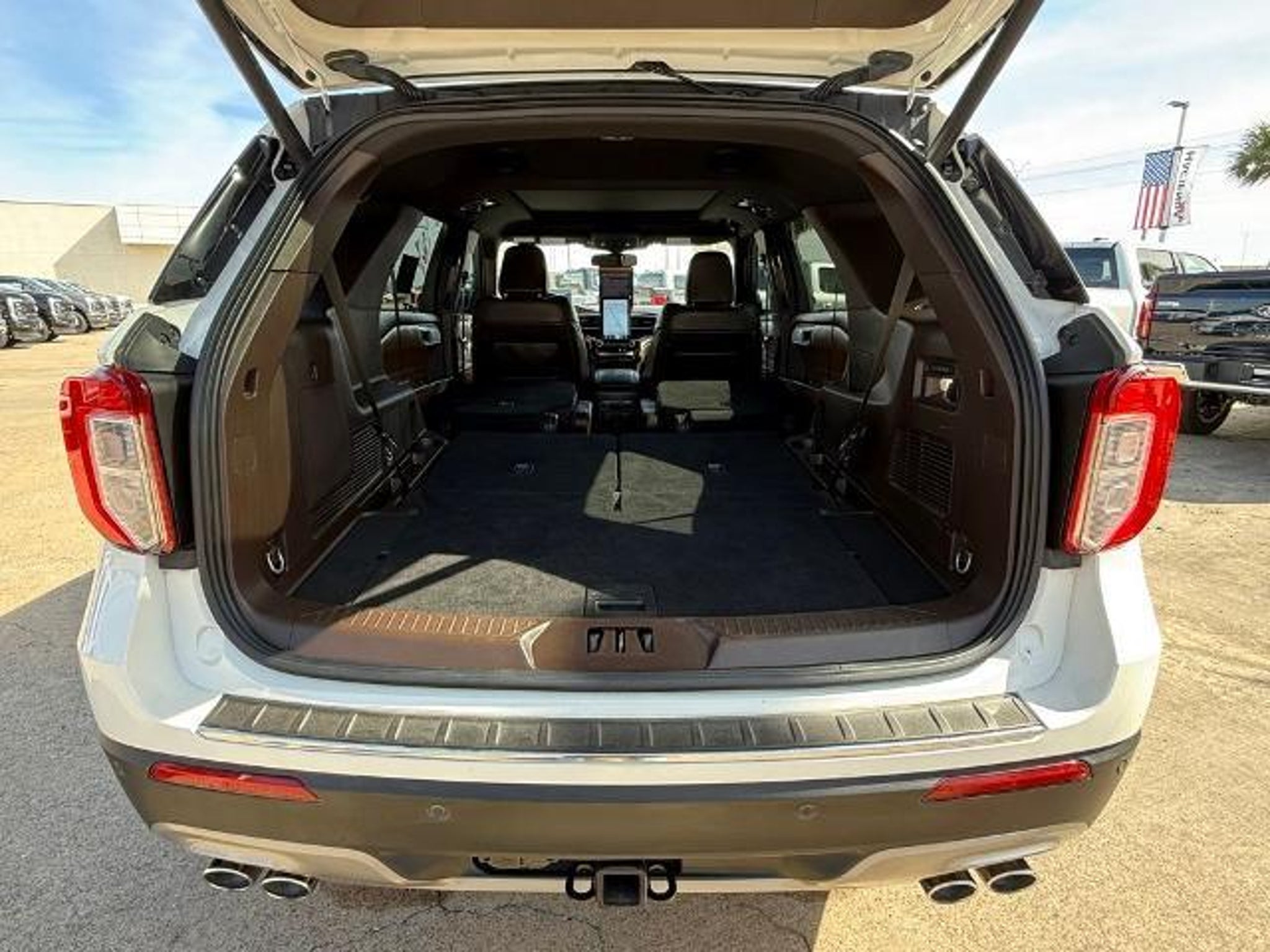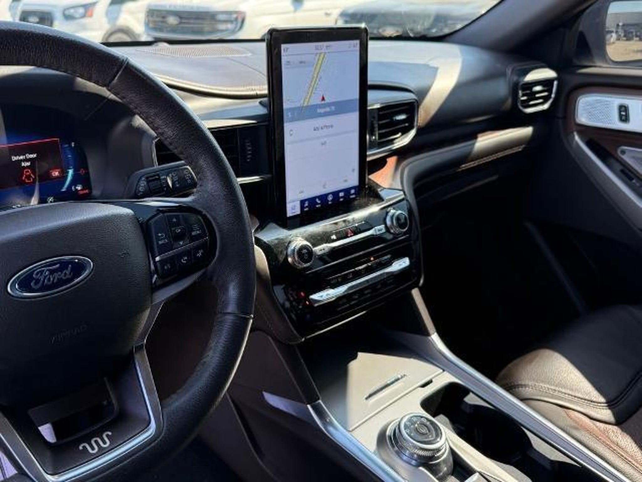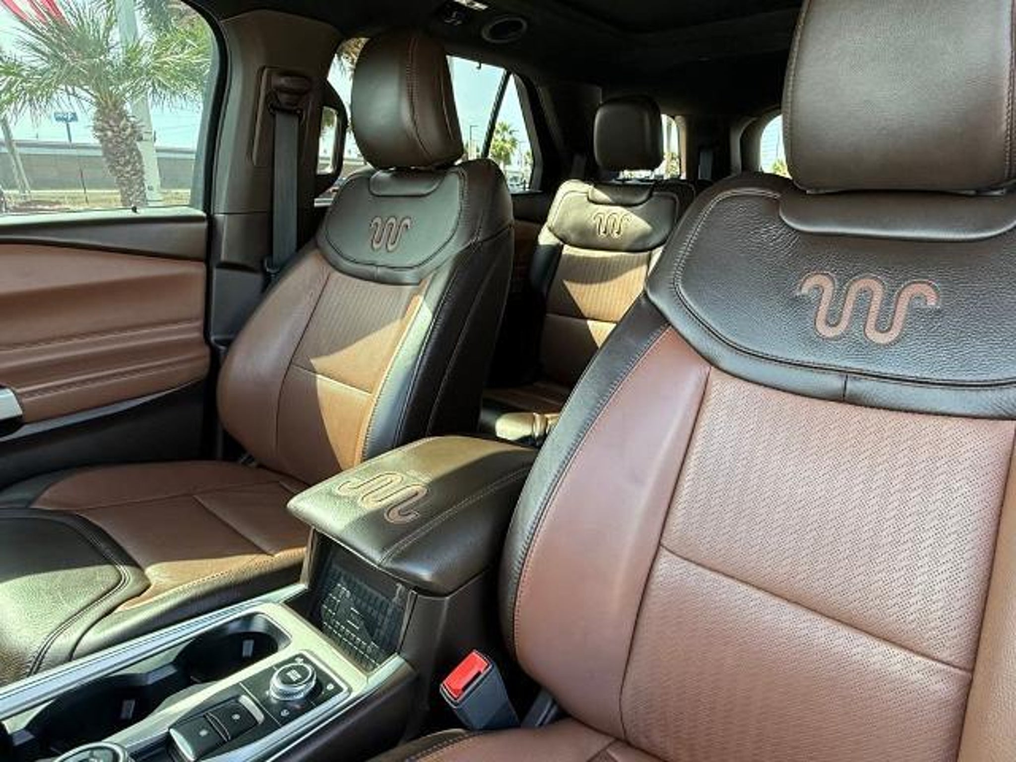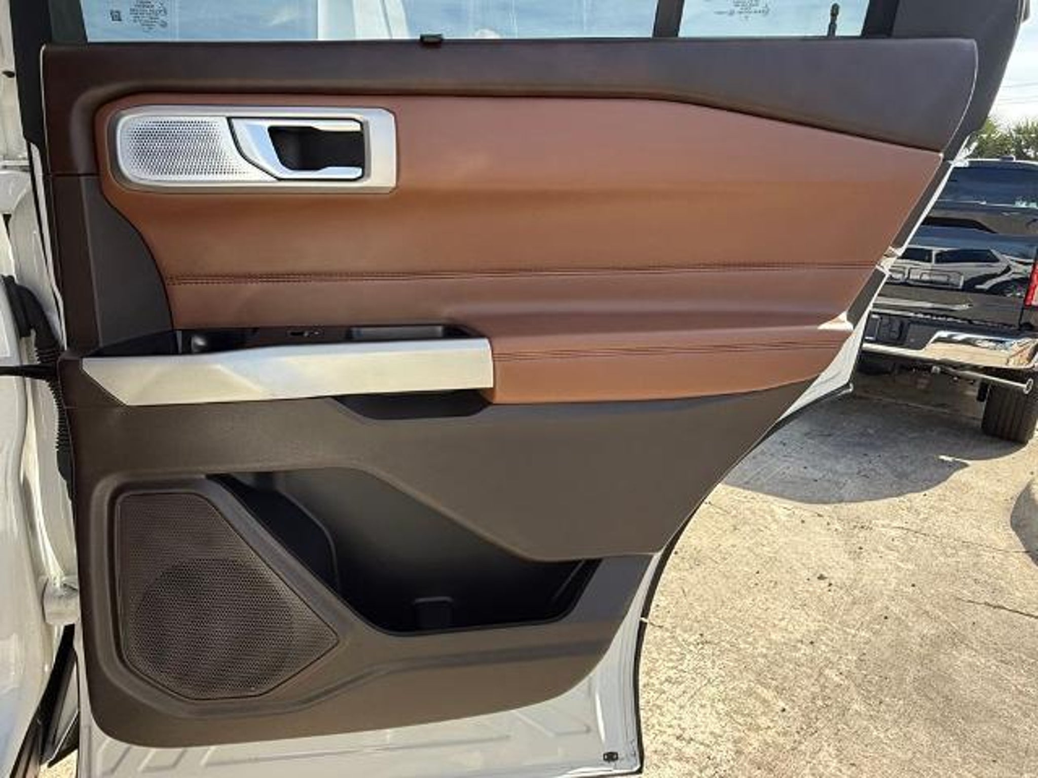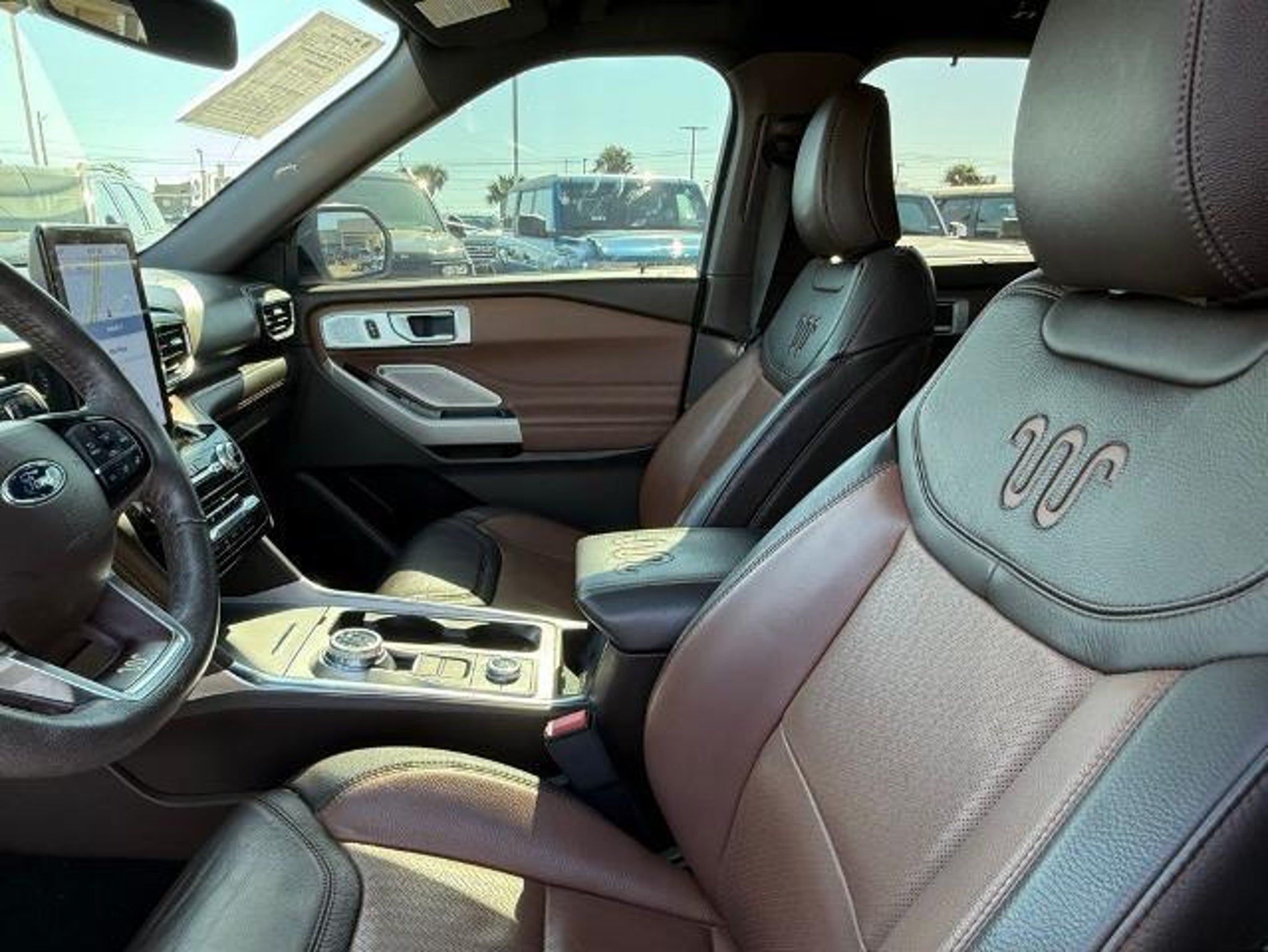 Star White Metallic Tri-Coat 2024 Ford Explorer King Ranch 4WD 10-Speed Automatic 3.0L EcoBoost V6 4WD. This vehicle comes equipped with the following features and options: Class IV Trailer Tow Package, Equipment Group 701A, Technology Package (10.1 LCD Capacitive Portrait Touchscreen and 2 Additional Speakers), 4WD, 12 Speakers, 3.31 Non-Limited-Slip Rear Axle Ratio, 360-Degree Camera Credit, 3rd row seats: bench, 4-Wheel Disc Brakes, 4G LTE Wi-Fi Hotspot Credit, ABS brakes, Air Conditioning, Alloy wheels, AM/FM radio: SiriusXM, Auto High-beam Headlights, Auto-dimming door mirrors, Auto-dimming Rear-View mirror, Automatic temperature control, Brake assist, Bumpers: body-color, Cargo Area Management System, Compass, Delay-off headlights, Driver door bin, Driver vanity mirror, Dual front impact airbags, Dual front side impact airbags, Electronic Stability Control, Emergency communication system: SYNC 3 911 Assist, Exterior Parking Camera Rear, FordPass Connect, Four wheel independent suspension, Front anti-roll bar, Front Bucket Seats, Front Center Armrest, Front dual zone A/C, Front fog lights, Front reading lights, Fully automatic headlights, Garage door transmitter, Genuine wood dashboard insert, Heated door mirrors, Heated front seats, Heated rear seats, Heated steering wheel, Illuminated entry, Knee airbag, Leather steering wheel, Low tire pressure warning, Memory seat, Mesa Del Rio Lthr Htd/Vent Sport Capt's Chairs, Navigation System, Occupant sensing airbag, Outside temperature display, Overhead airbag, Overhead console, Panic alarm, Passenger door bin, Passenger vanity mirror, Power door mirrors, Power driver seat, Power Liftgate, Power passenger seat, Power steering, Power windows, Radio data system, Radio: B&O Sound System by Bang & Olufsen, Rain sensing wipers, Rear air conditioning, Rear anti-roll bar, Rear reading lights, Rear window defroster, Rear window wiper, Remote keyless entry, Reverse Brake Assist Credit, Security system, Speed control, Speed-sensing steering, Speed-Sensitive Wipers, Split folding rear seat, Spoiler, Steering wheel memory, Steering wheel mounted audio controls, SYNC 3 Communications & Entertainment System, SYNC 3/Apple CarPlay/Android Auto, Tachometer, Telescoping steering wheel, Tilt steering wheel, Traction control, Trip computer, Turn signal indicator mirrors, Twin Panel Moonroof, Variably intermittent wipers, Ventilated front seats, Voice-Activated Touchscreen Navigation System, and Wheels: 20 10-Spoke Aluminum w/KR Center Cap.